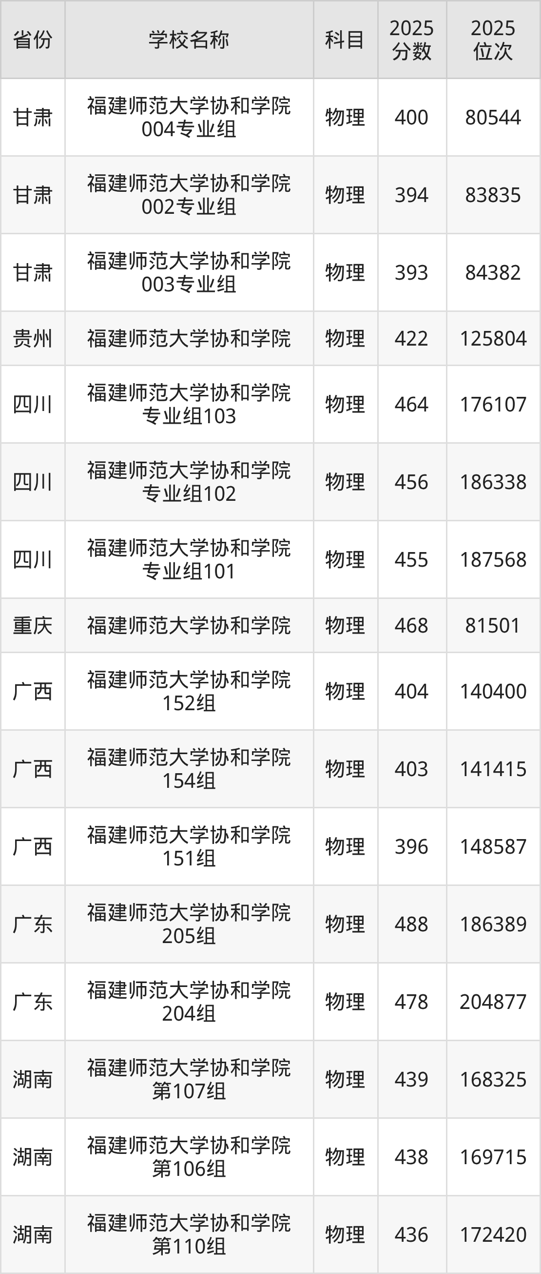 福建师范大学协和学院2025年有2个专业组面向福建省内首选了物理科目的考生招生: