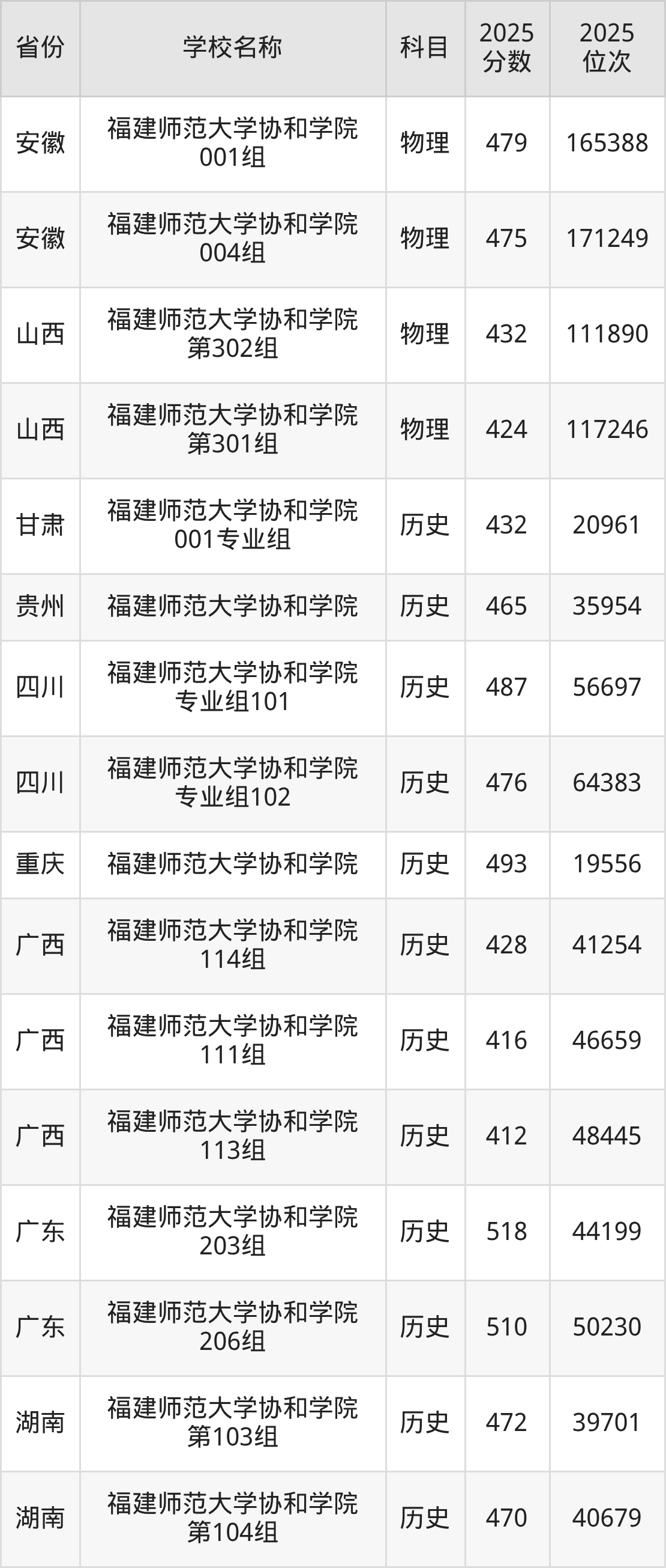 福建师范大学协和学院2025年有1个专业组面向福建省内首选了历史科目的考生招生: