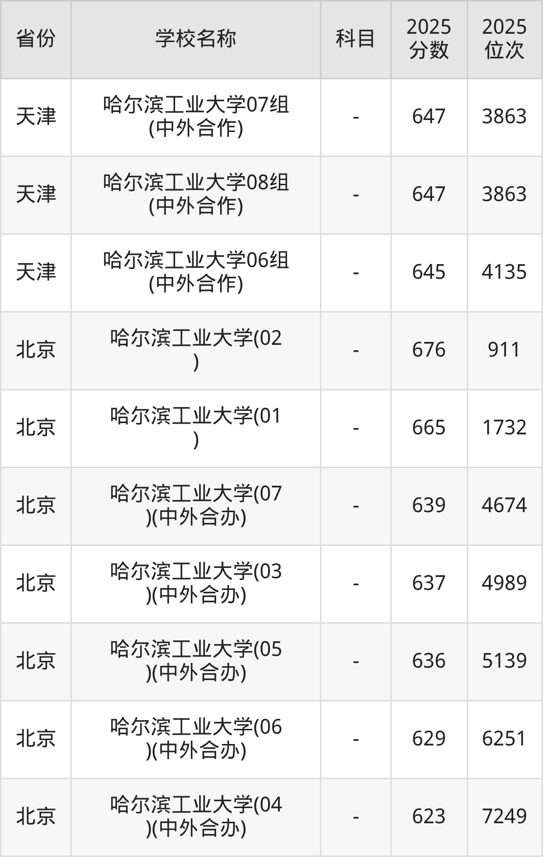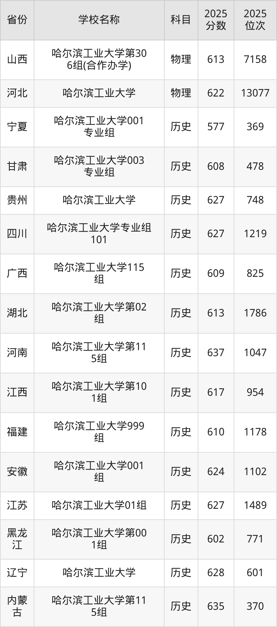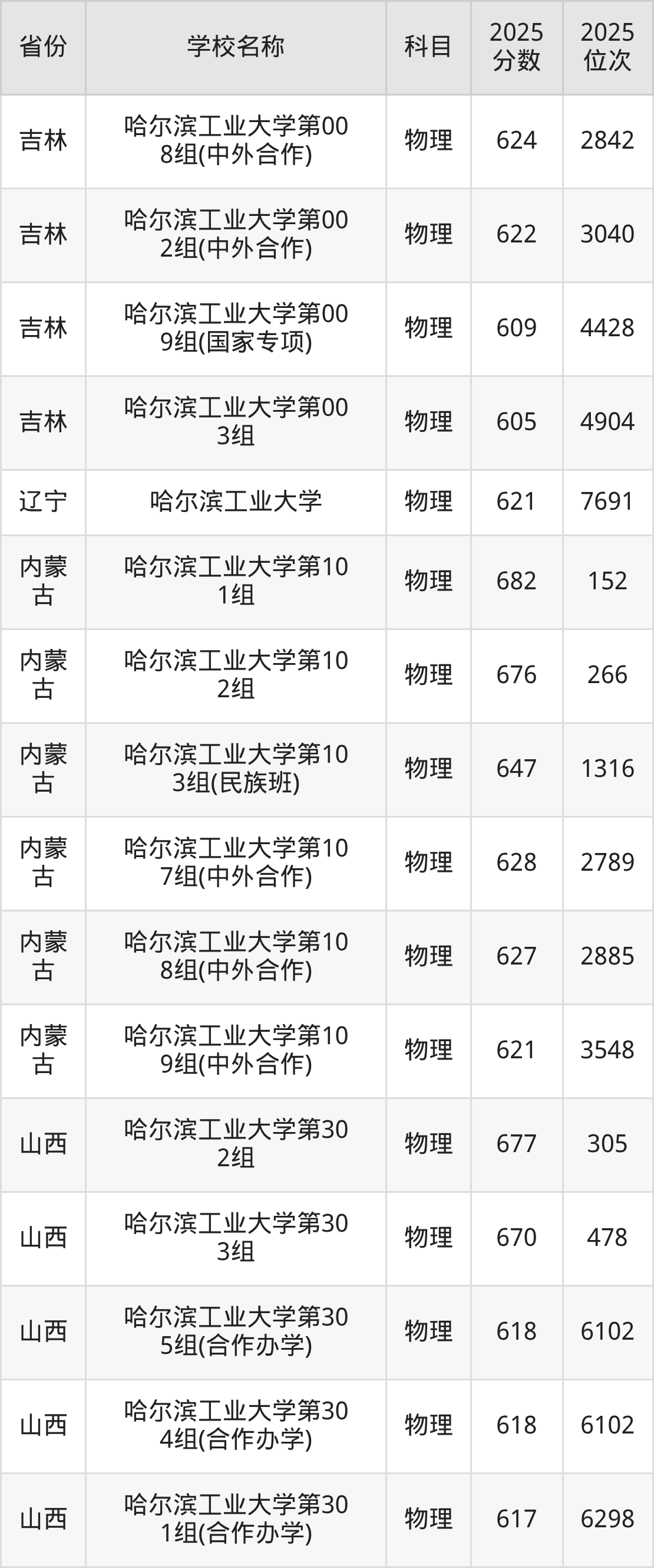 一、2025哈尔滨工业大学录取分数线