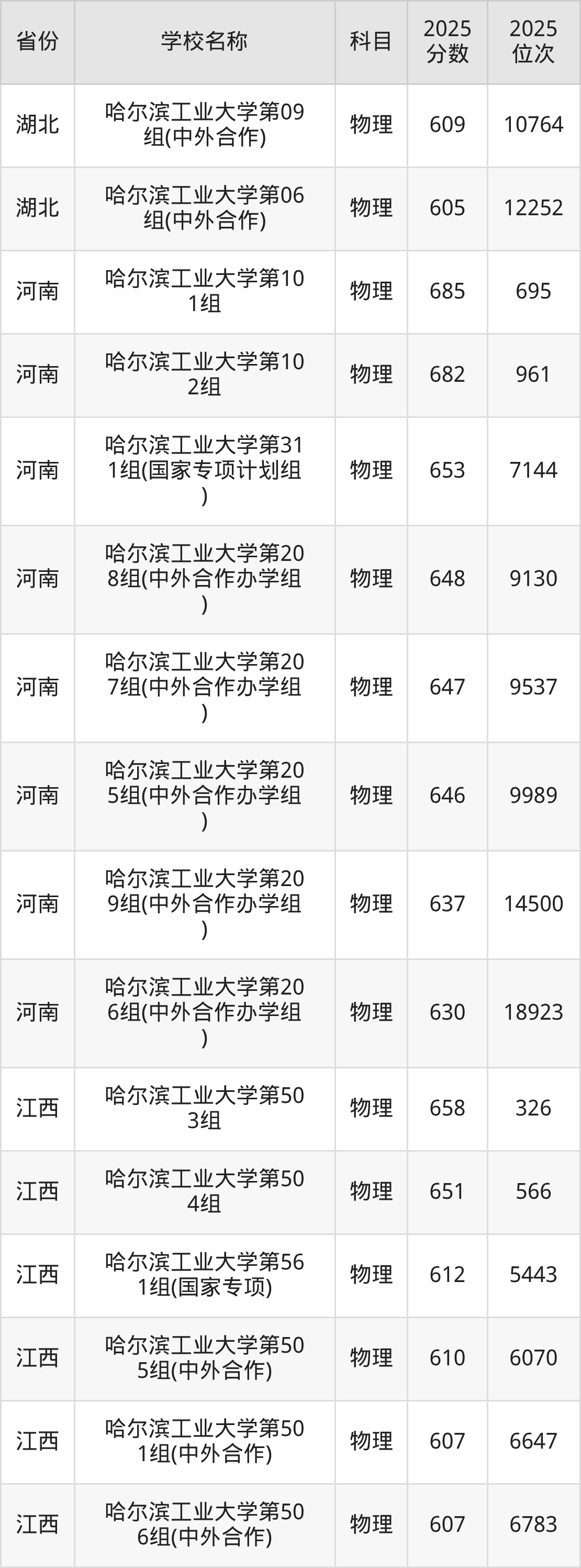 可见,哈尔滨工业大学的不同专业组,在“招生专业、录取分数线”等方面有较大区别。物理类专业组之间的分数线差距高达83分。