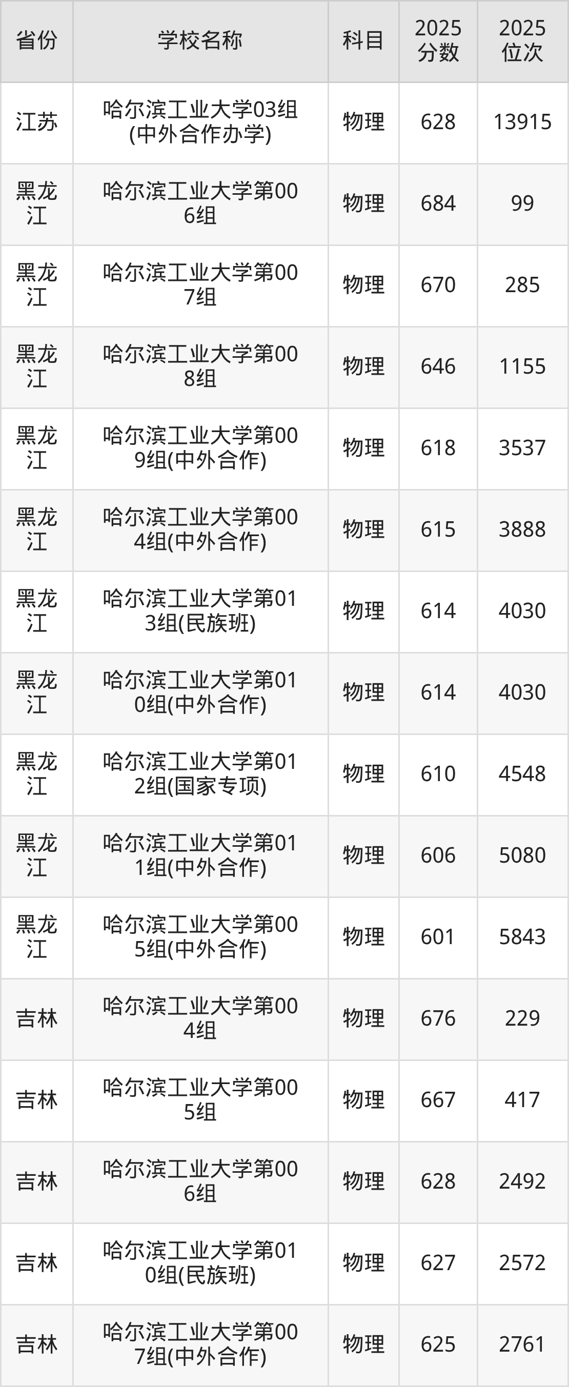 哈尔滨工业大学2025年有11个专业组面向黑龙江省内首选了物理科目的考生招生: