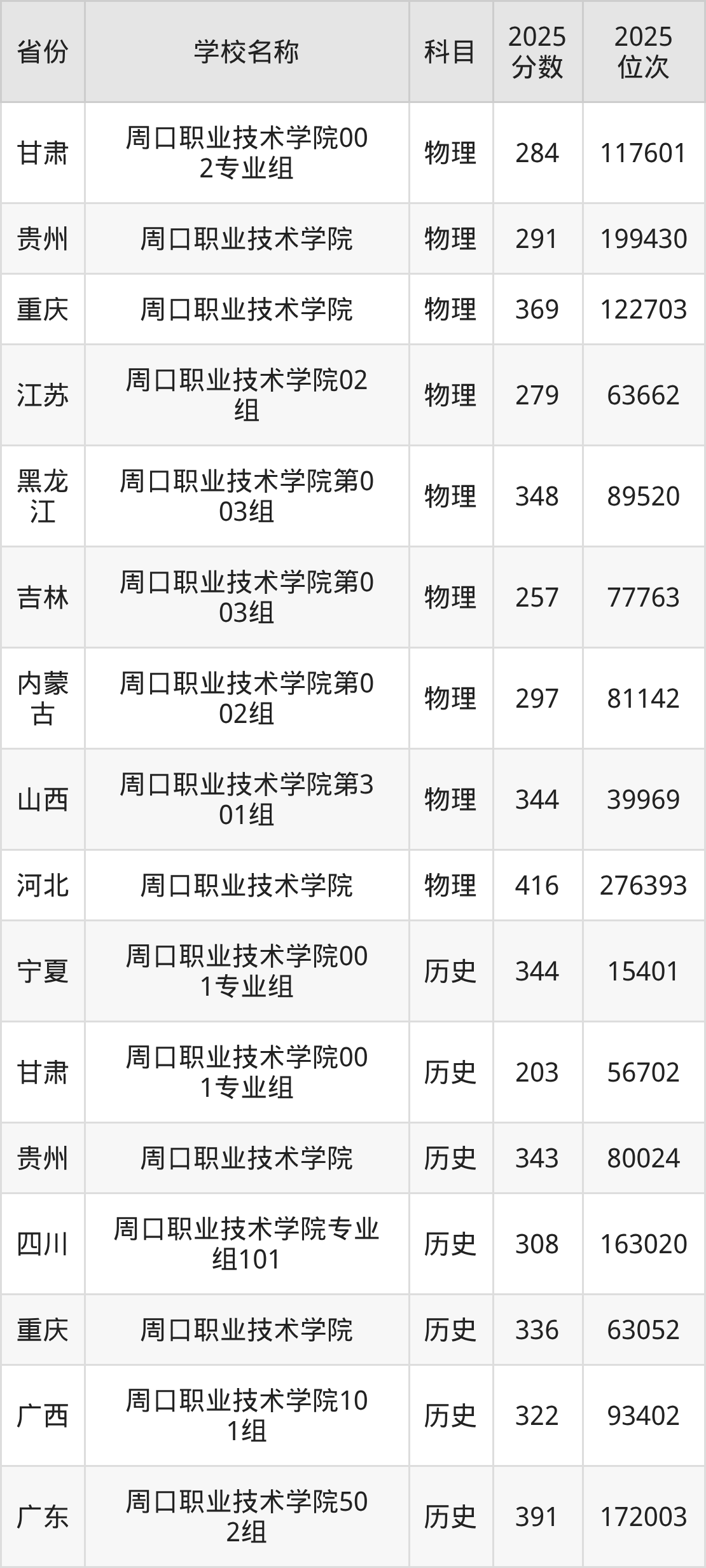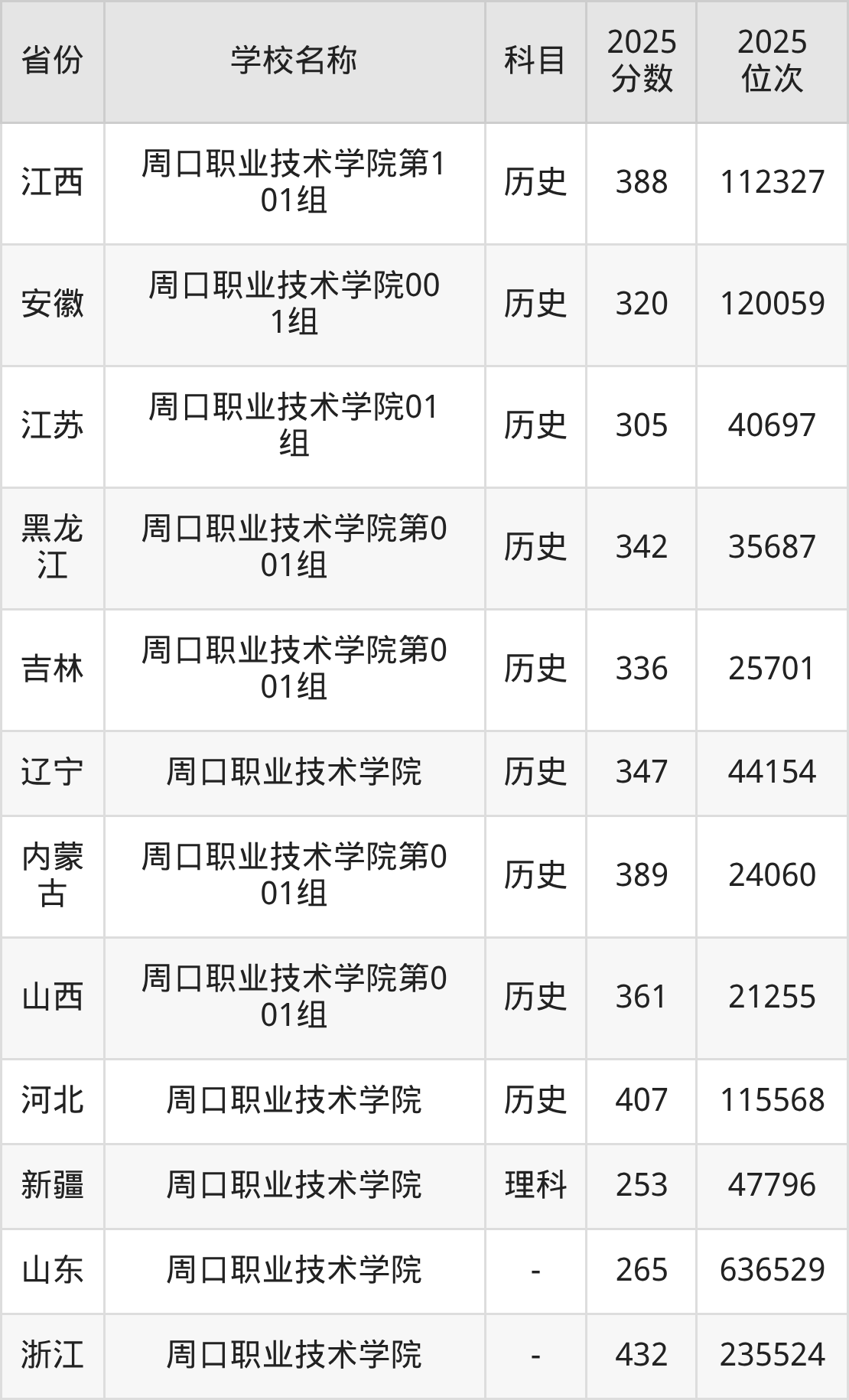 二、周口职业技术学院各专业录取分数线