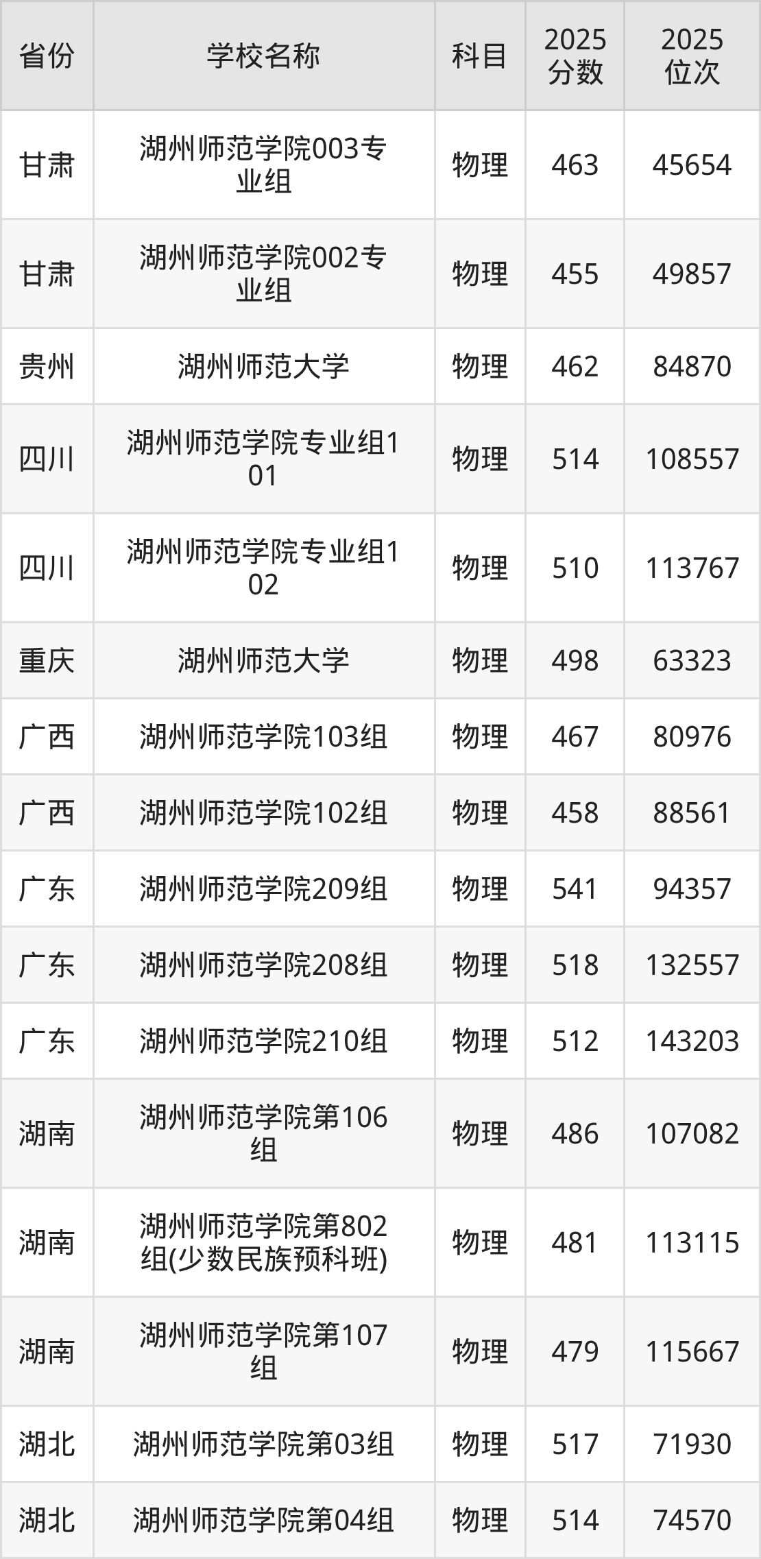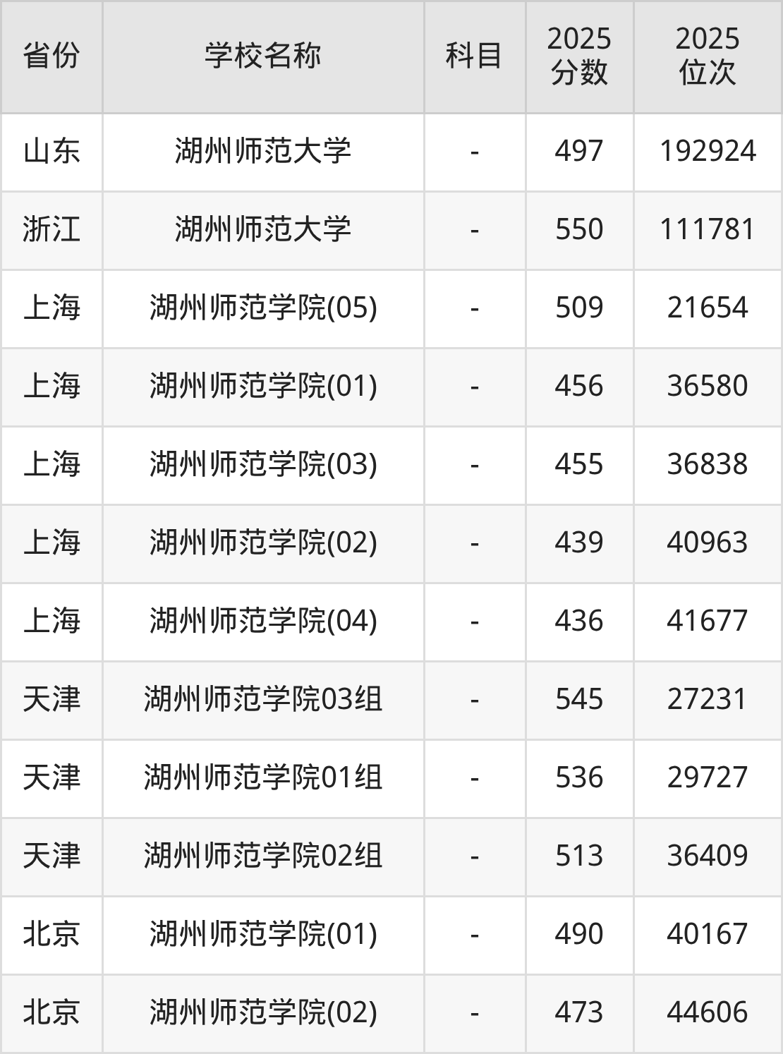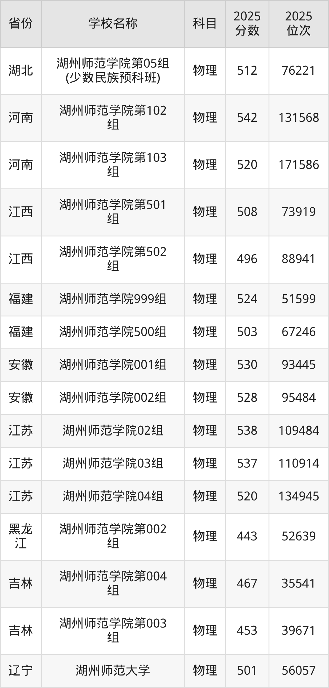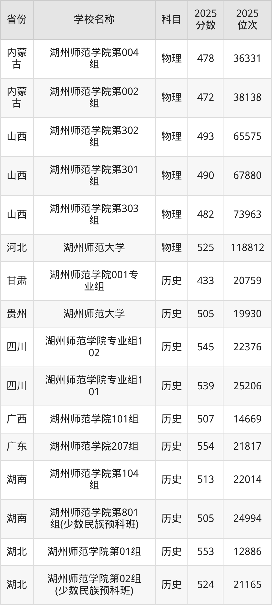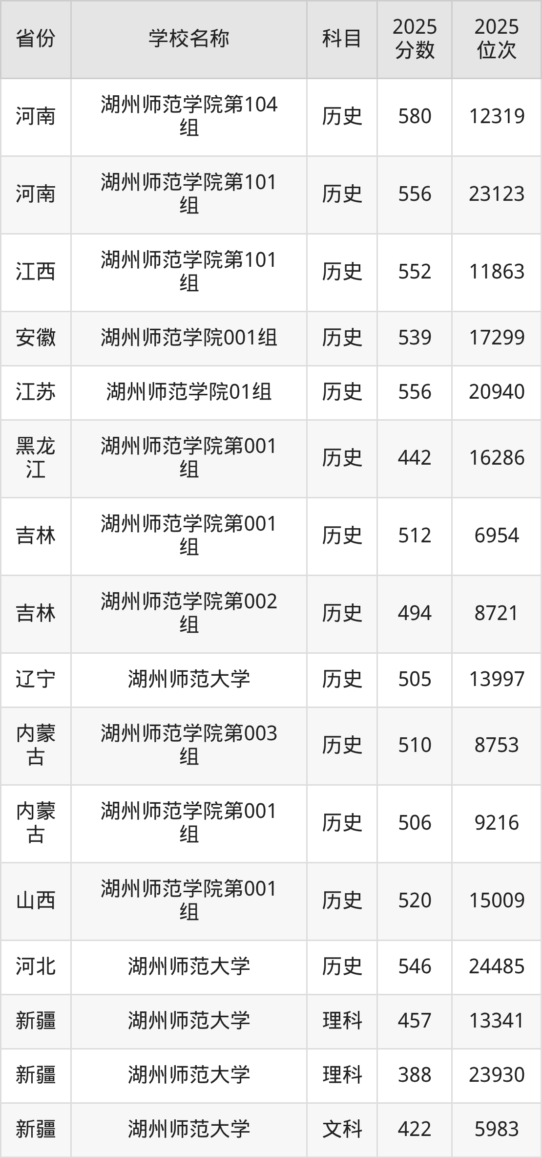 二、湖州师范大学各专业录取分数线