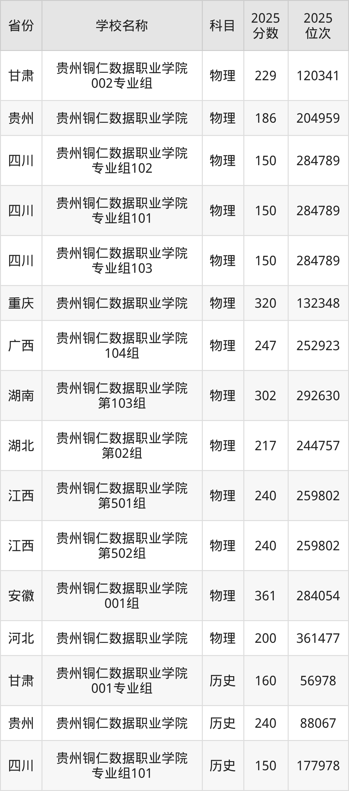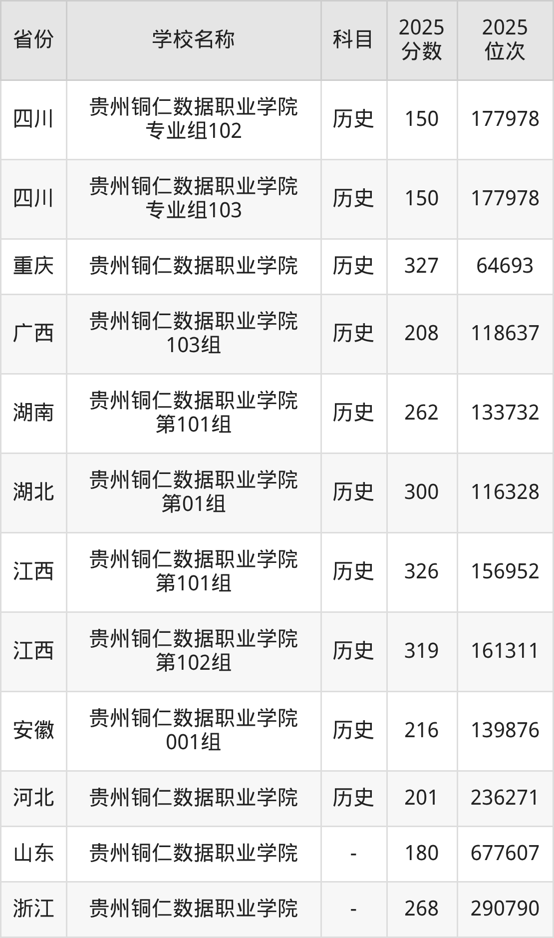 贵州铜仁数据职业学院2025年面向贵州省内首选了历史科目的考生招生: