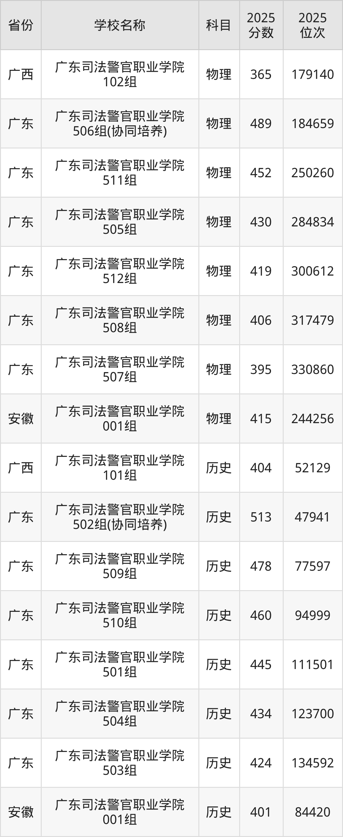 广东司法警官职业学院2025年有6个专业组面向广东省内首选了历史科目的考生招生: