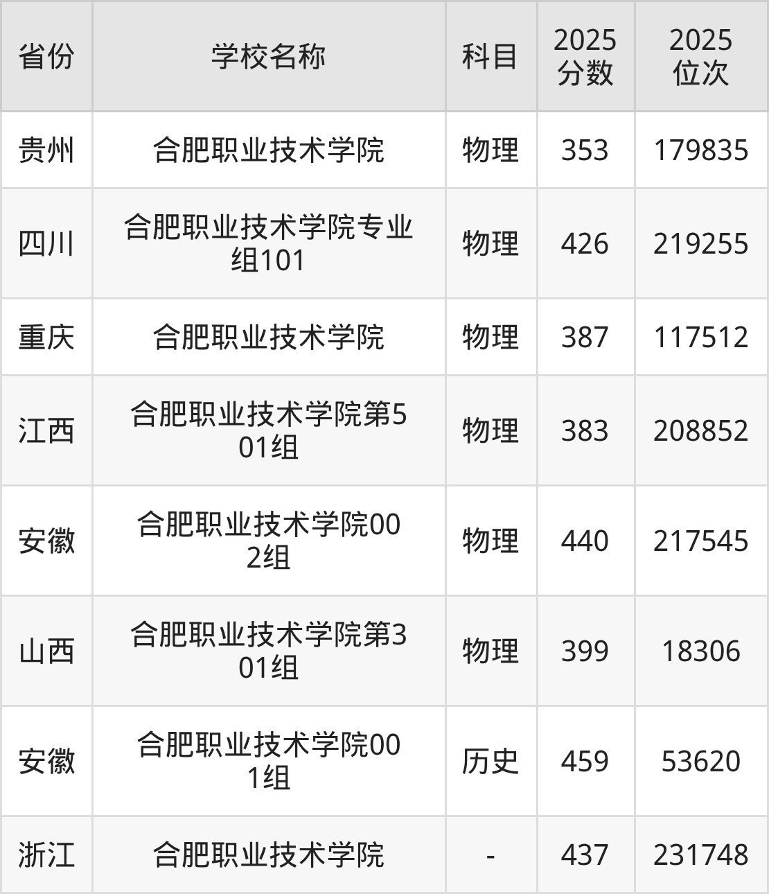 一、2025合肥职业技术学院录取分数线