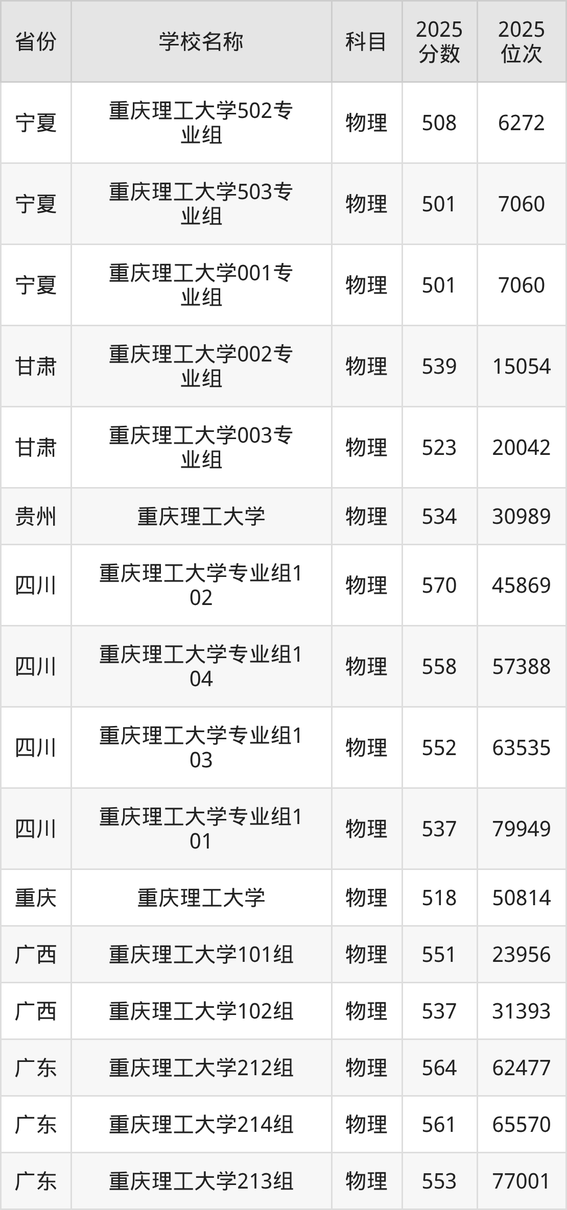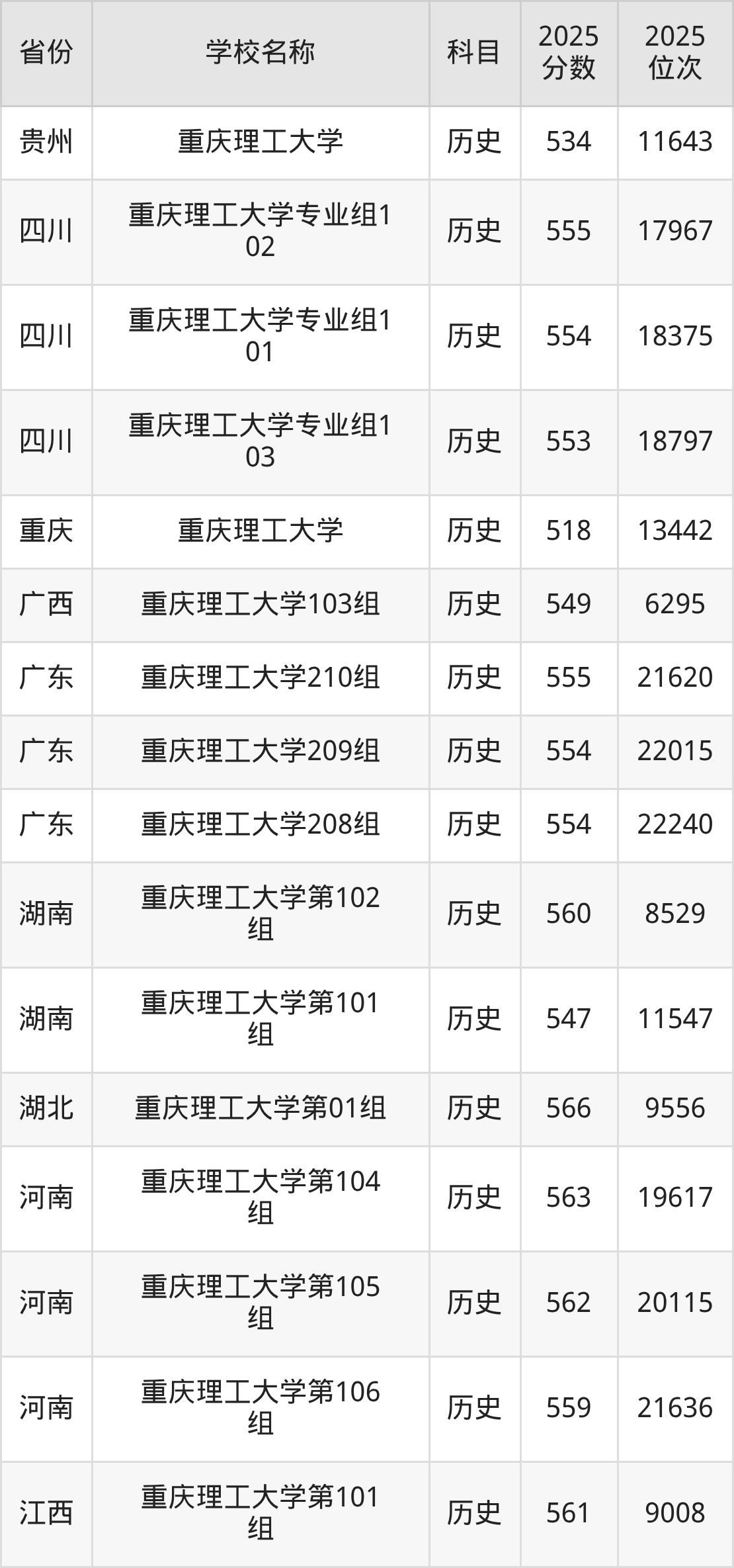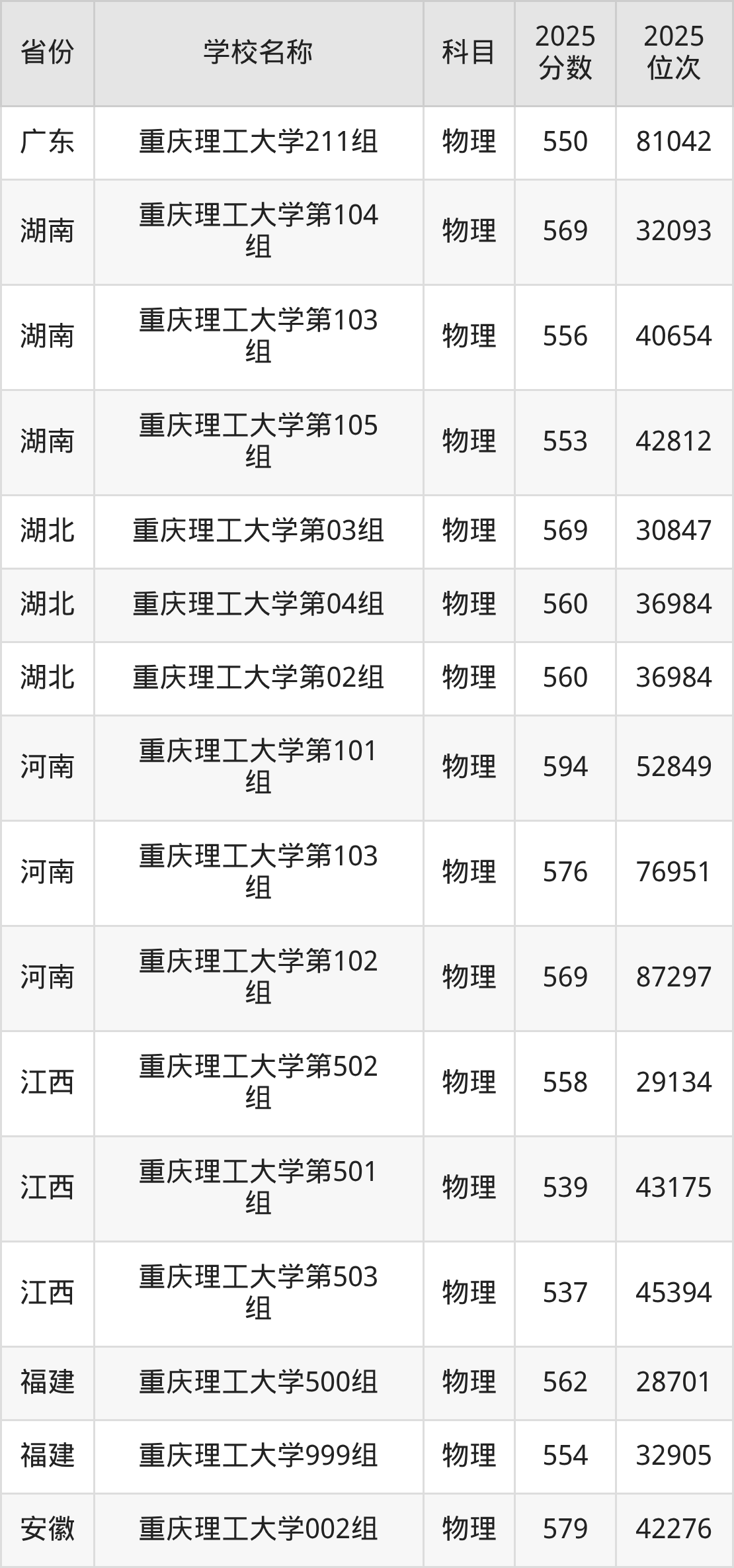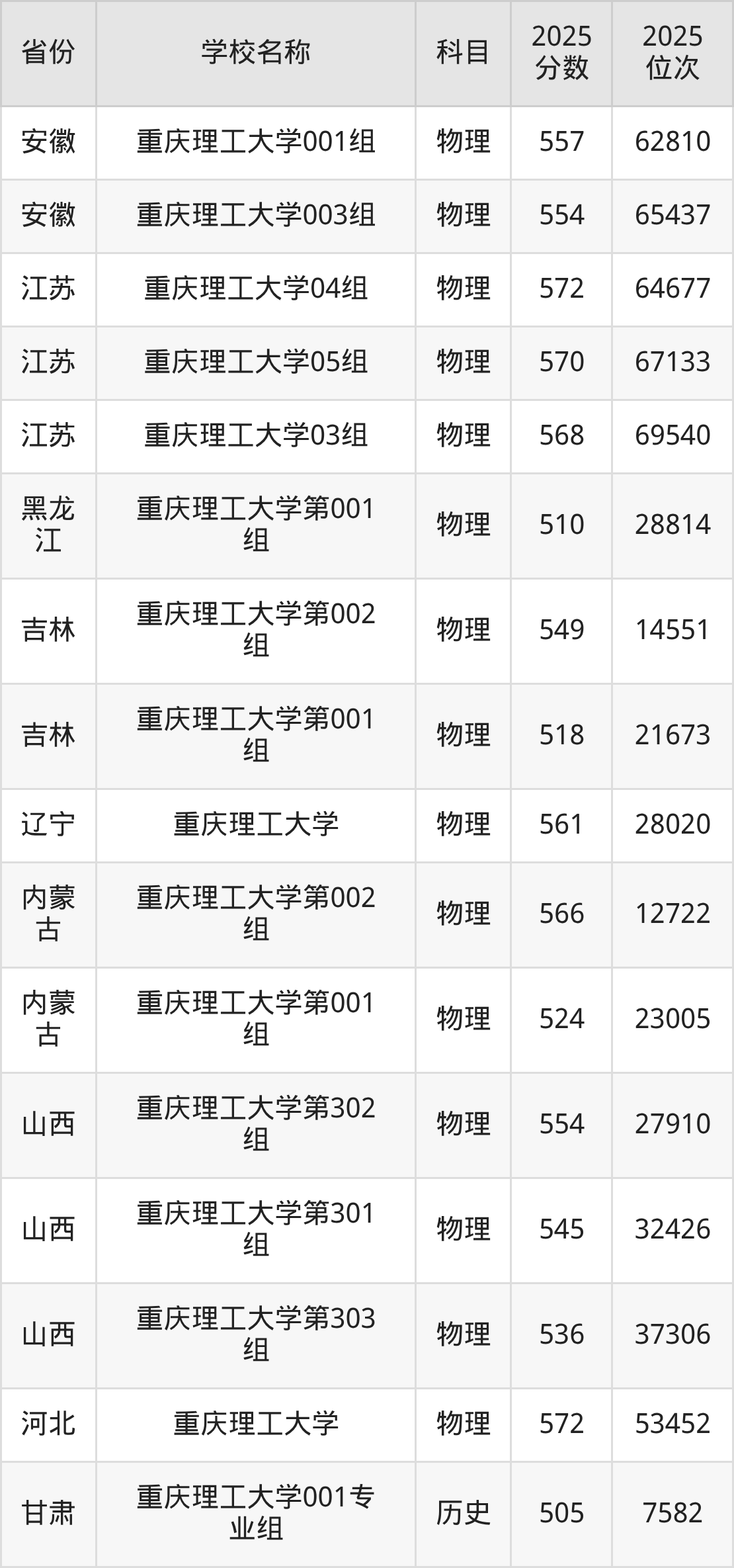 二、重庆理工大学各专业录取分数线