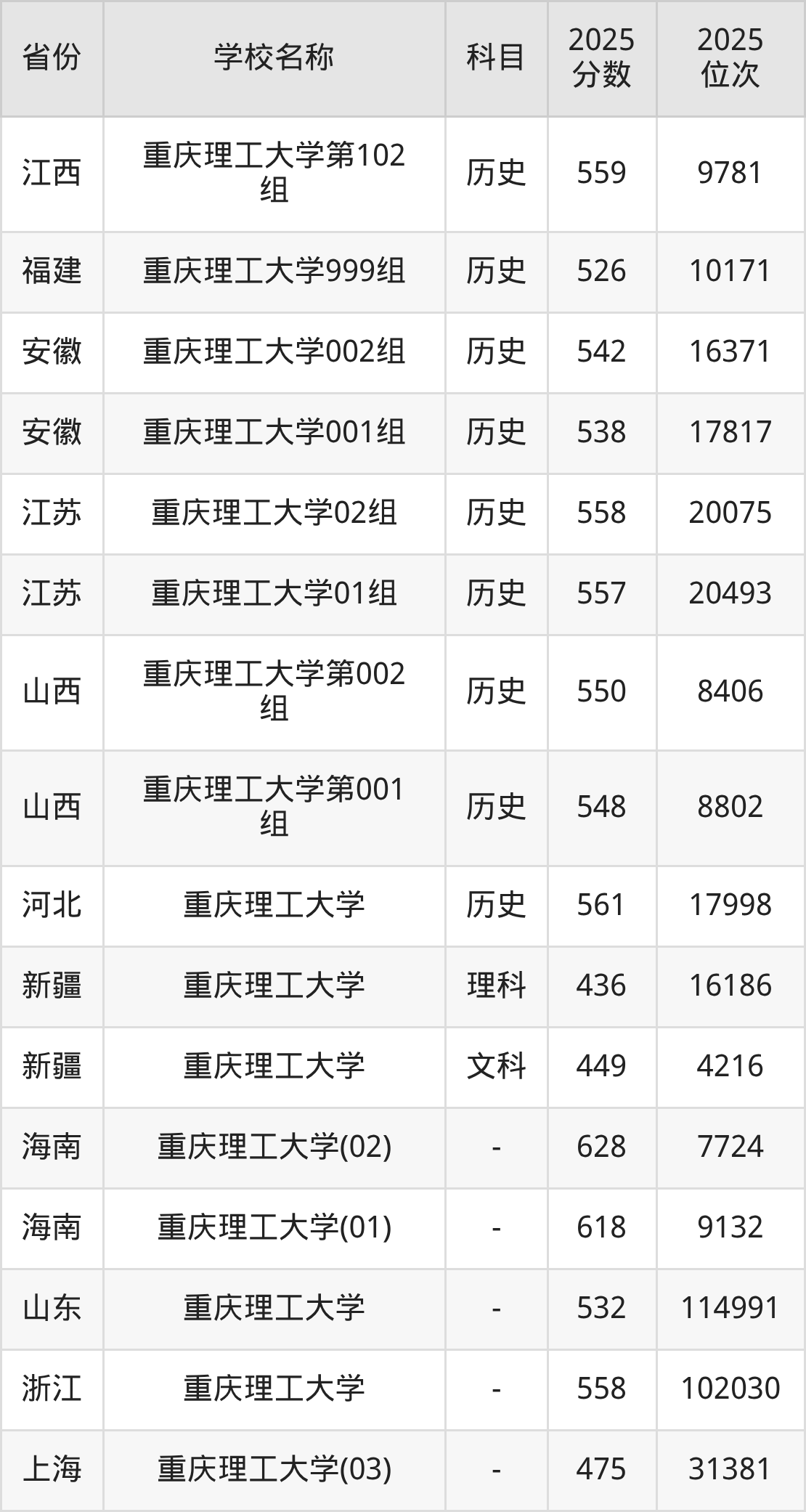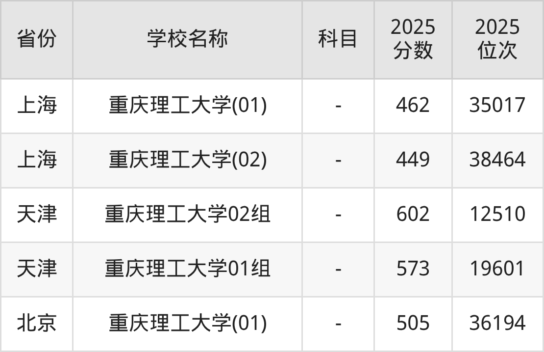 一、2025重庆理工大学录取分数线