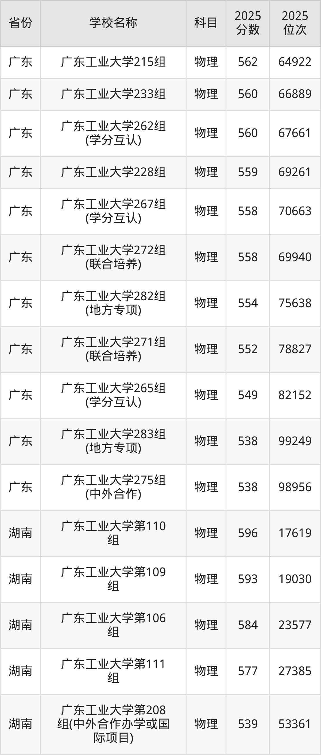 一、2025广东工业大学录取分数线