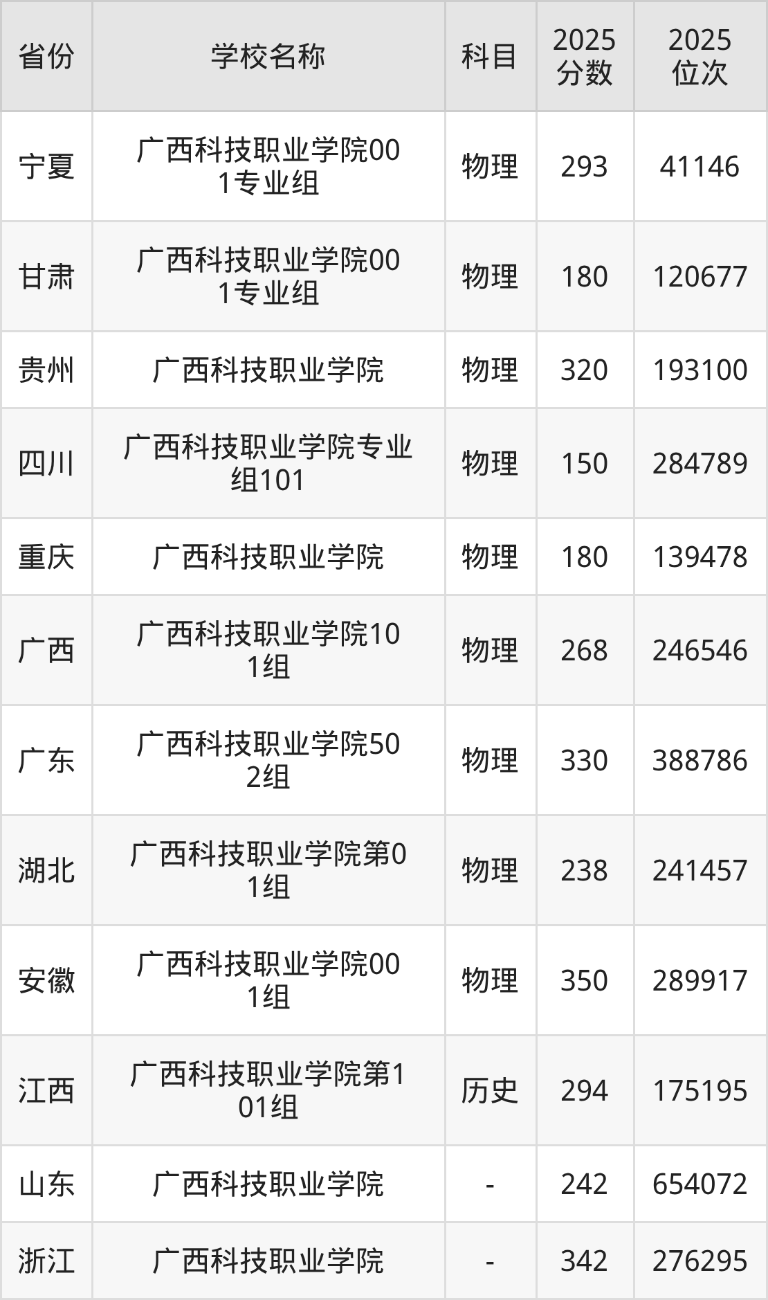 一、2025广西科技职业学院录取分数线