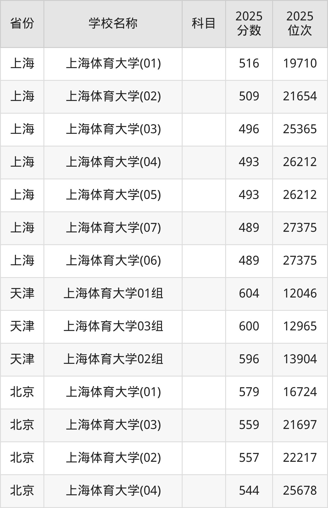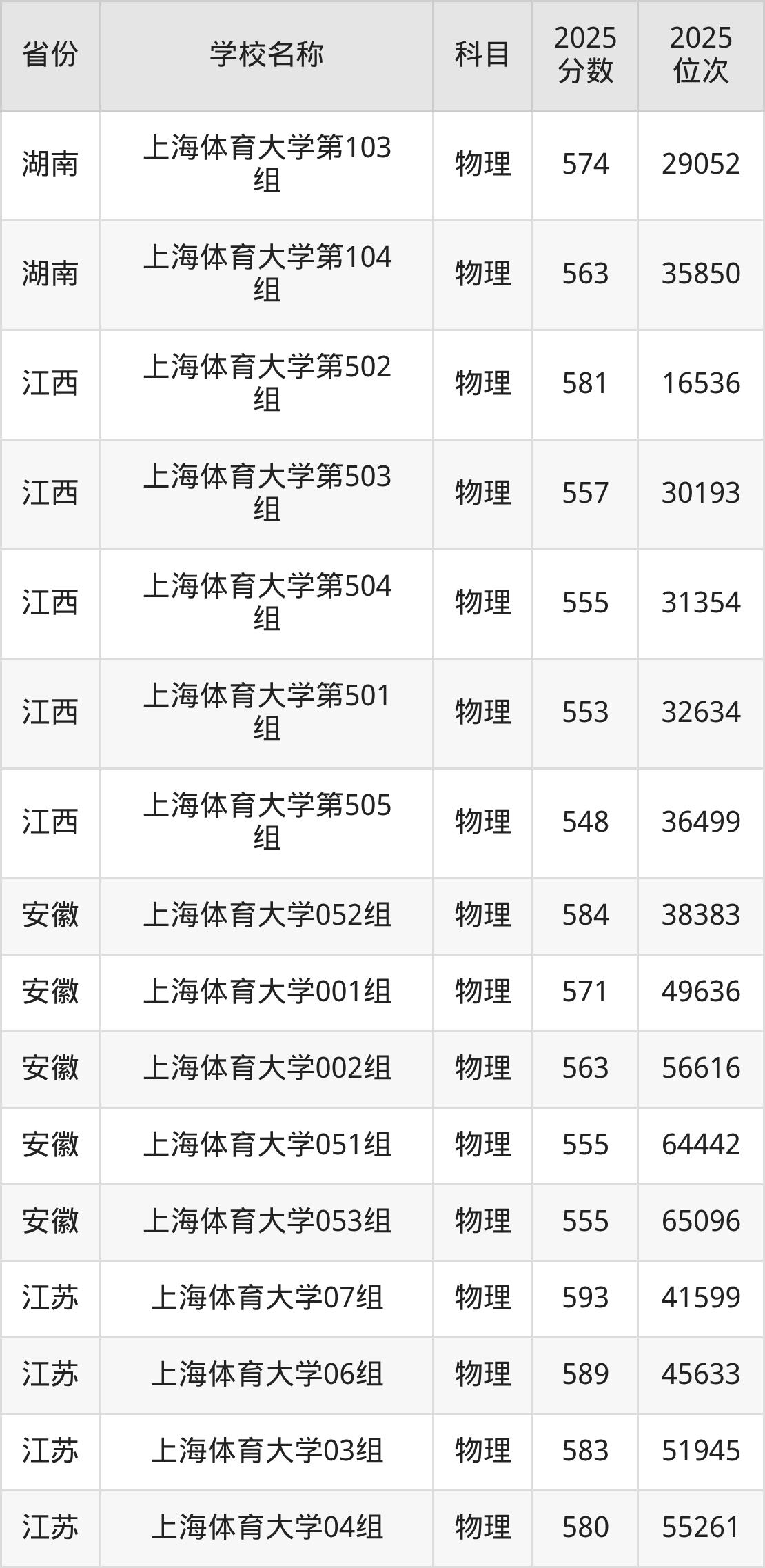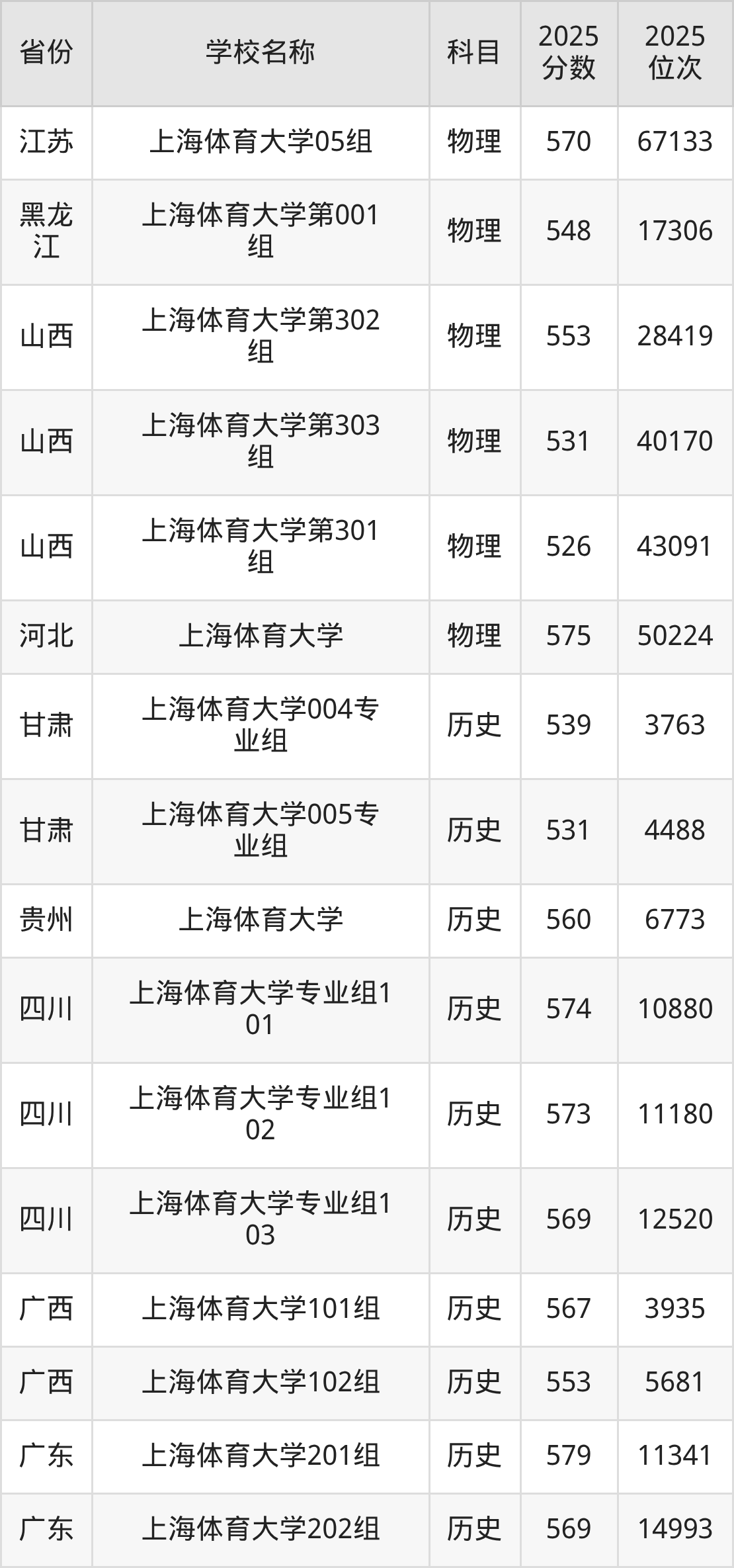 二、上海体育大学各专业录取分数线