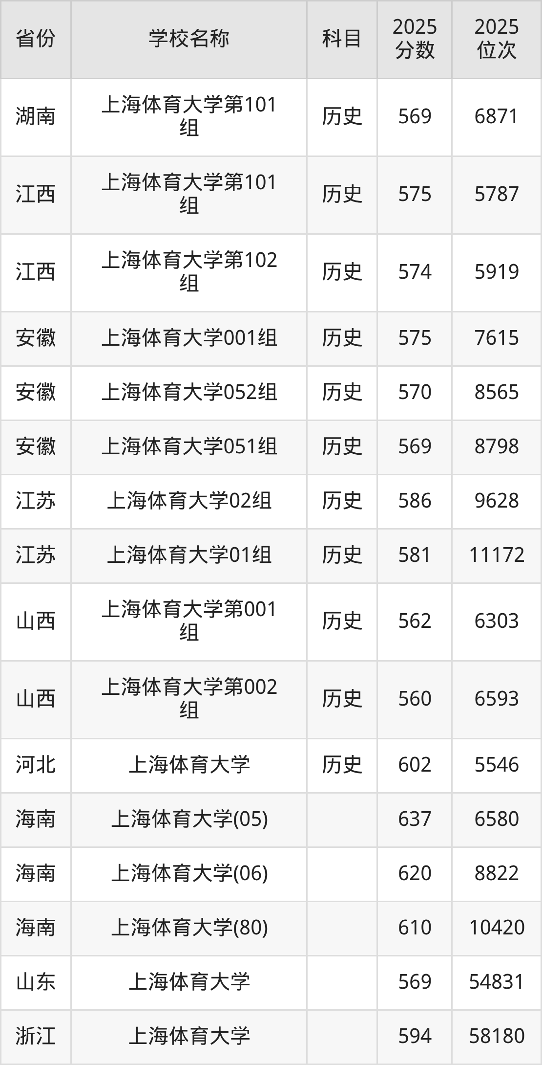 一、2025上海体育大学录取分数线