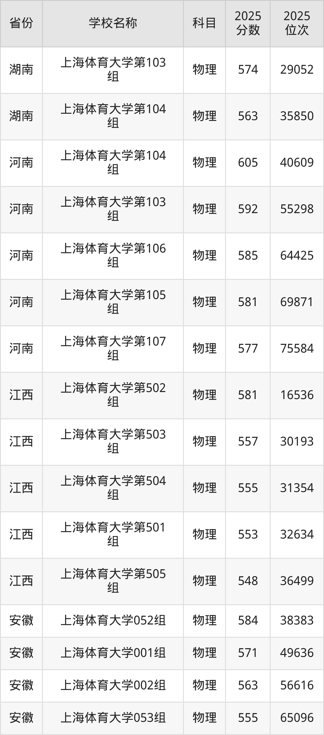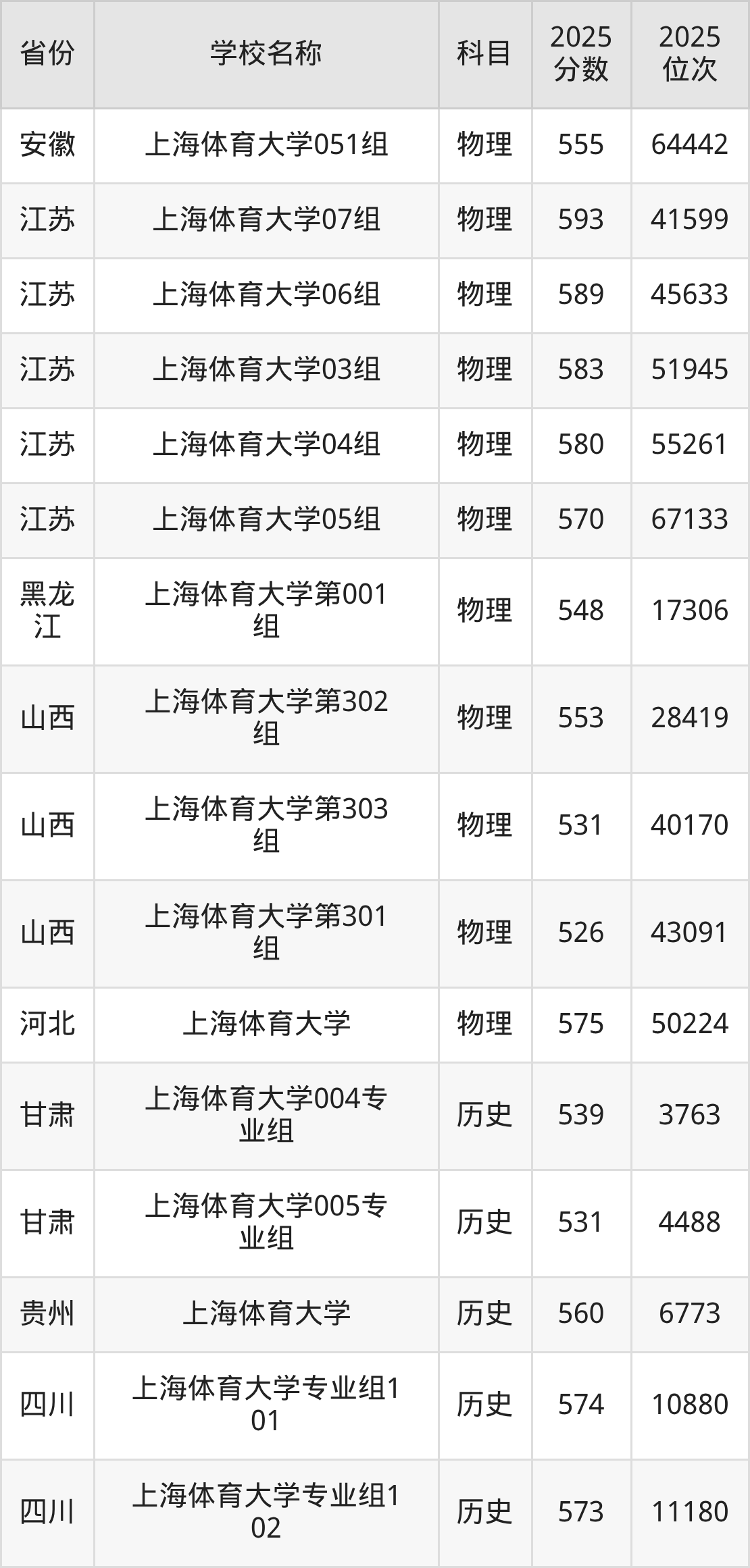2025年上海体育大学在全国各省本科的最低录取分数线在489~637分之间。海南高考生最低637分能上上海体育大学、河南物理类高考生最低605分能上上海体育大学……下文将展示上海体育大学在全国19个高考省份中的本科最低投档录取分汇总!