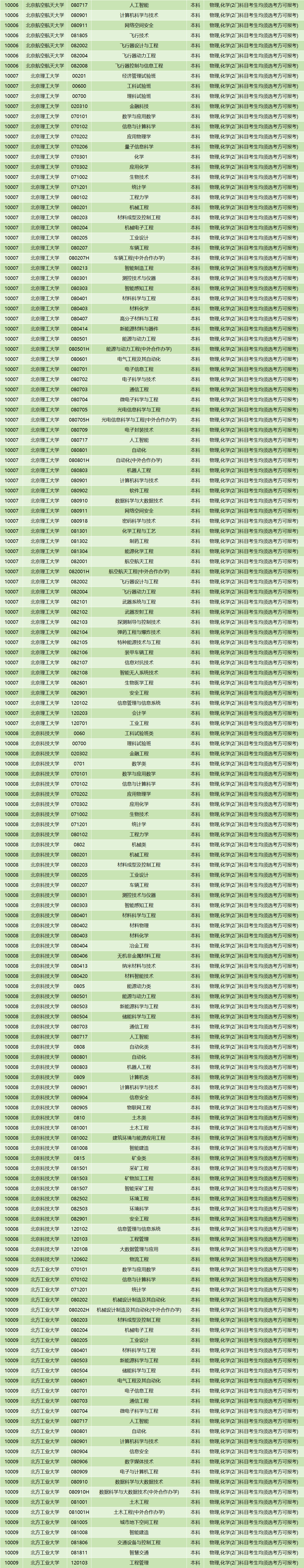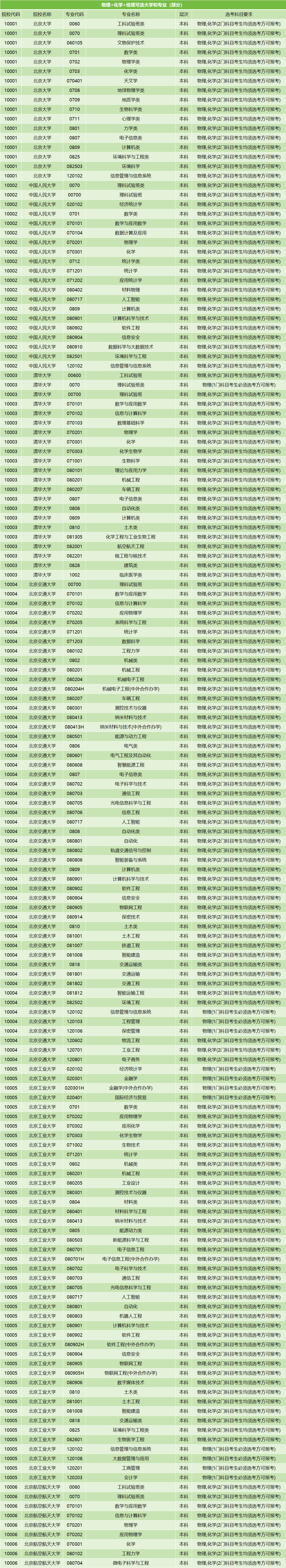 由于文章篇幅有限,下表整理了物化地考生可报考的部分大学和专业名单,供查阅: