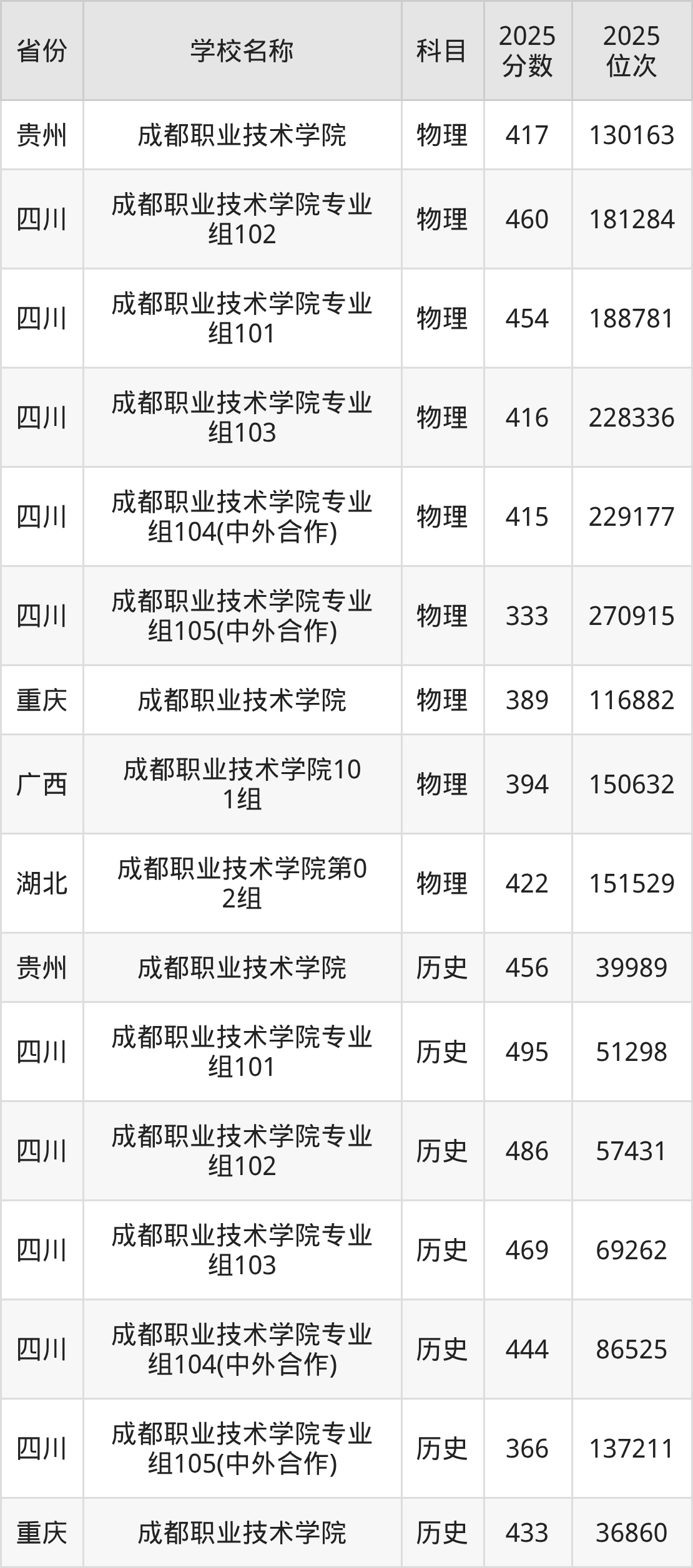 二、成都职业技术学院各专业录取分数线