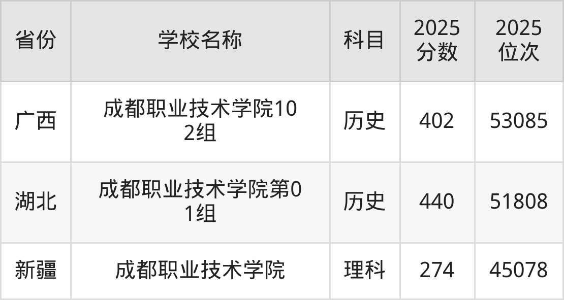 一、2025成都职业技术学院录取分数线