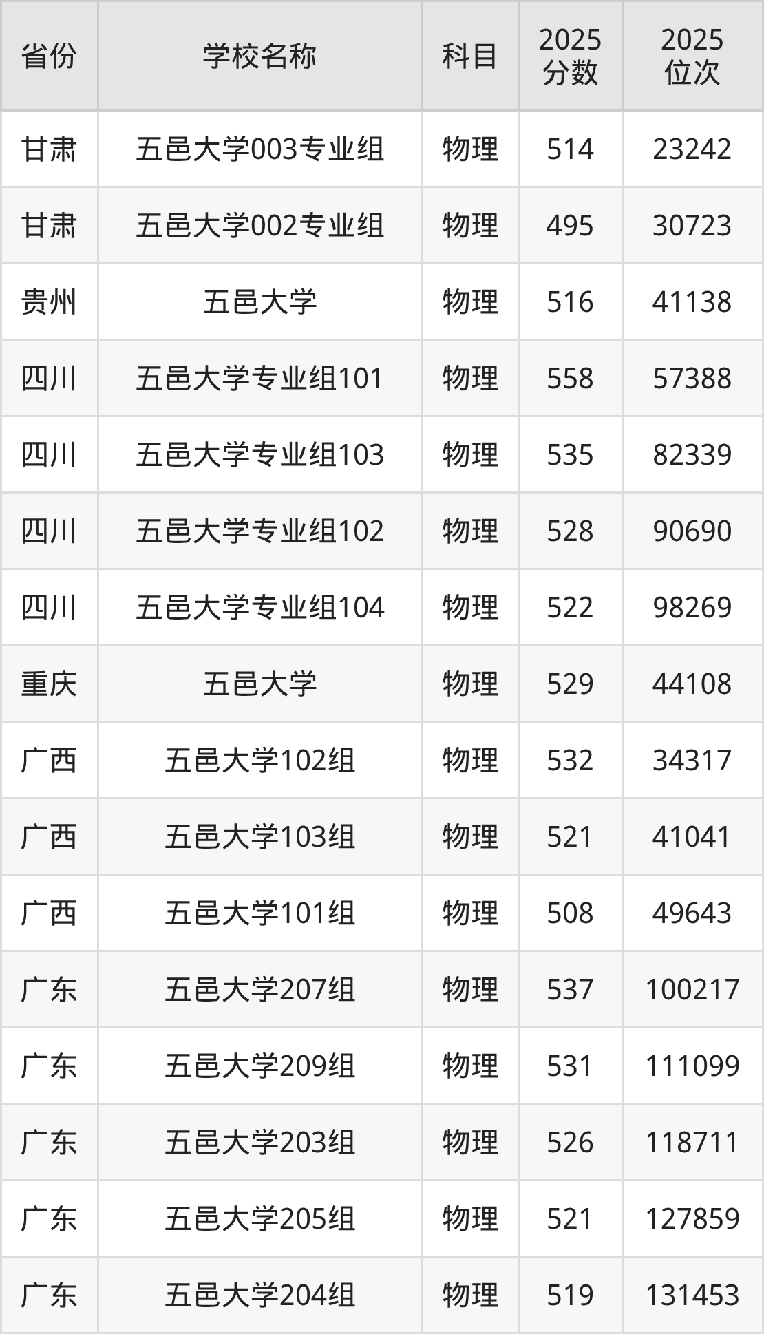 五邑大学2025年有11个专业组面向广东省内首选了物理科目的考生招生: