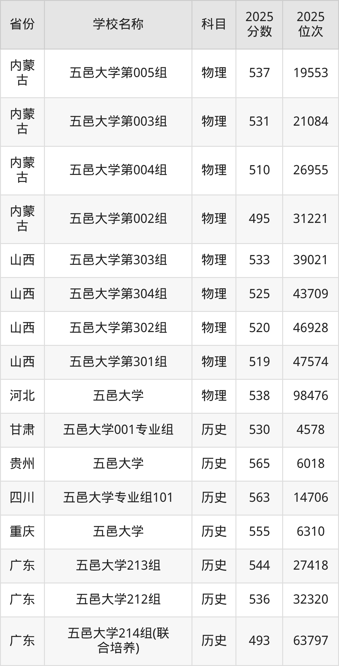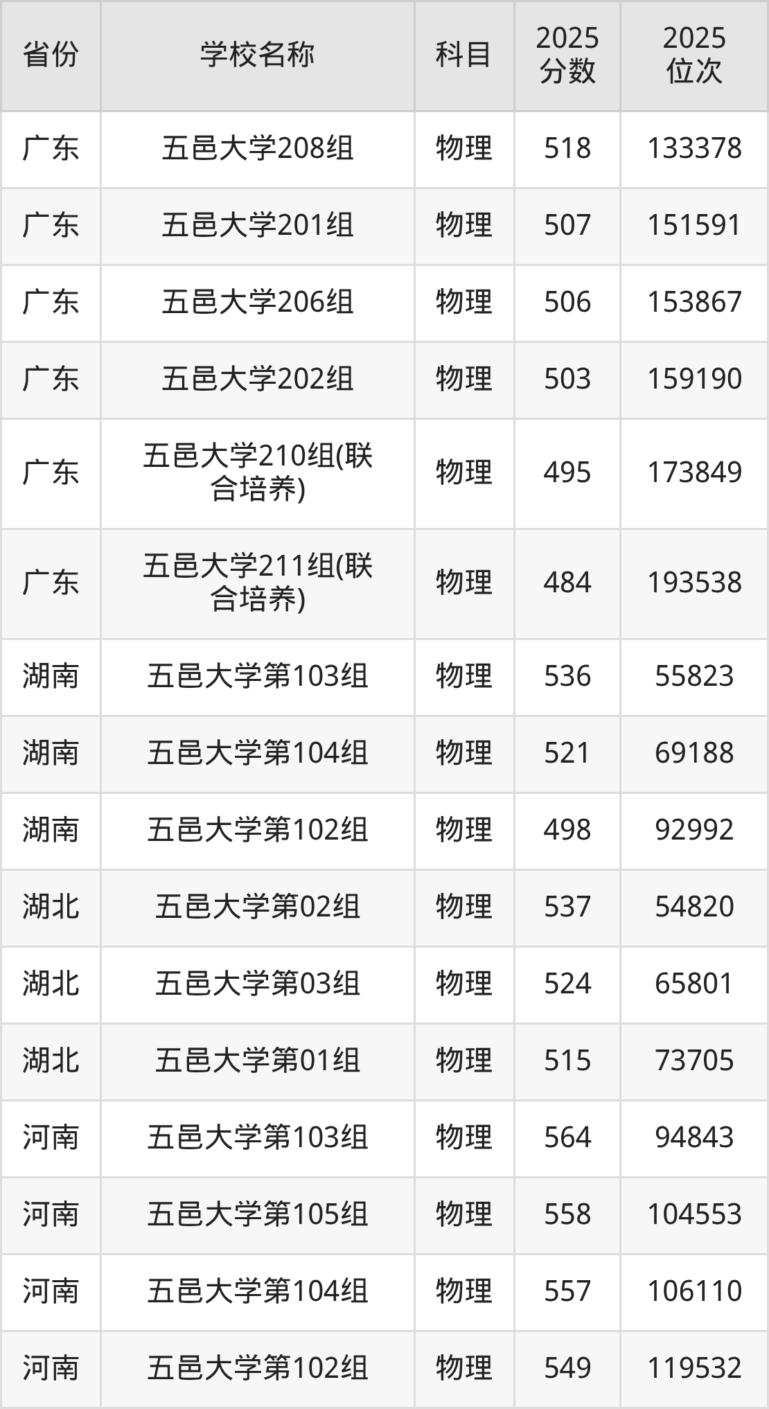 一、2025五邑大学录取分数线