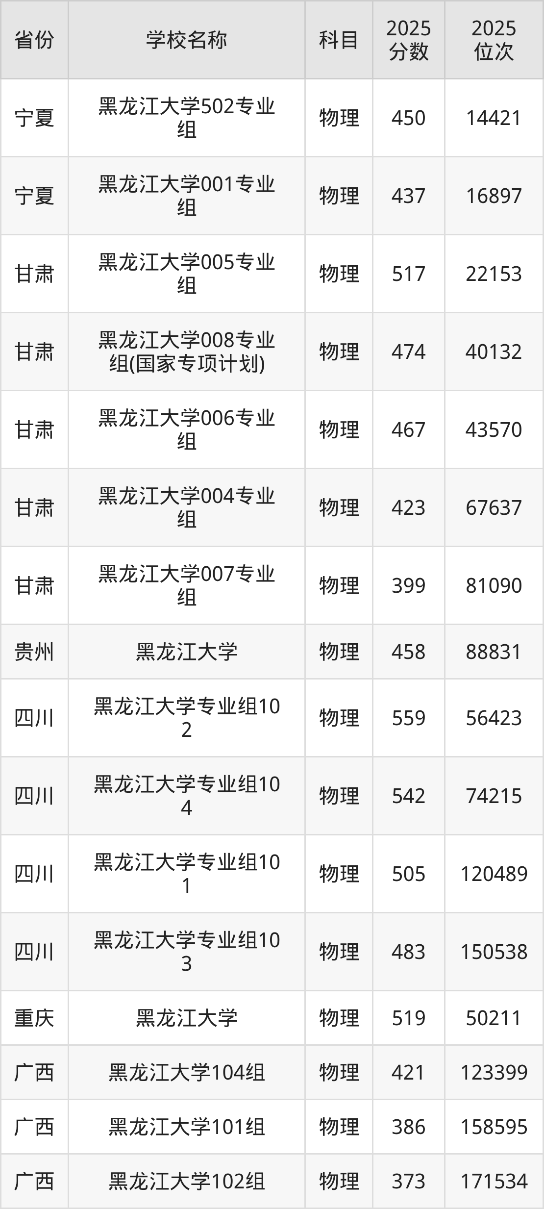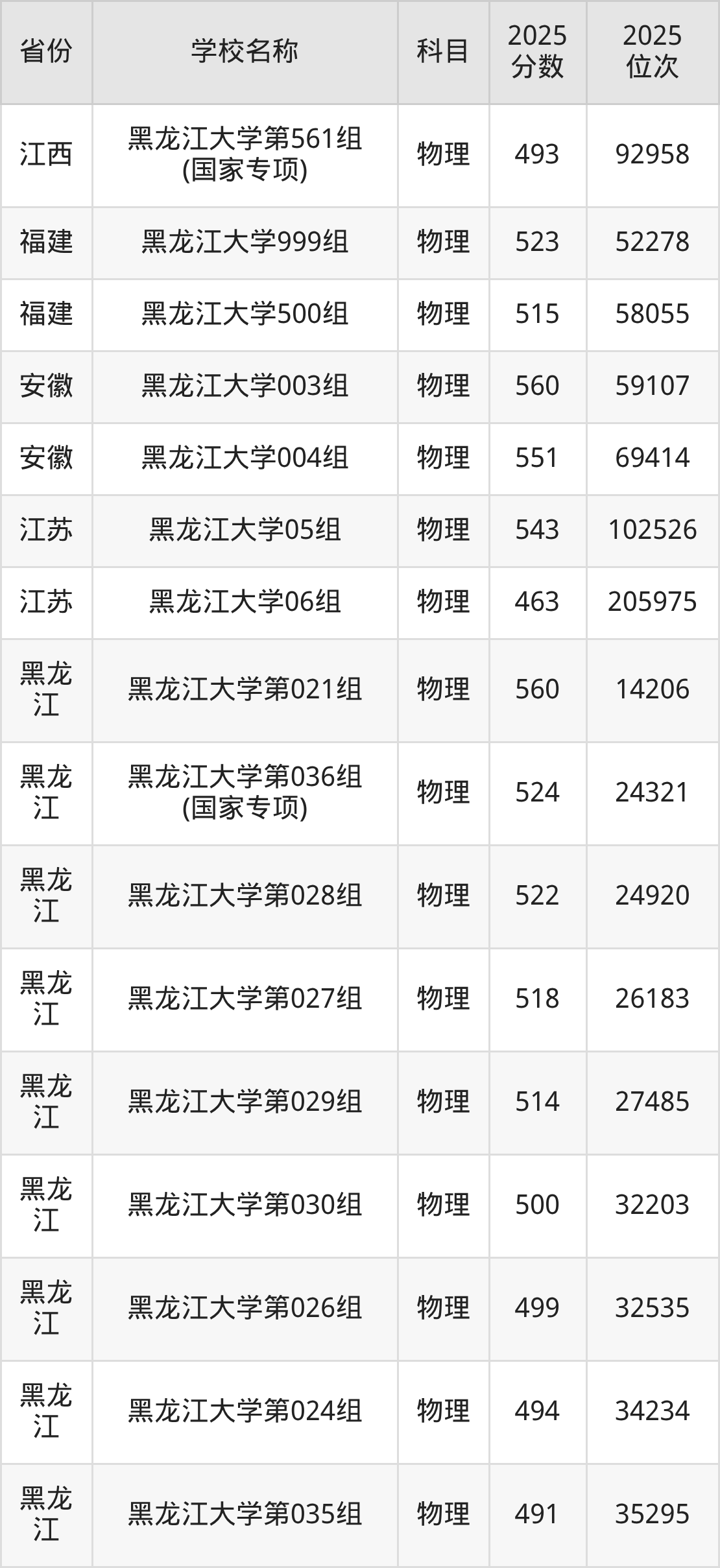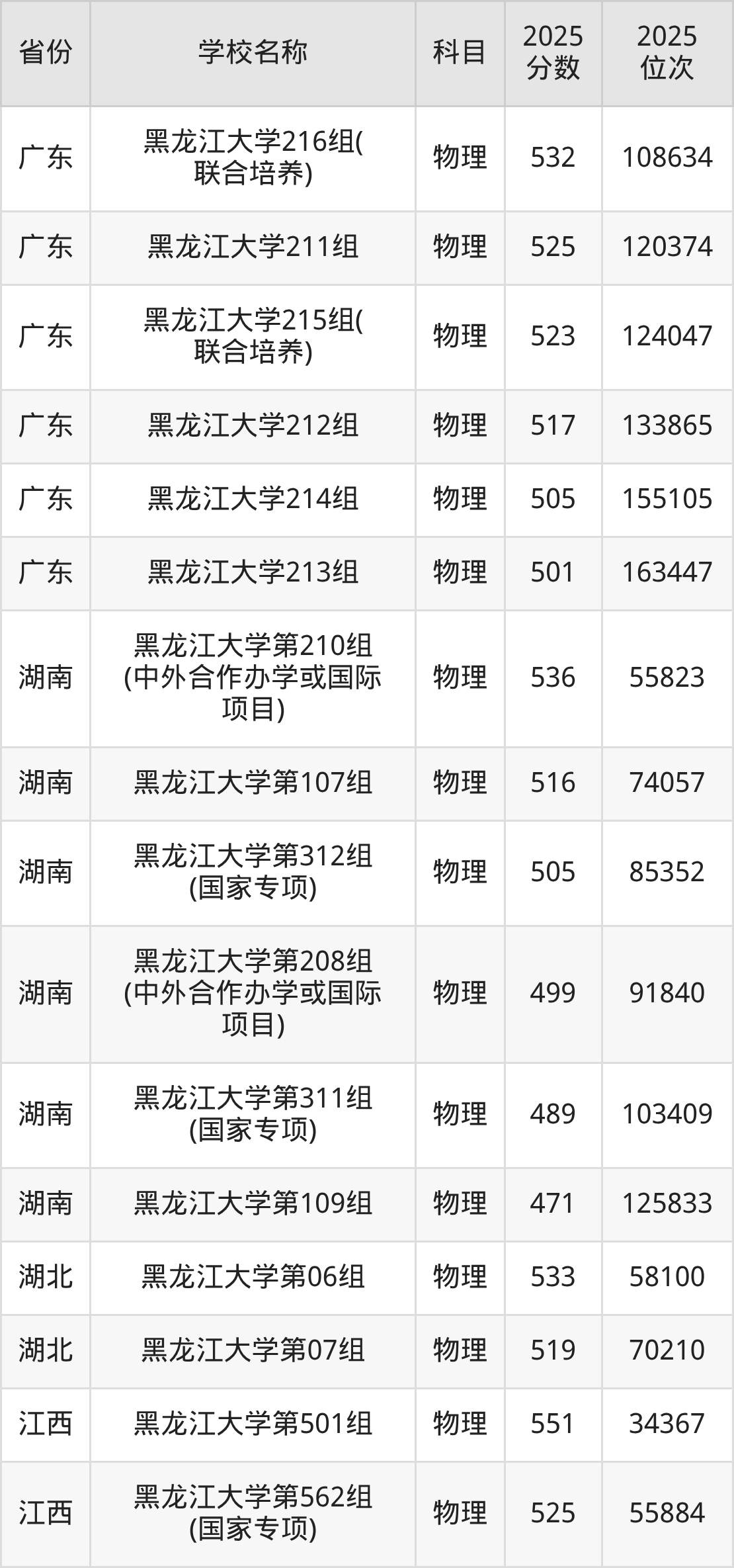 黑龙江大学2025年有17个专业组面向黑龙江省内首选了物理科目的考生招生: