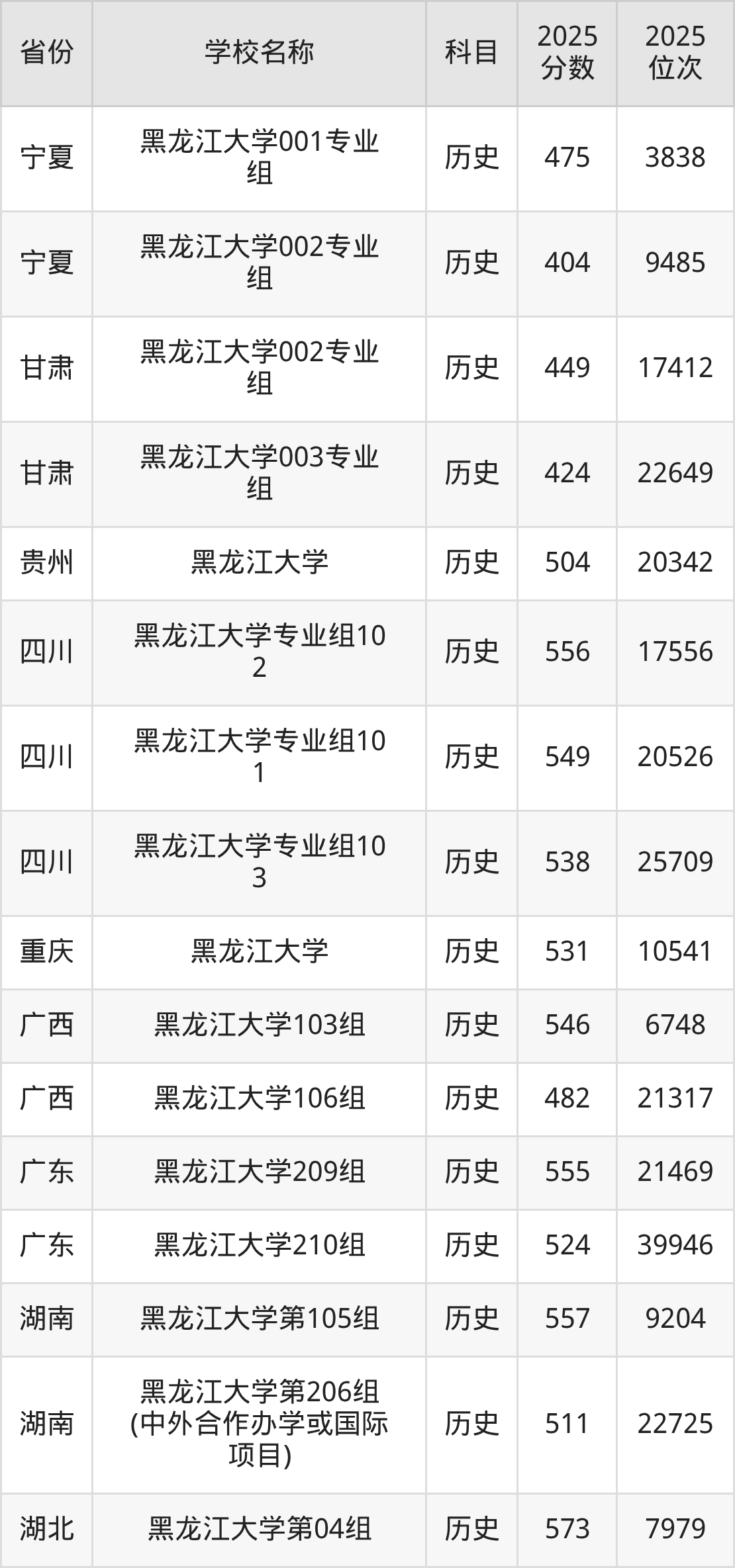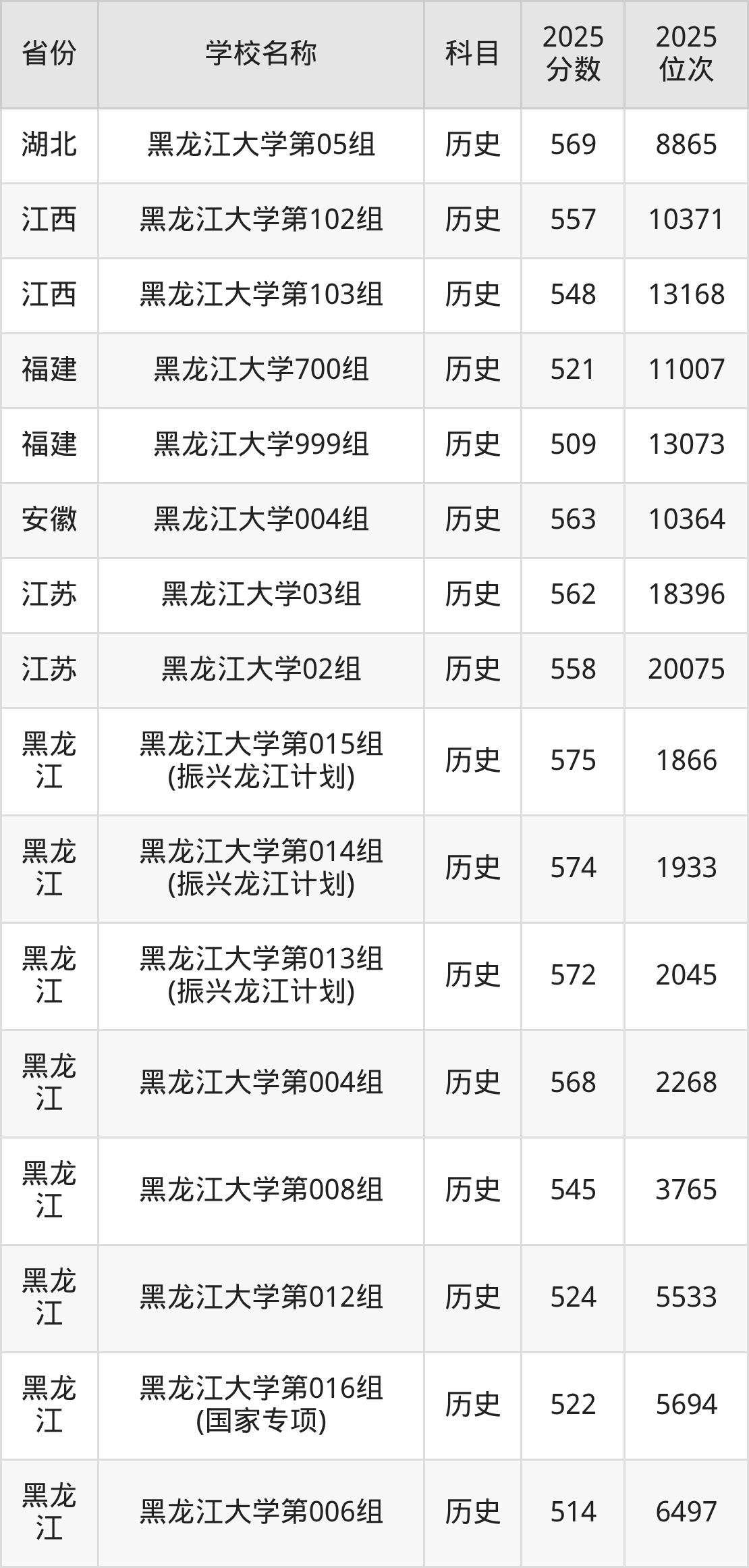 二、黑龙江大学各专业录取分数线