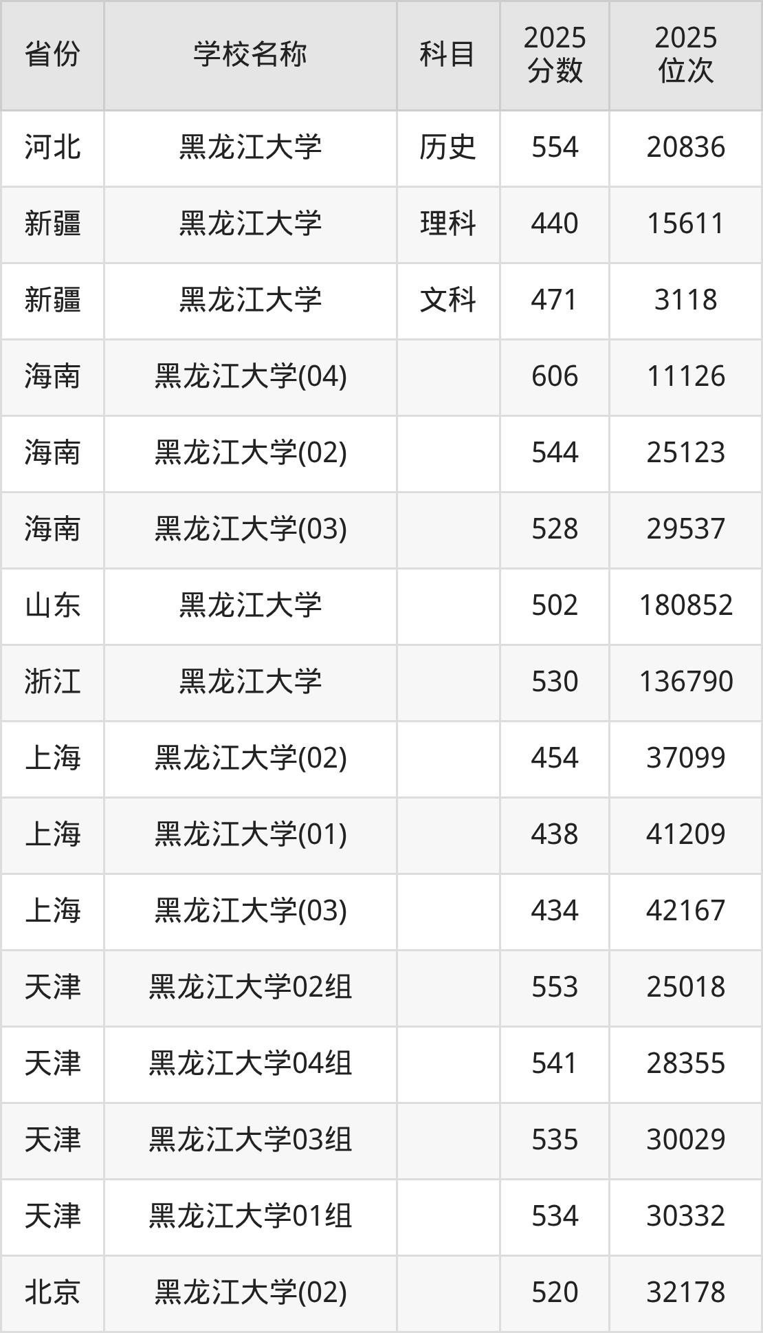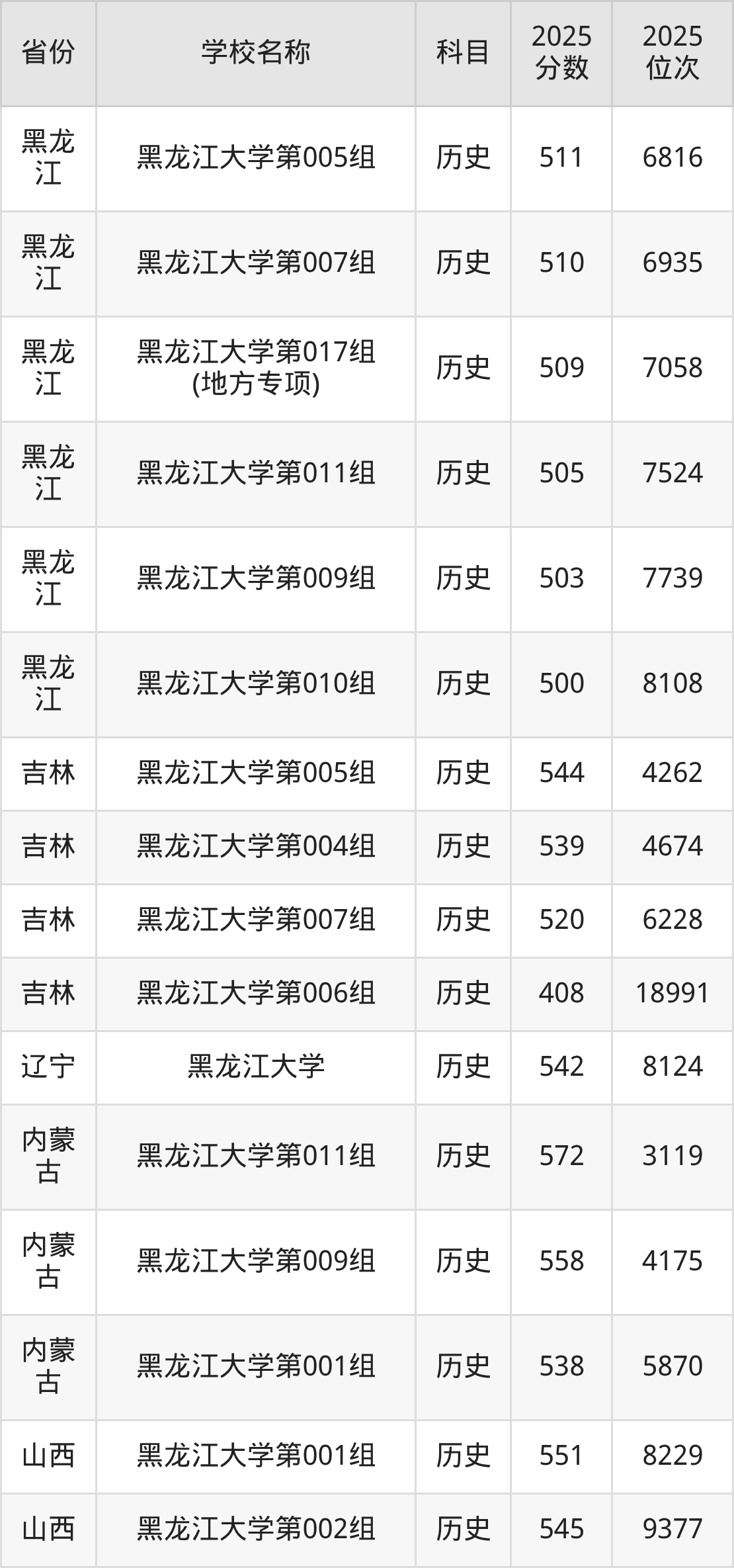 一、2025黑龙江大学录取分数线