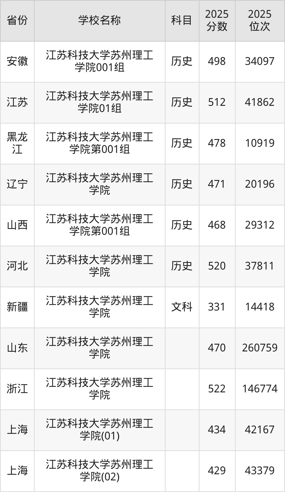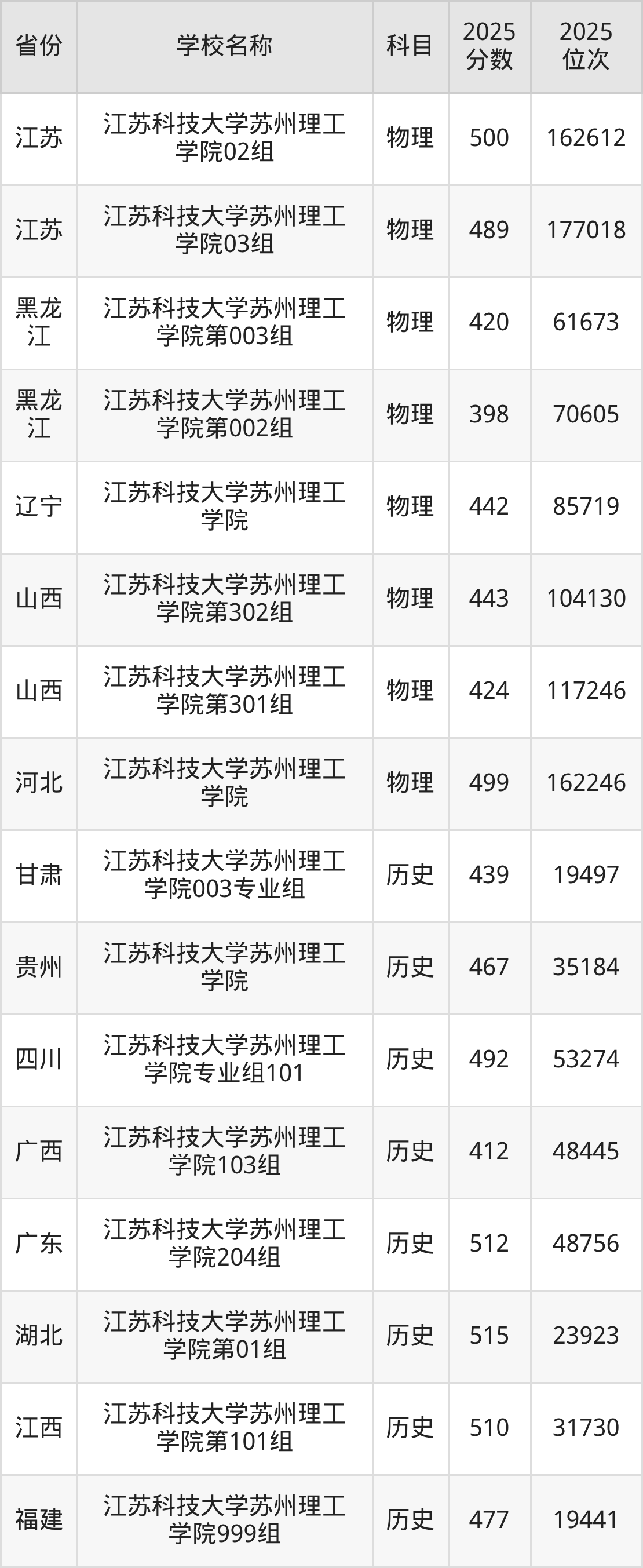 一、2025江苏科技大学苏州理工学院录取分数线