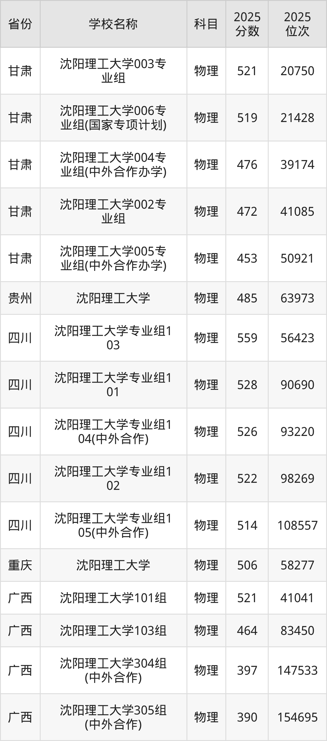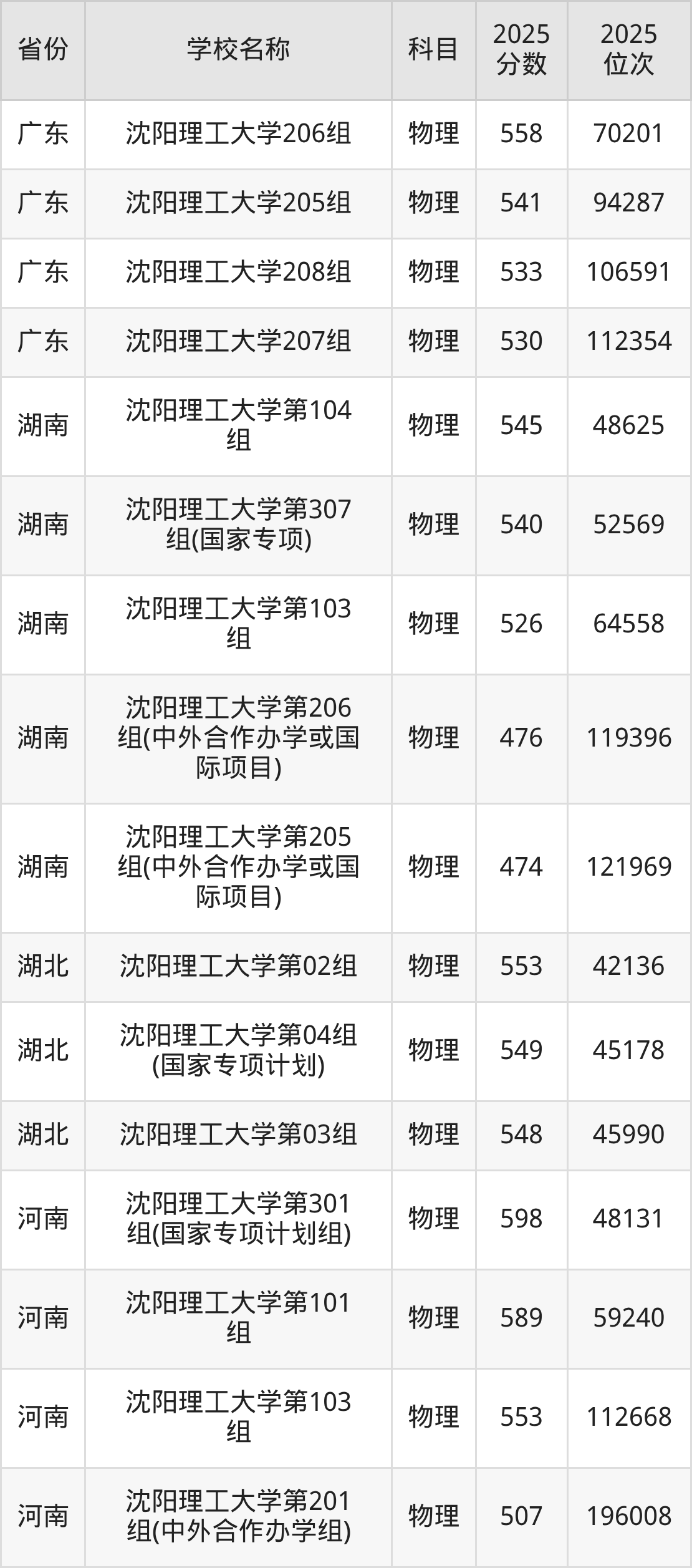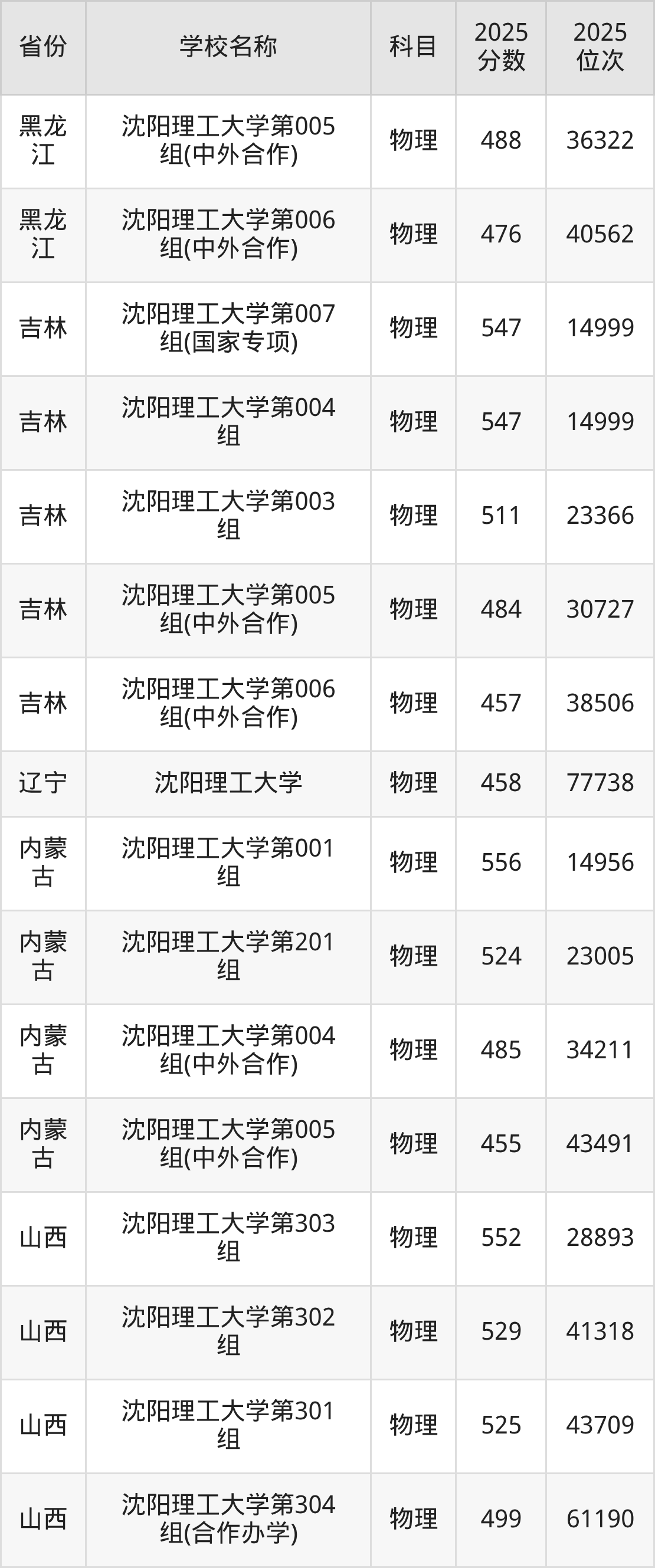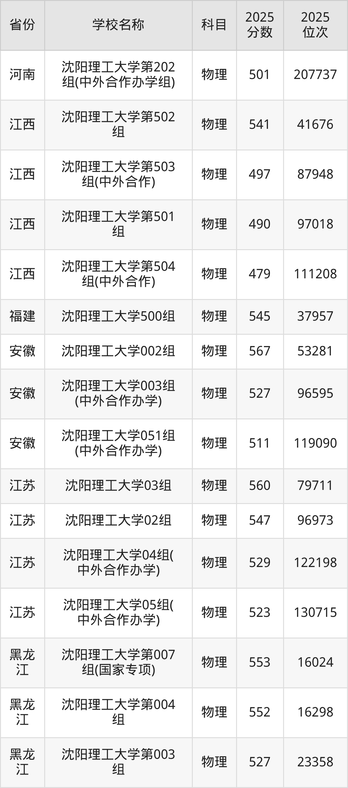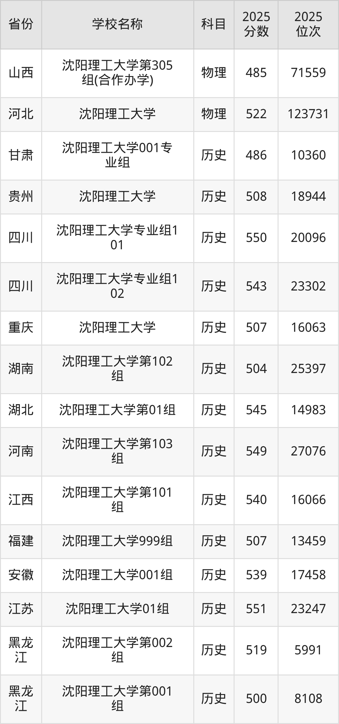 二、沈阳理工大学各专业录取分数线