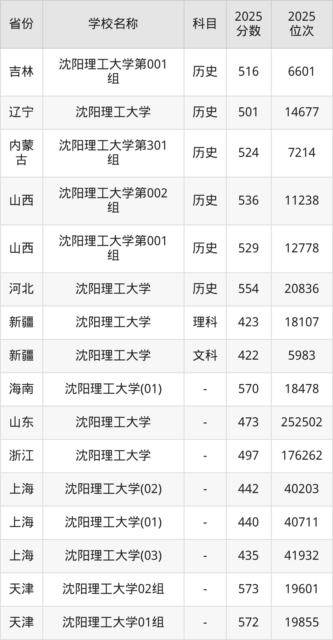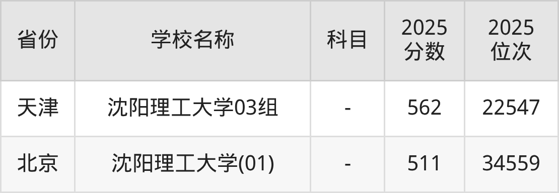 一、2025沈阳理工大学录取分数线