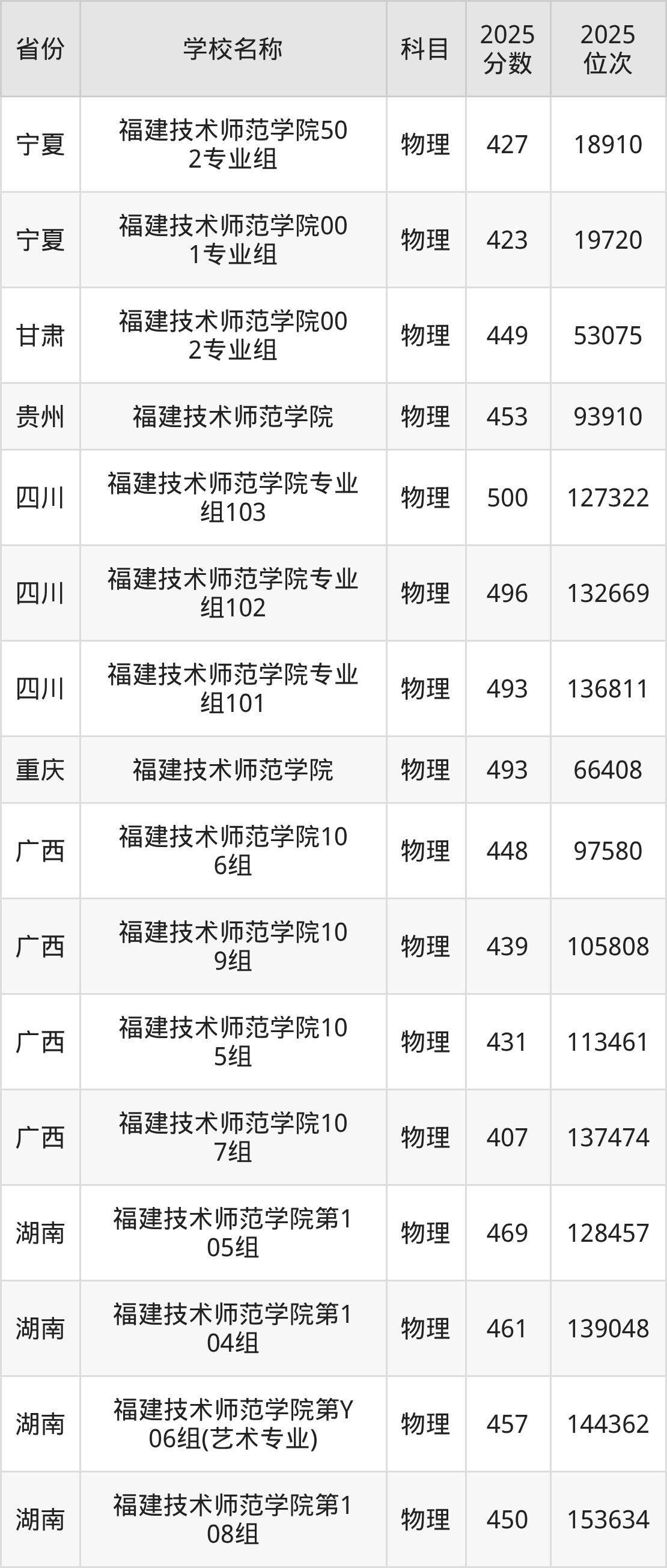 福建技术师范学院2025年有5个专业组面向福建省内首选了物理科目的考生招生: