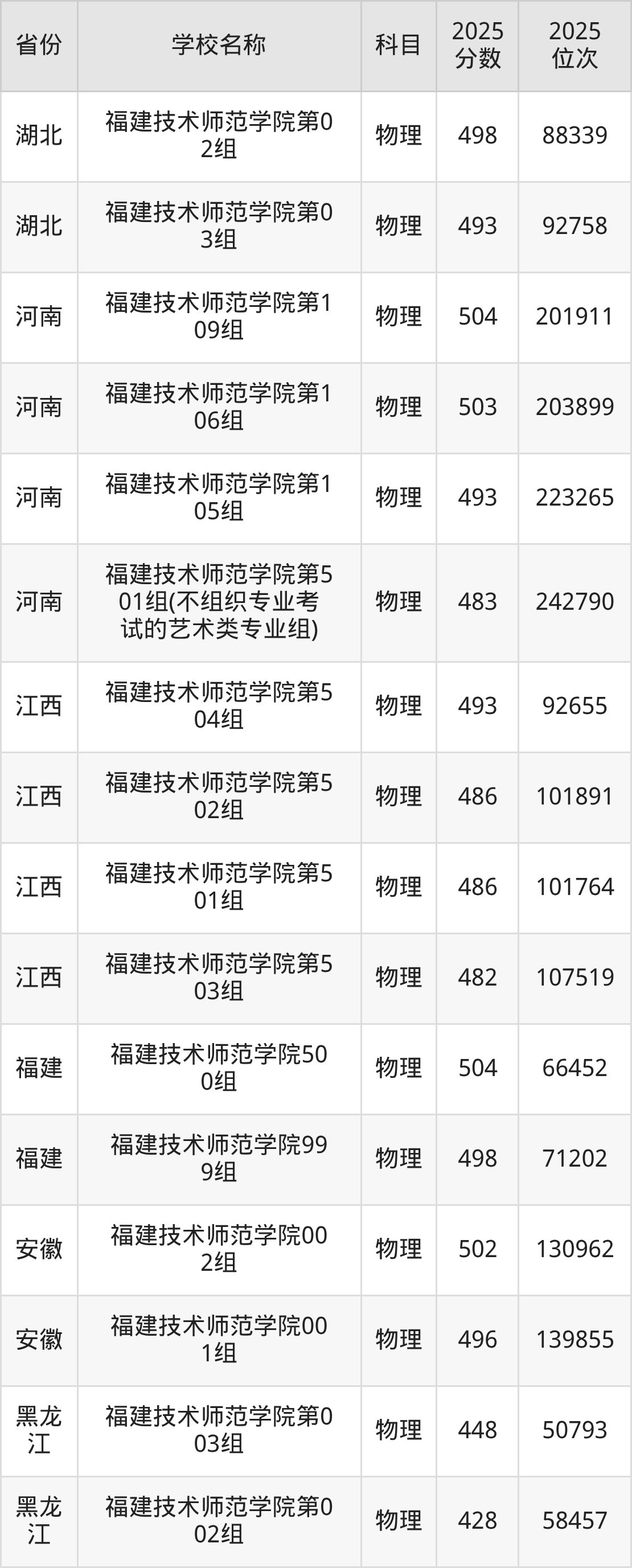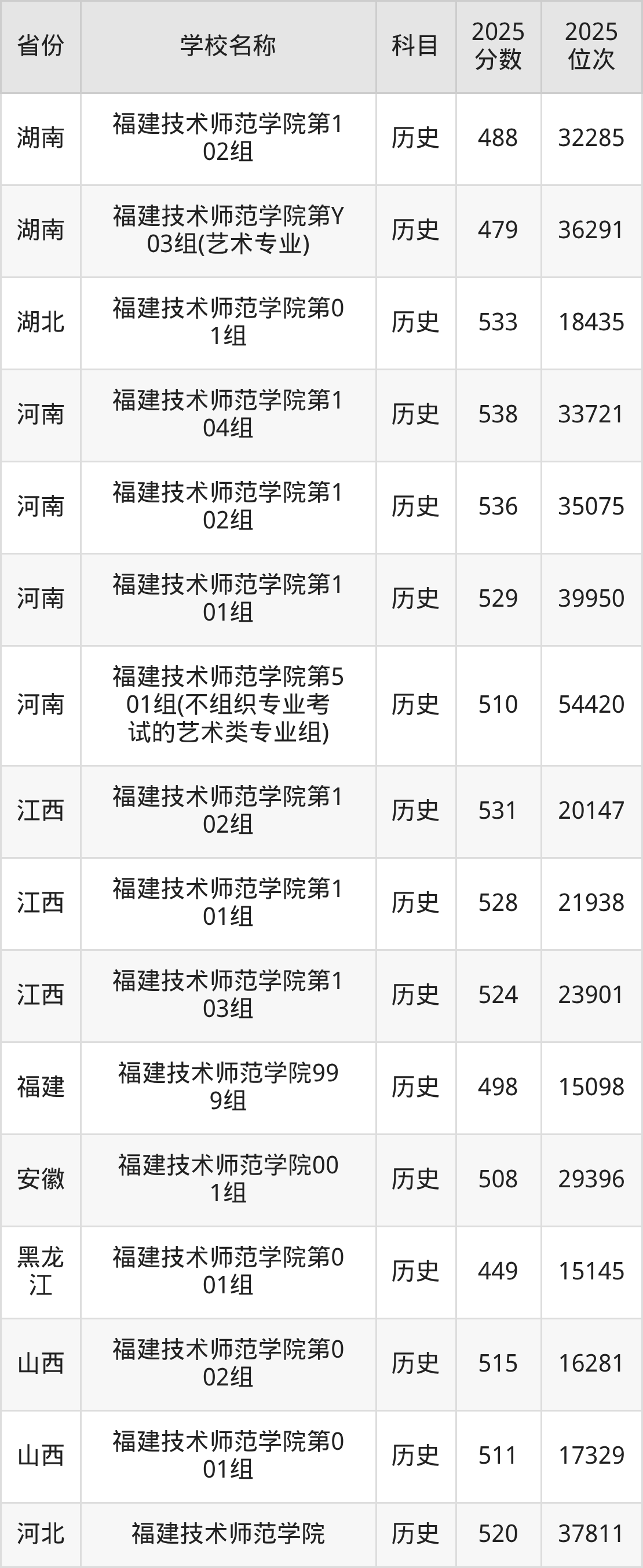 一、2025福建技术师范学院录取分数线