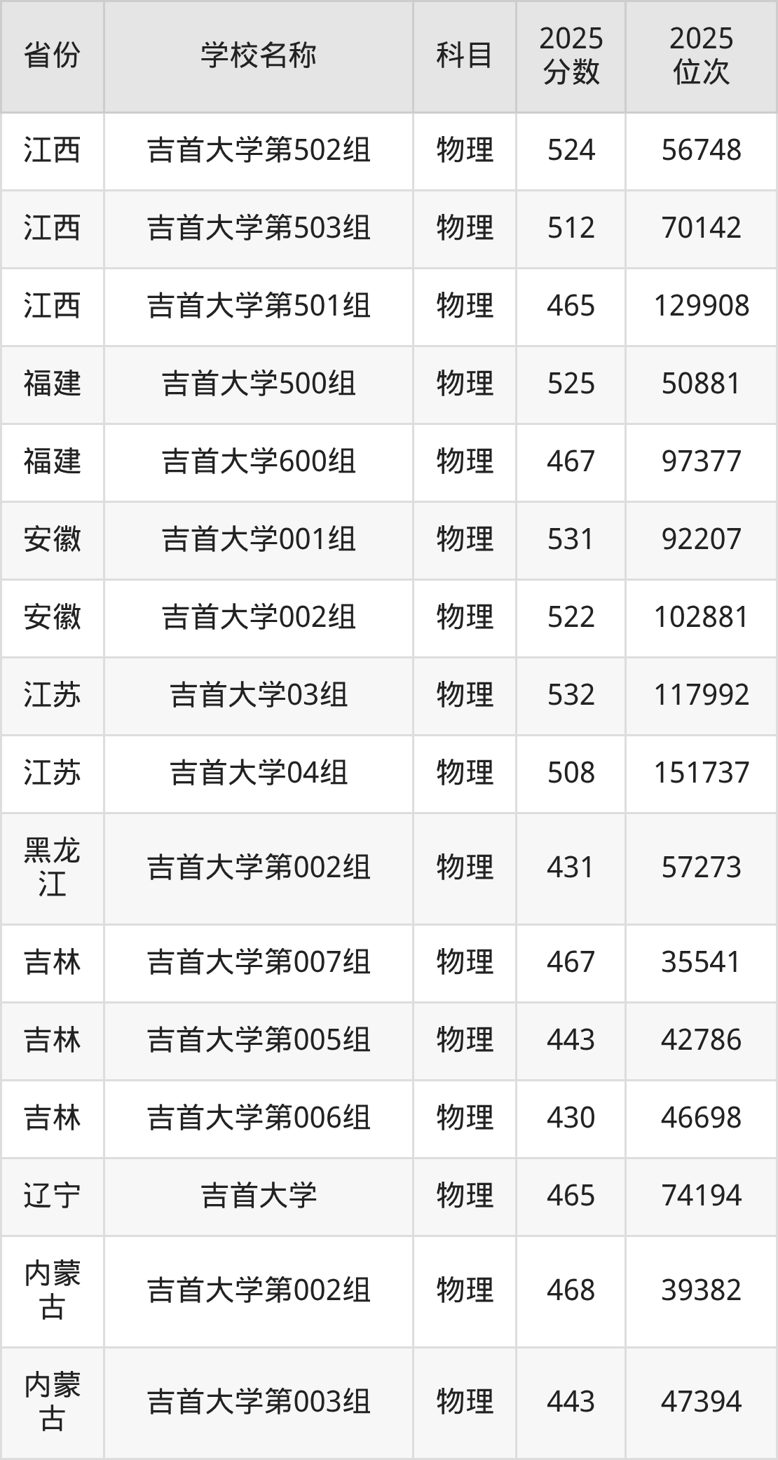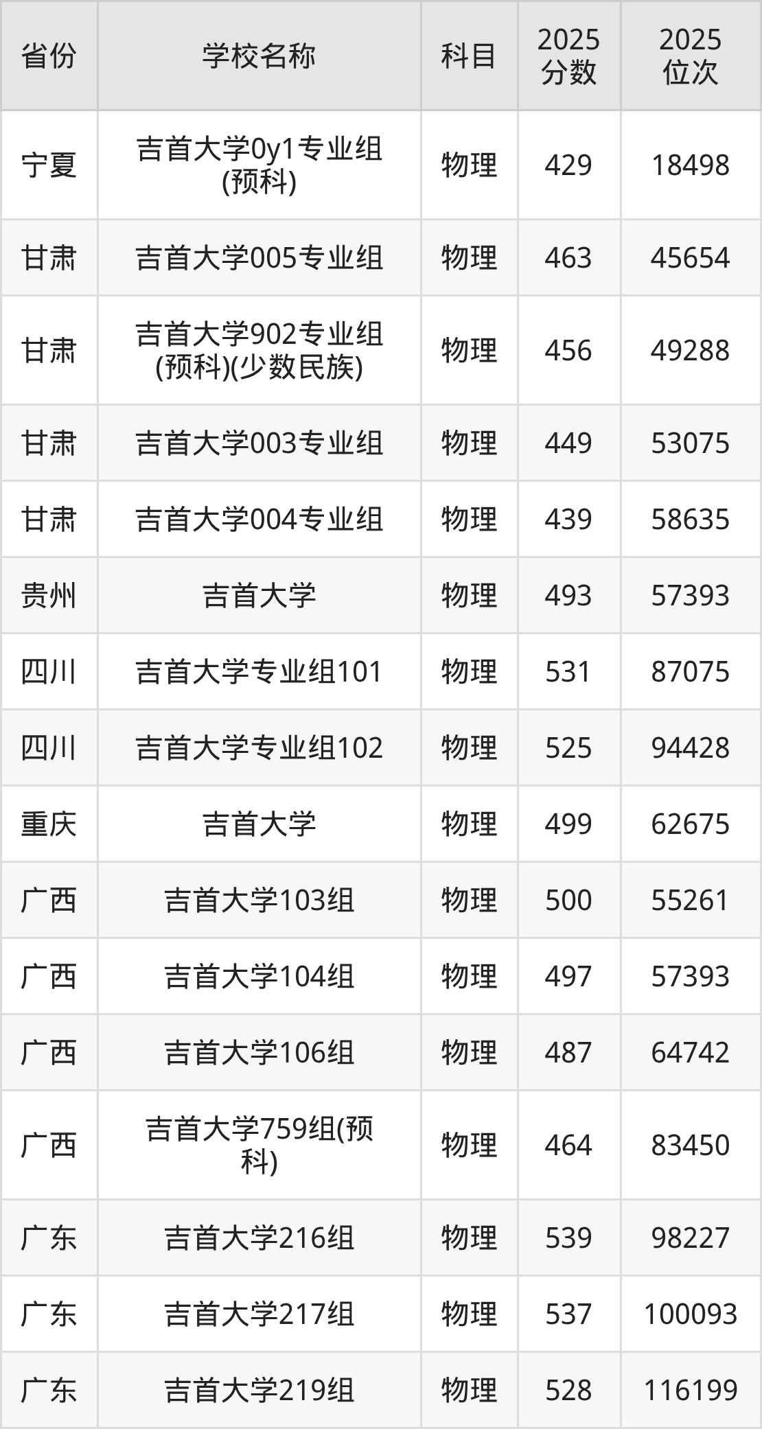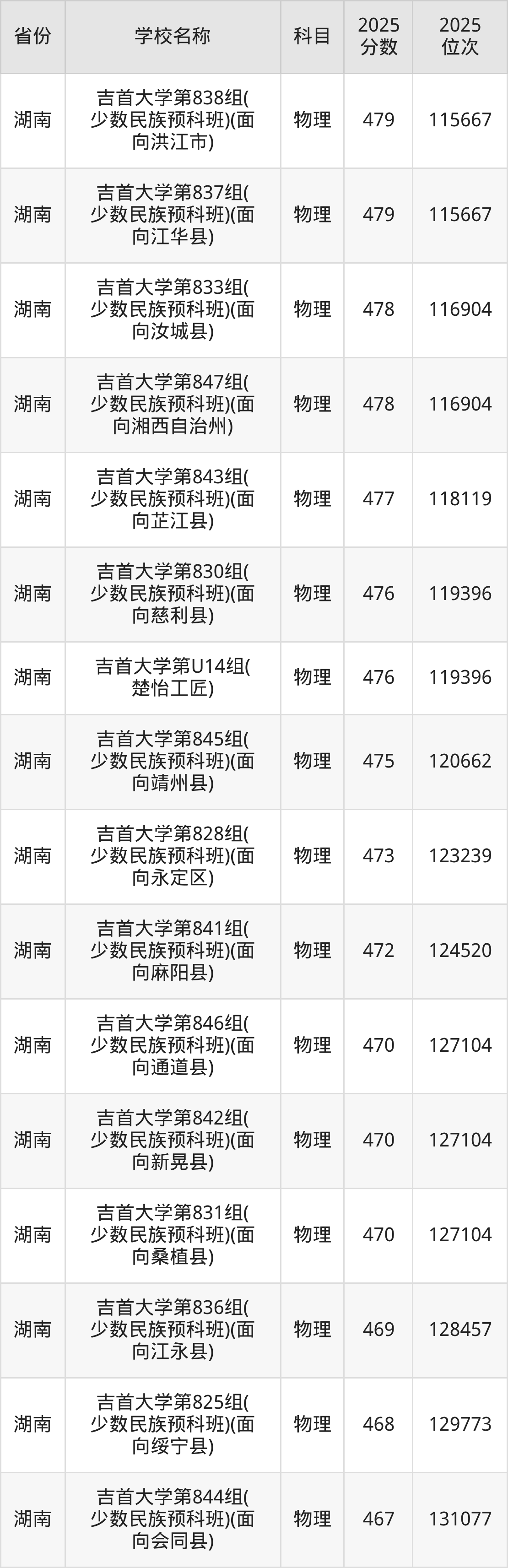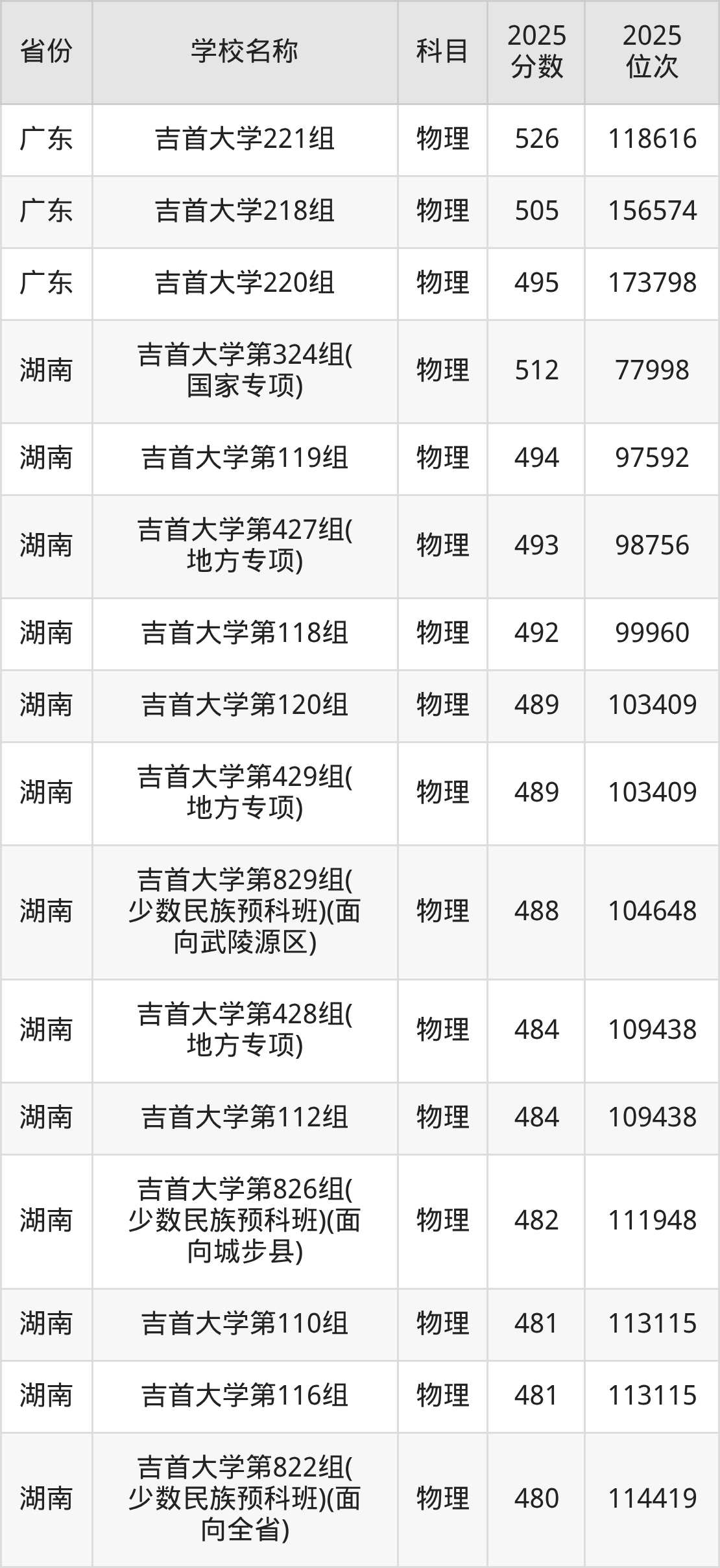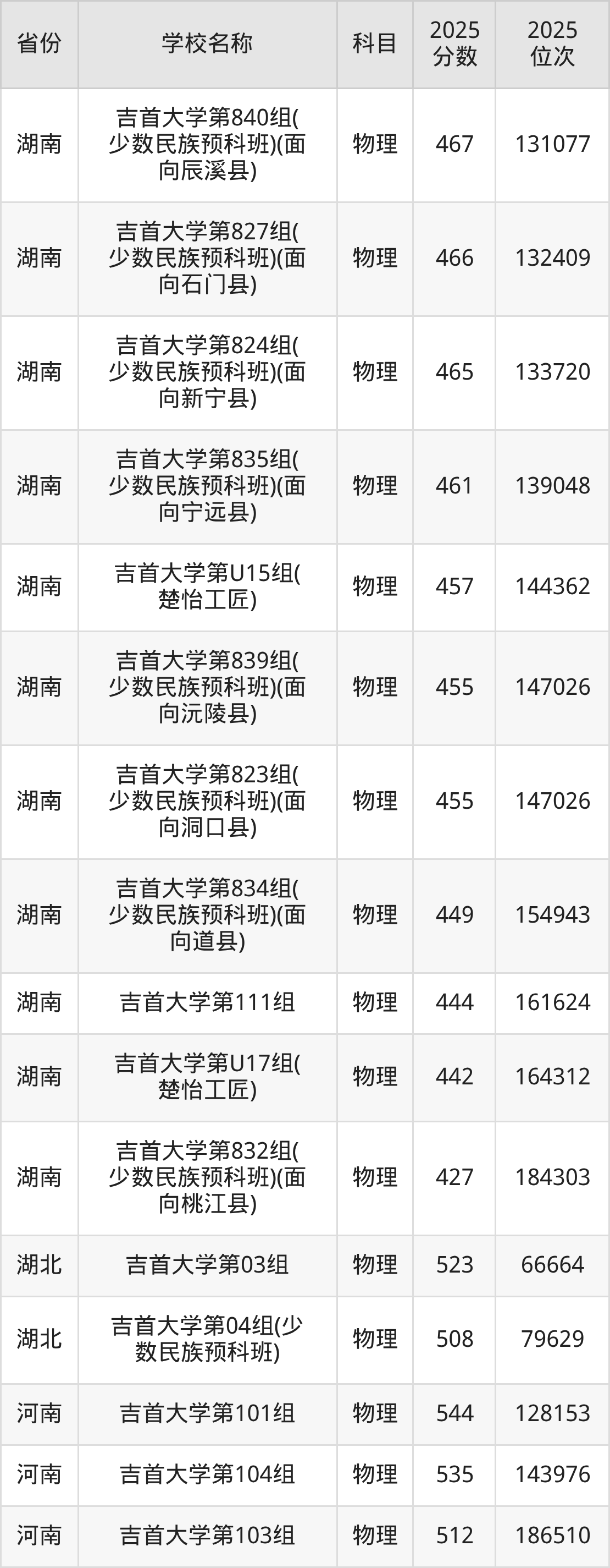 吉首大学2025年有75个专业组面向湖南省内首选了物理科目的考生招生: