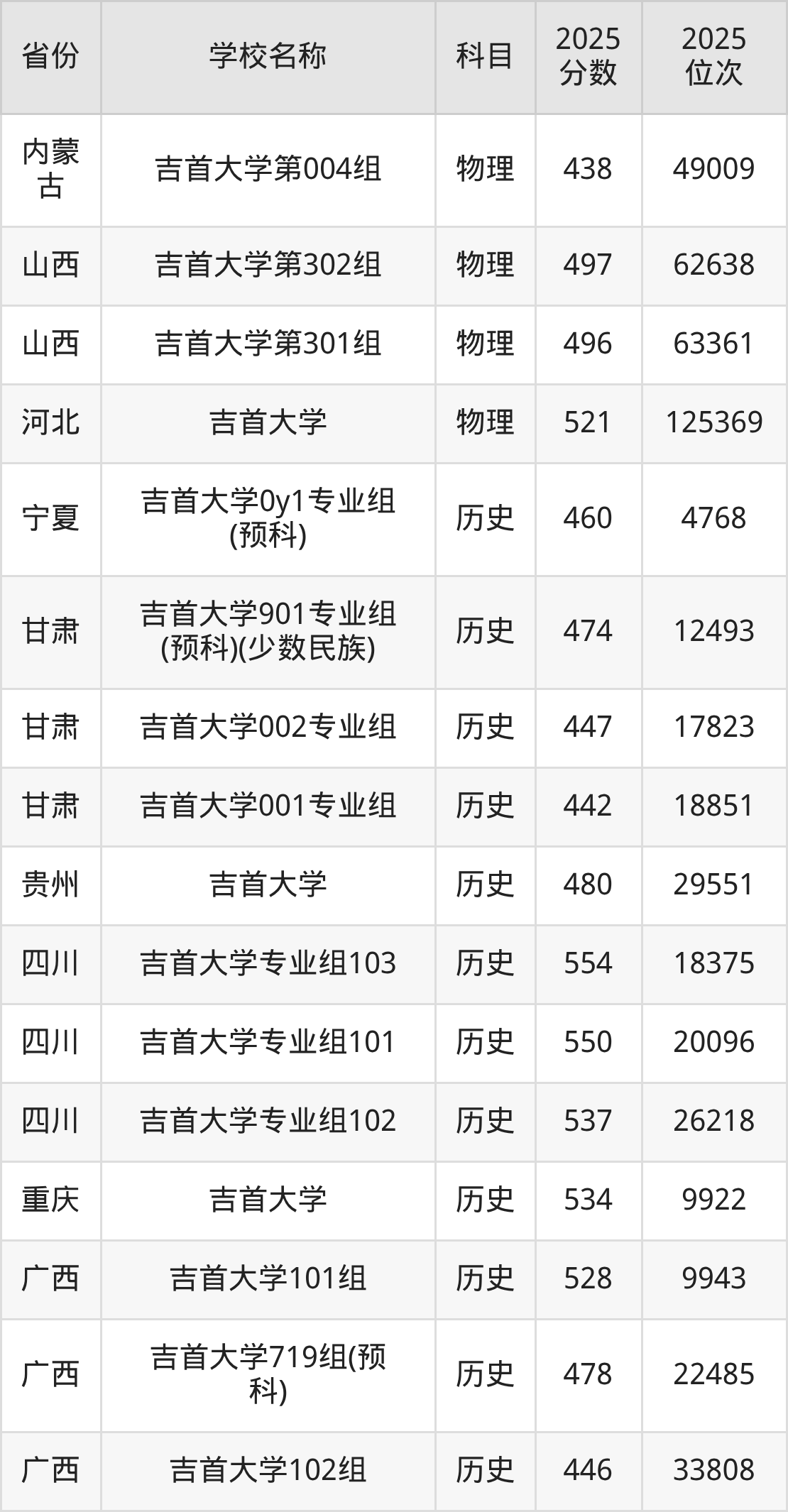 再看湖南高考2025年本科批次线,历史类是446分、物理类是405分。通过对比发现:吉首大学2025年历史类最低分比本科线高6分,物理类最低分比本科线高22分。2026届湖南高考生,可通过每一次模考划线,来判断自己的成绩是否有机会被吉首大学录取。
