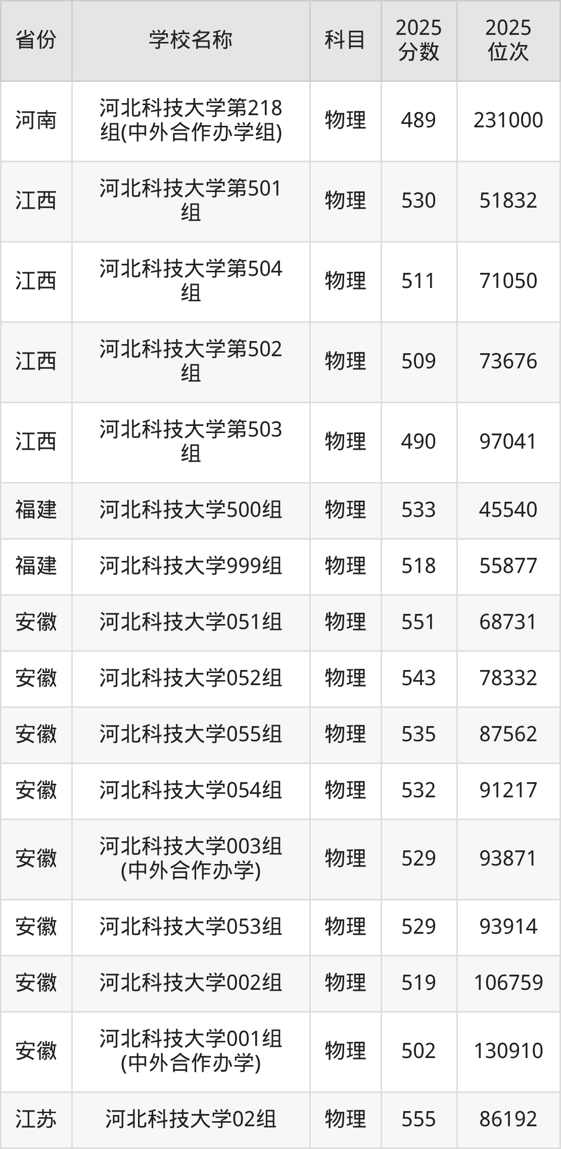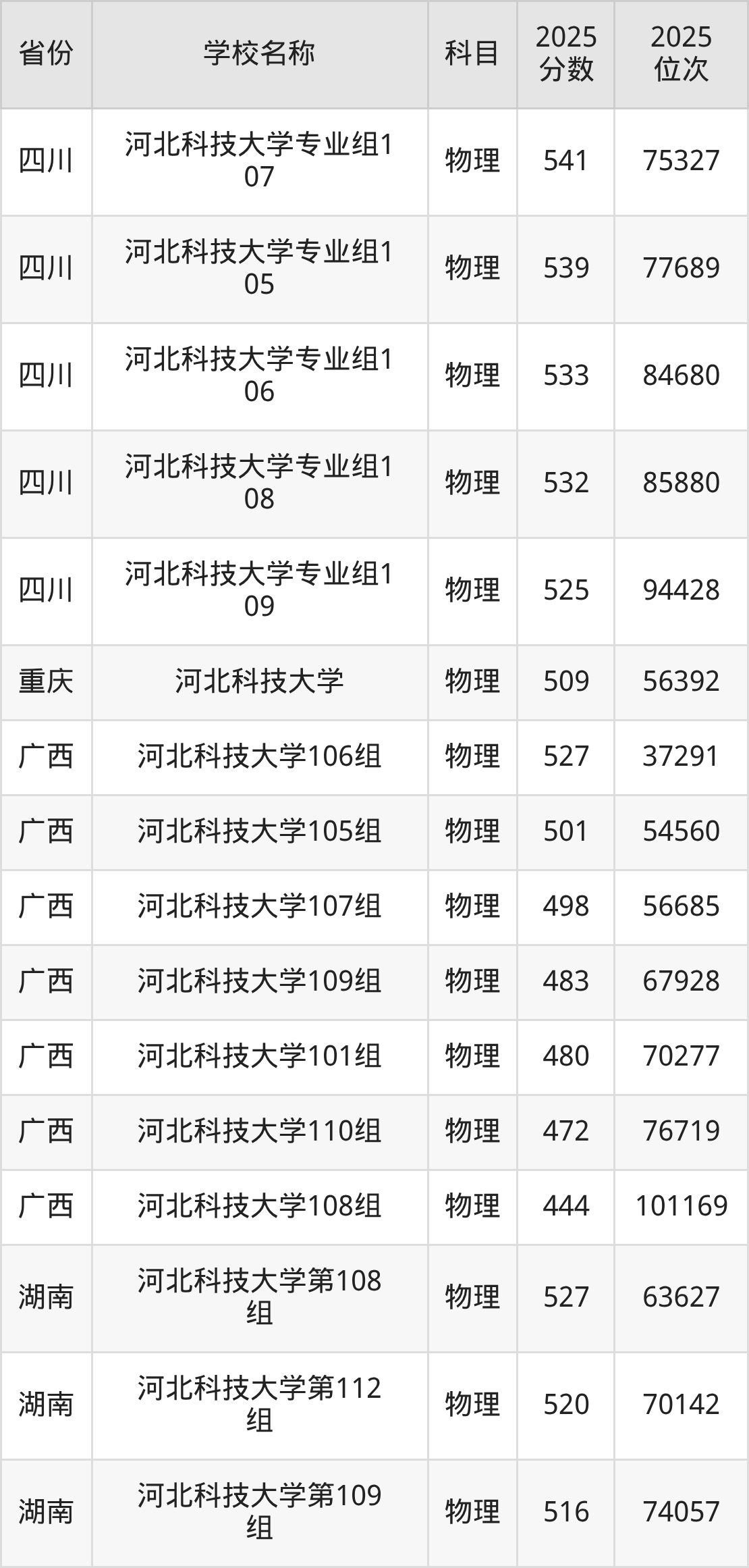 河北科技大学2025年面向河北省内首选了物理科目的考生招生: