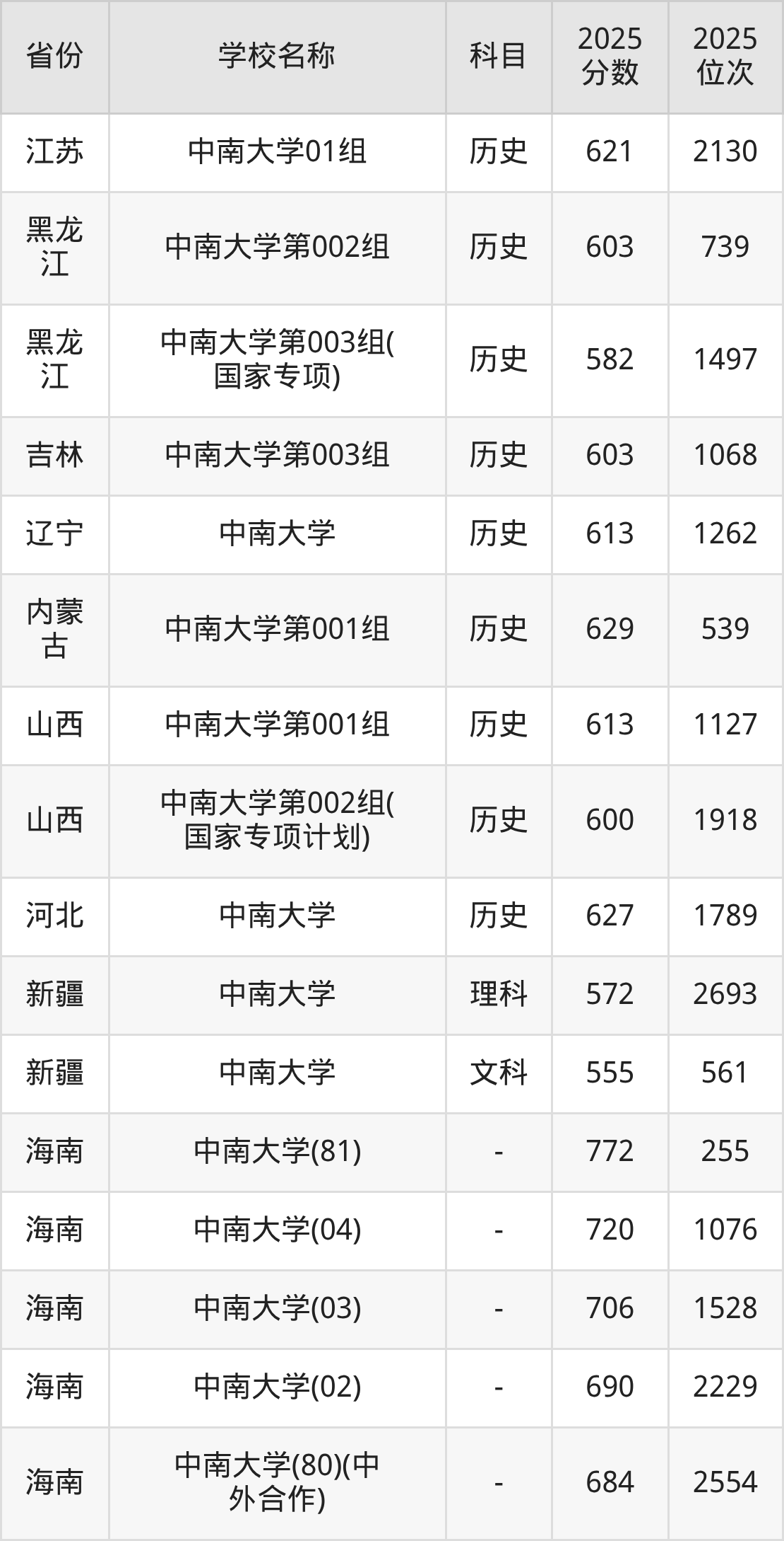 中南大学2025年有3个专业组面向湖南省内首选了历史科目的考生招生: