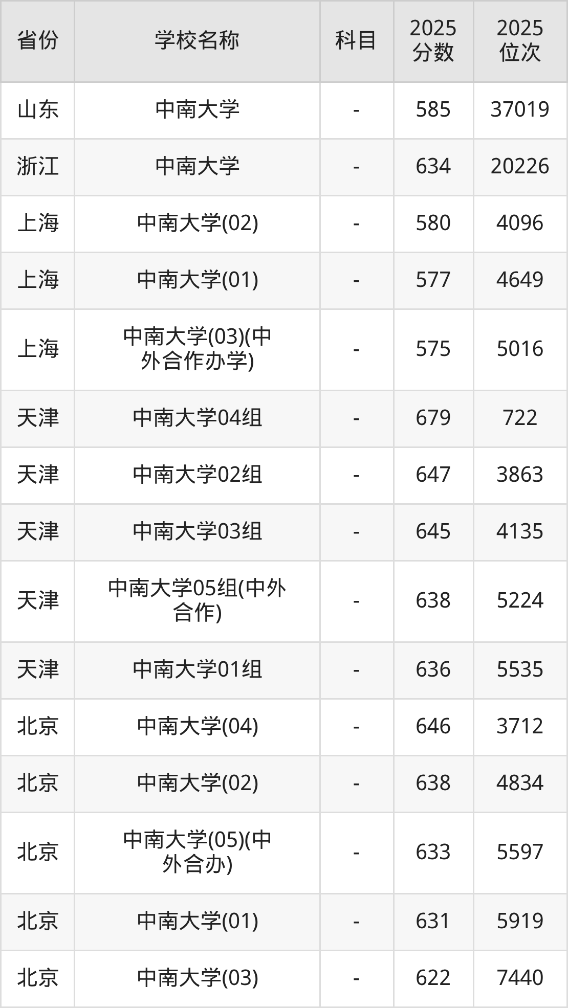 2025年中南大学在全国各省本科的最低录取分数线在509~772分之间。海南高考生最低772分能上中南大学、天津高考生最低679分能上中南大学……下文将展示中南大学在全国27个高考省份中的本科最低投档录取分汇总!