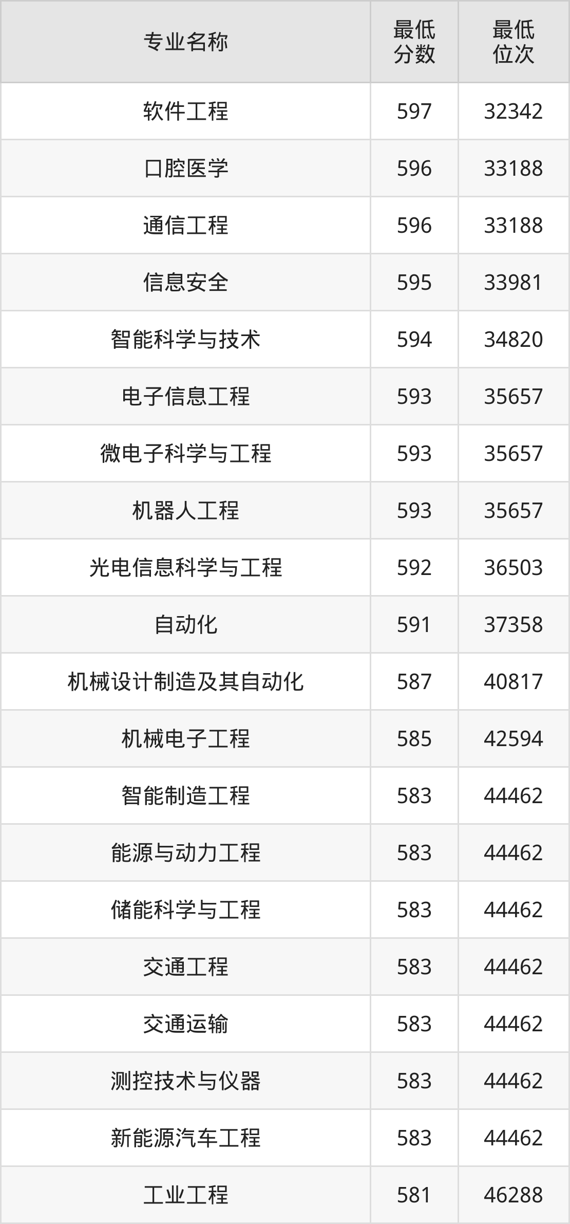 | 四川 | 理科本科一批 | —— | 592/574/542 |