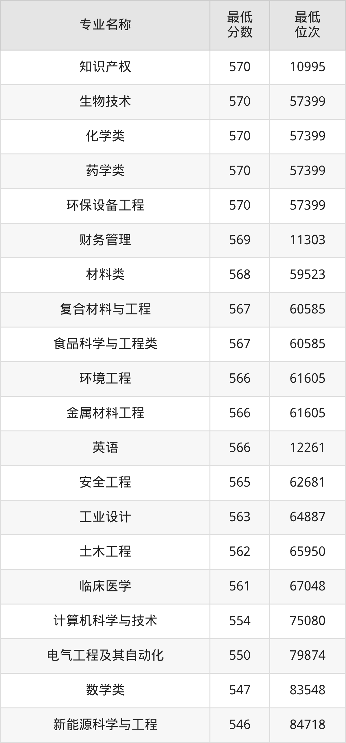 | 陕西 | 理科本科一批 | —— | 556/467/471 |
