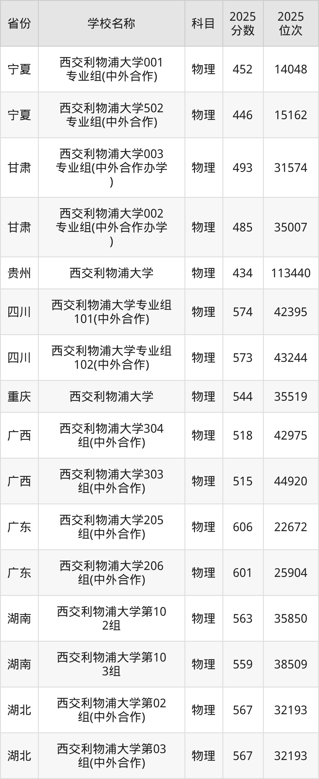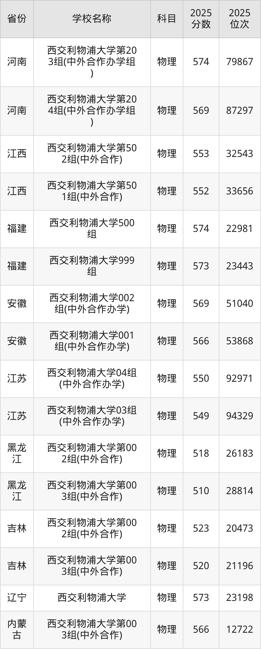 西交利物浦大学2025年有2个专业组面向江苏省内首选了物理科目的考生招生: