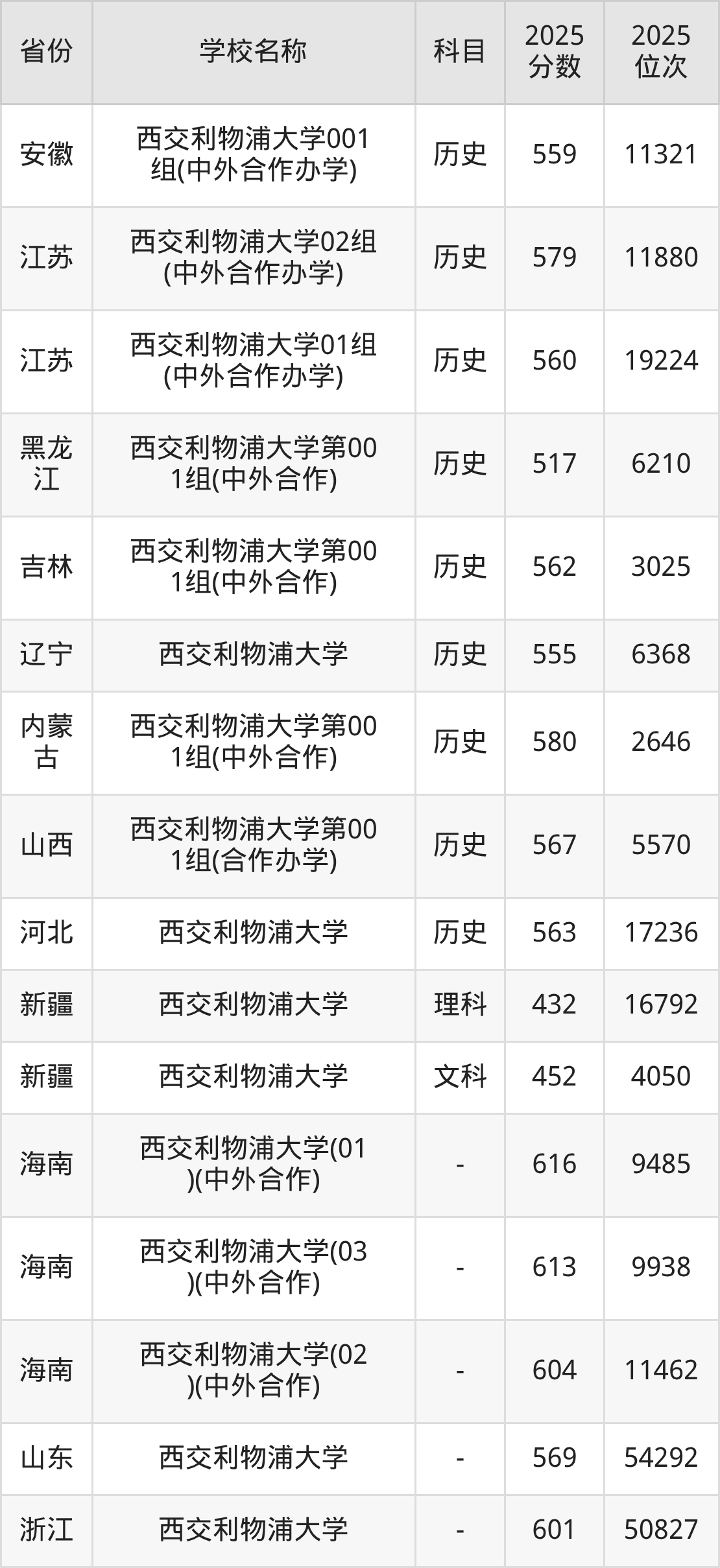 2025年西交利物浦大学在全国各省本科的最低录取分数线在432~616分之间。海南高考生最低616分能上西交利物浦大学、北京高考生最低607分能上西交利物浦大学……下文将展示西交利物浦大学在全国27个高考省份中的本科最低投档录取分汇总!