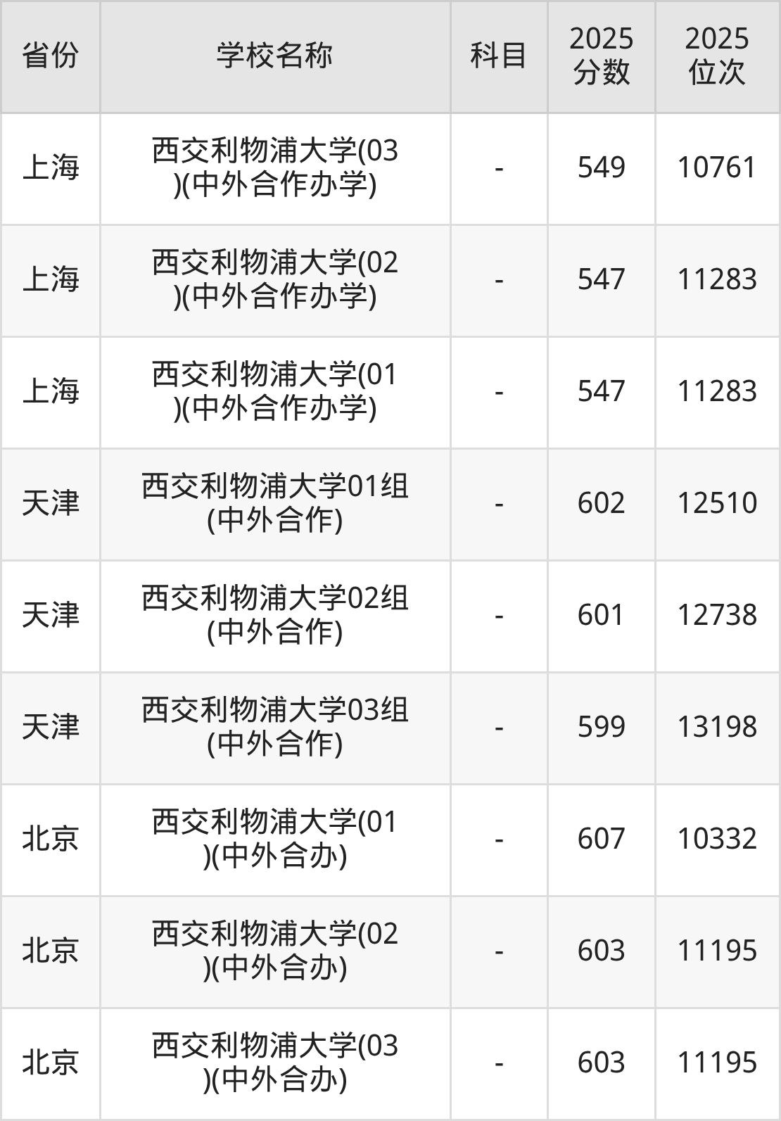 03组(中外合作)的录取分数线最低,2025年为549分,选科要求是不限,招生专业包含工商管理类、金融学类、建筑类、外国语言文学类。