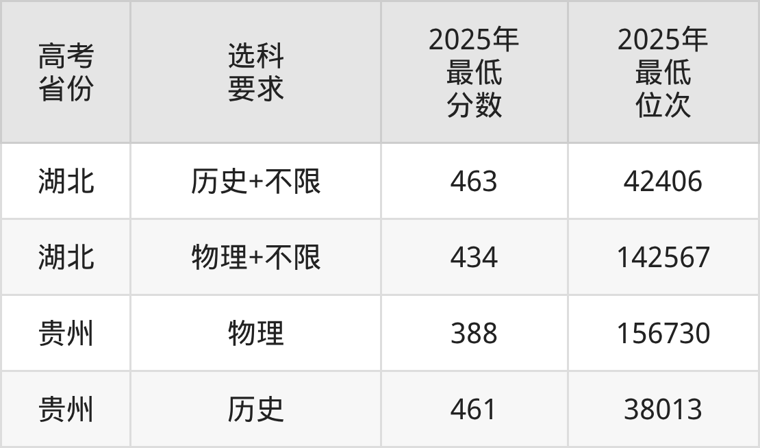 在2025年湖北高考物理类招生时,公办本科收分最低的是新疆工程学院第02组,最低分是224分、位次是243851位。再看湖南信息学院,2025年在湖北物理类的最低录取分数线是434分,最低位次是142567位。