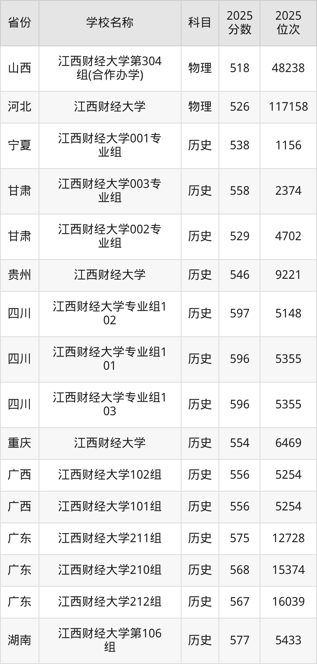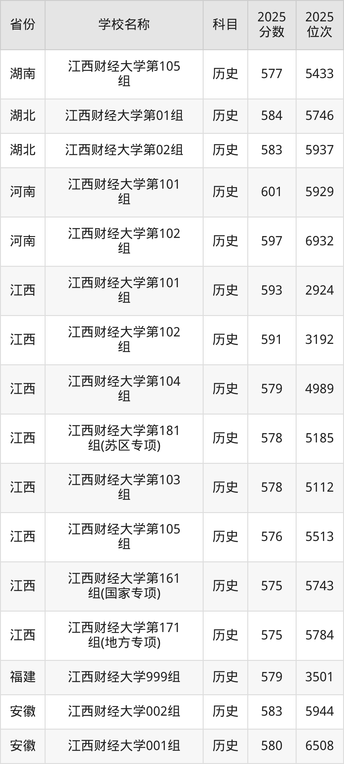 江西财经大学2025年有8个专业组面向江西省内首选了历史科目的考生招生:
