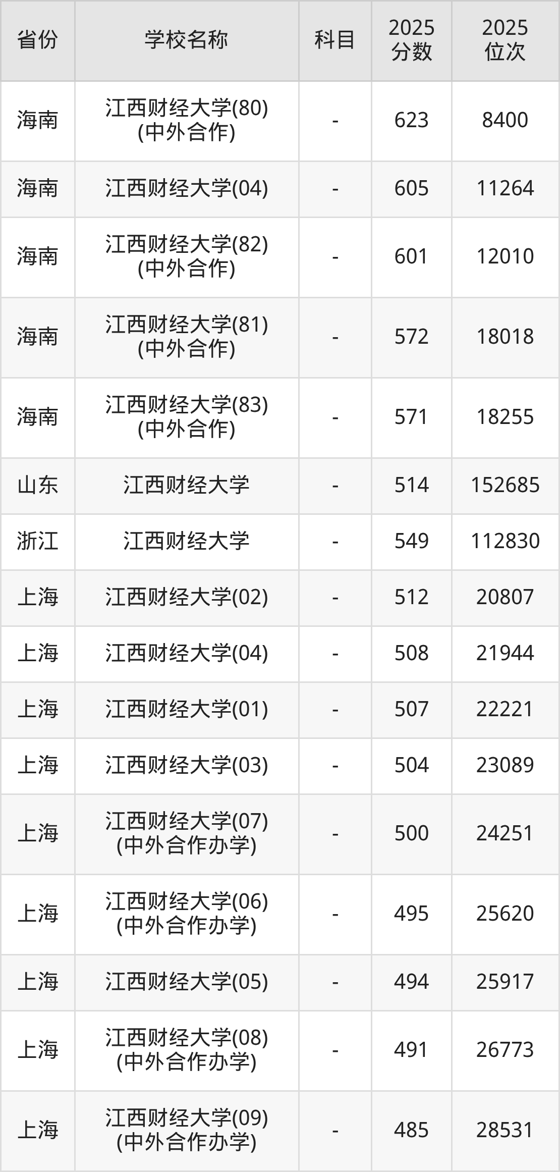 2025年江西财经大学在全国各省本科的最低录取分数线在432~649分之间。海南高考生最低649分能上江西财经大学、天津高考生最低607分能上江西财经大学……下文将展示江西财经大学在全国27个高考省份中的本科最低投档录取分汇总!