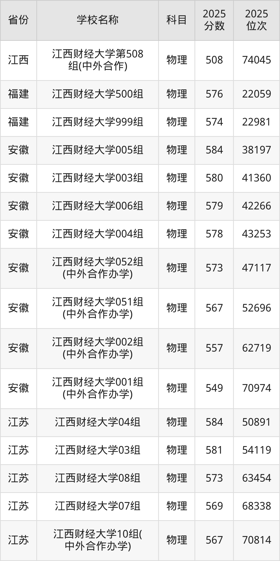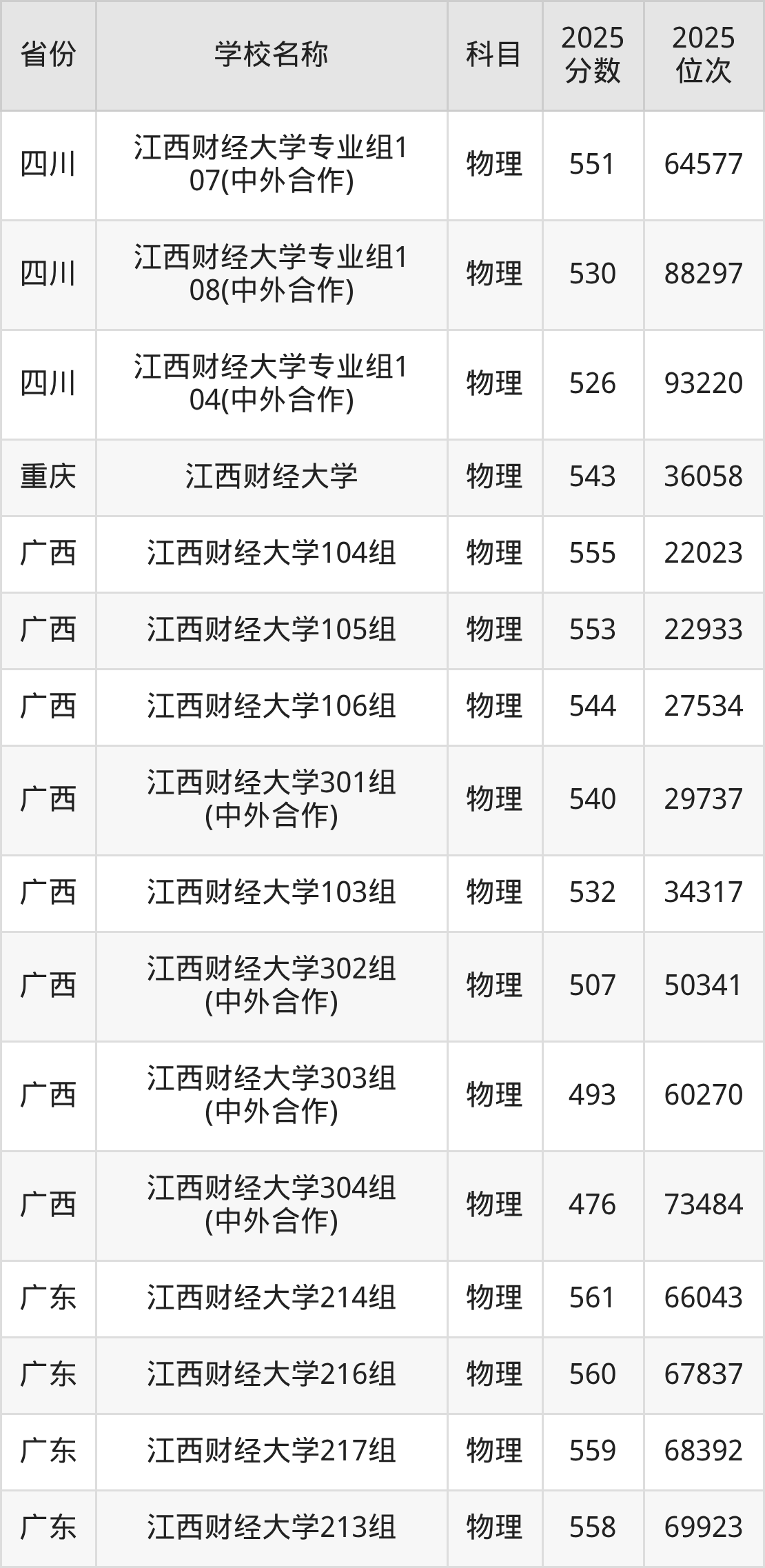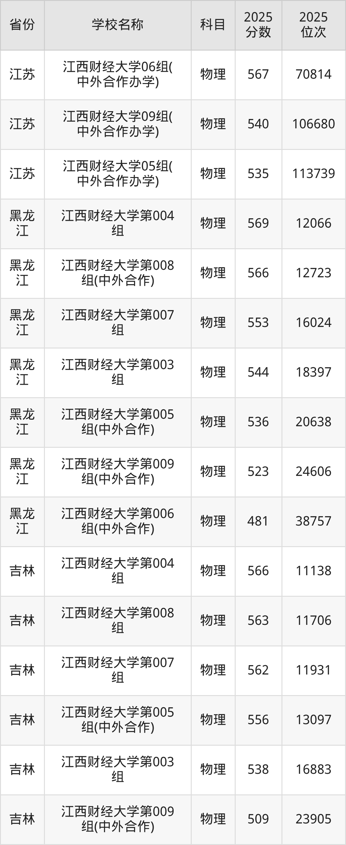 江西财经大学2025年有20个专业组面向江西省内首选了物理科目的考生招生:
