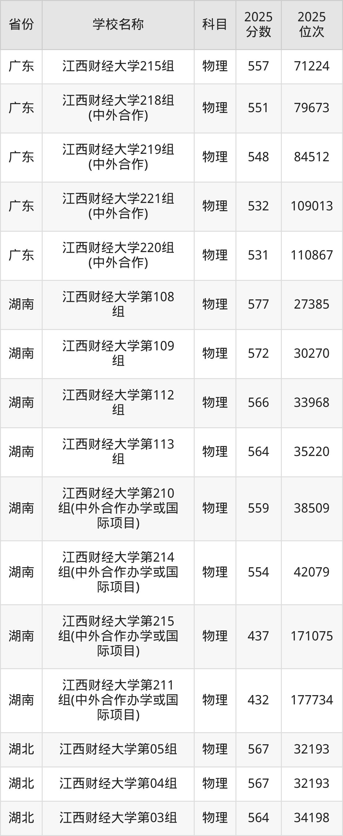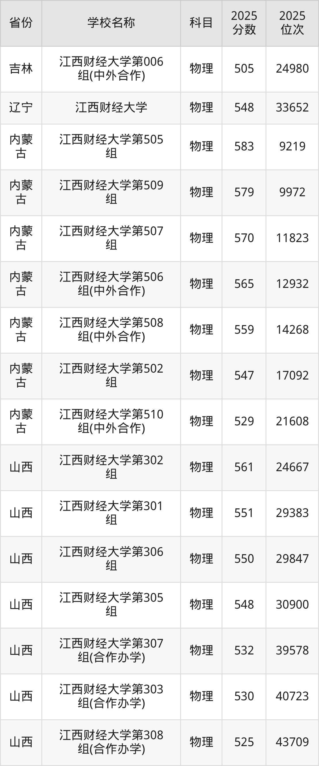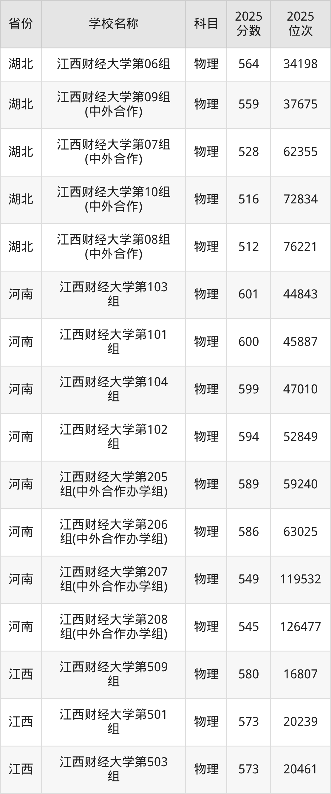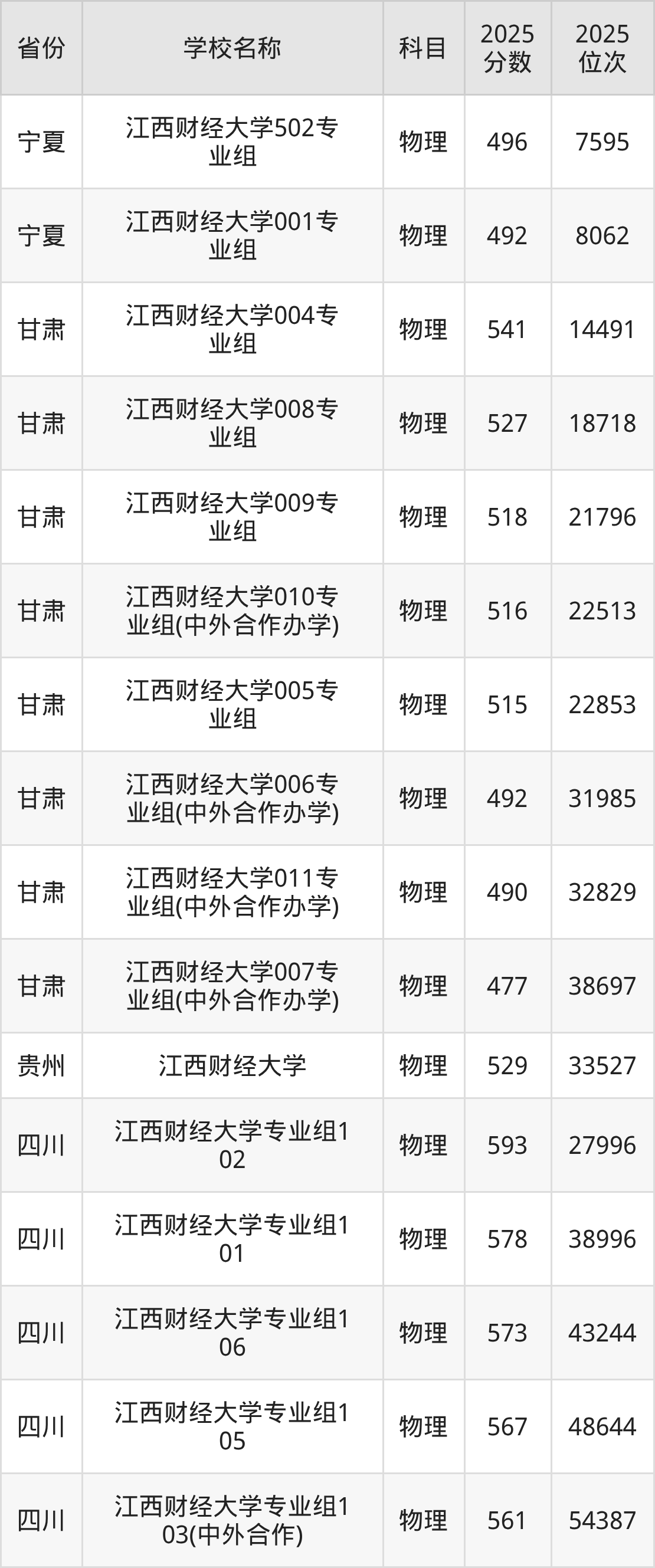 江西财经大学2025年有20个专业组面向江西省内首选了物理科目的考生招生: