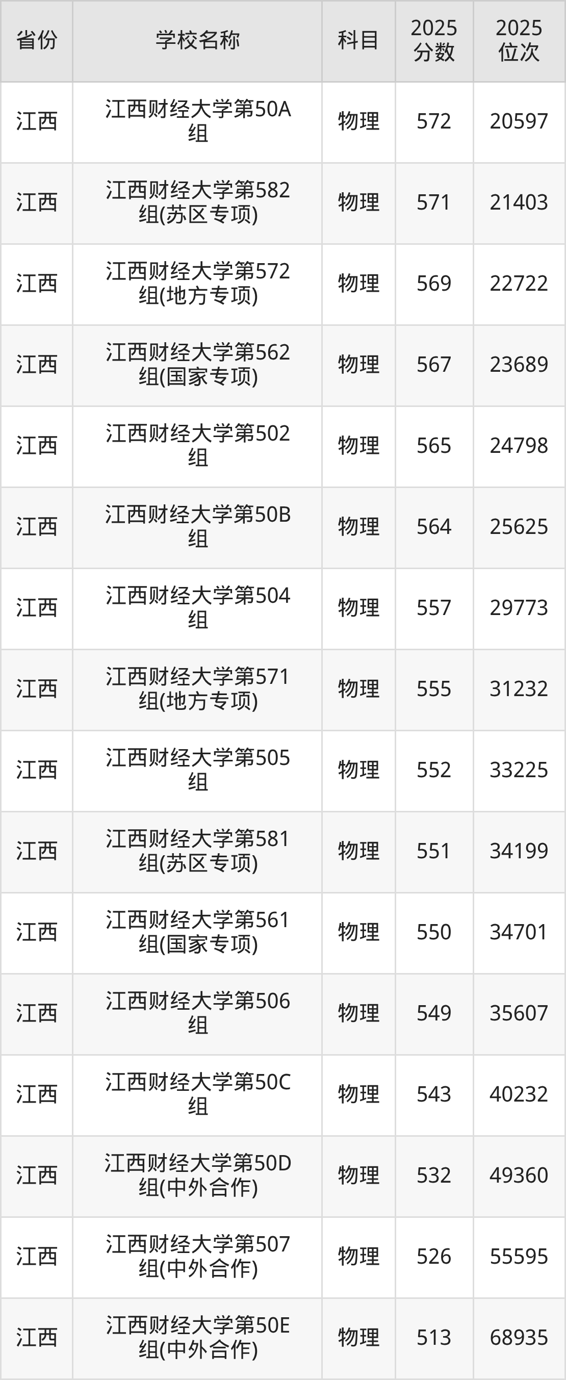 再看江西高考2025年特招批次线,历史类是539分、物理类是505分。通过对比发现:江西财经大学2025年历史类最低分比特招线高36分,物理类最低分比特招线高3分。2026届江西高考生,可通过每一次模考划线,来判断自己的成绩是否有机会被江西财经大学录取。