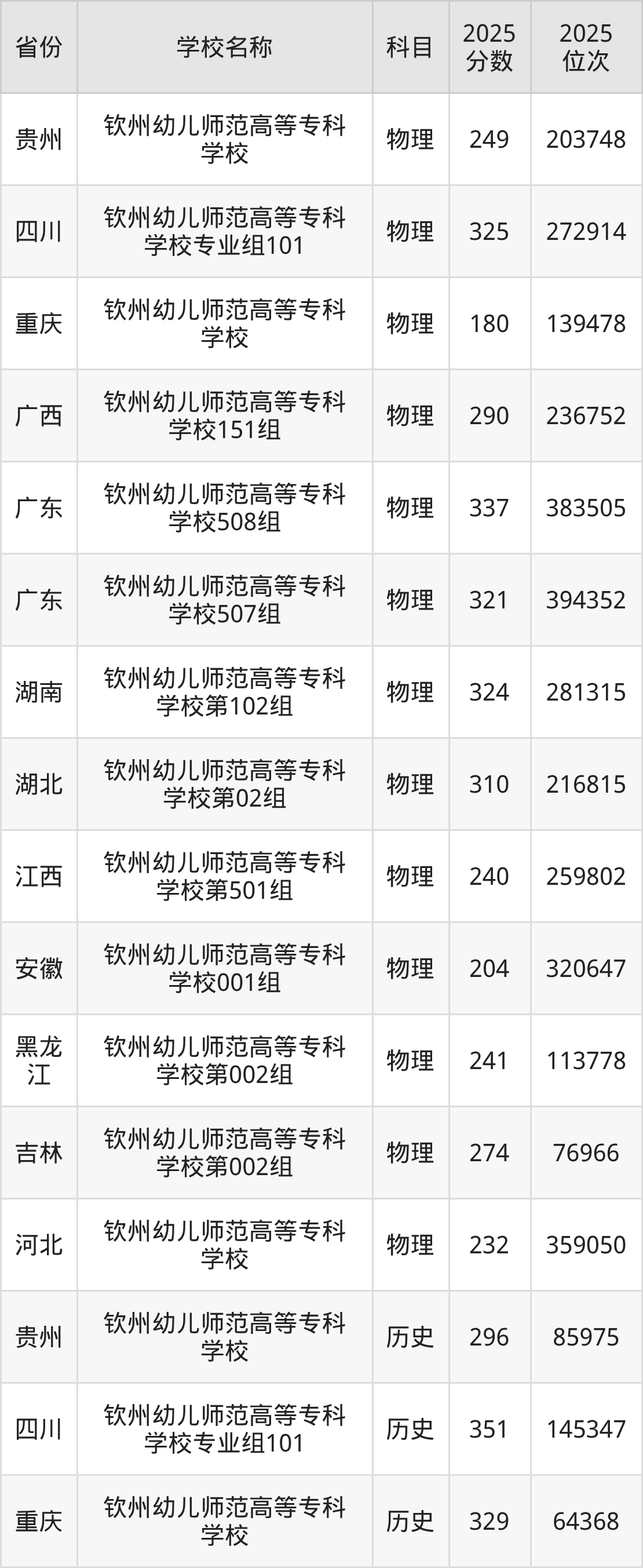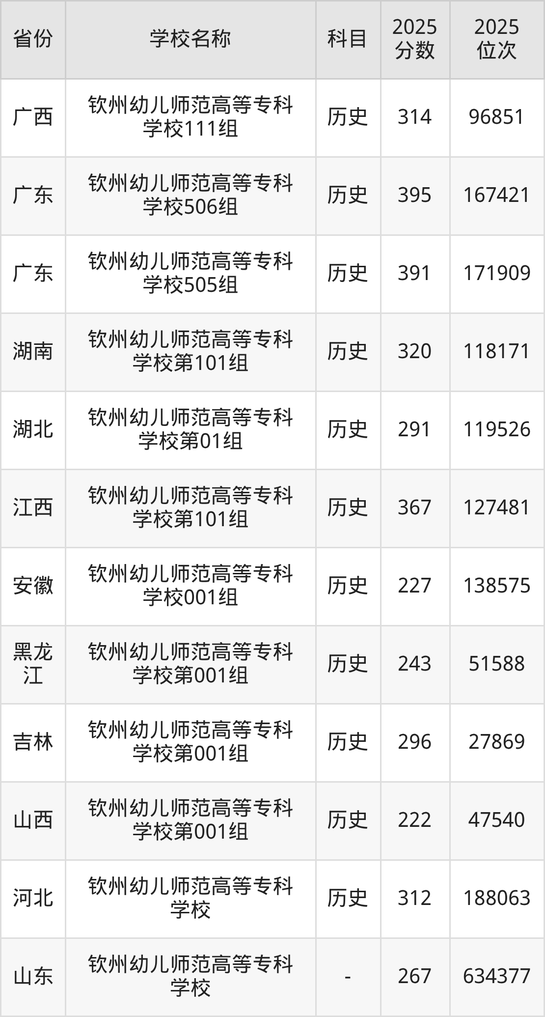 一、2025钦州幼儿师范高等专科学校录取分数线