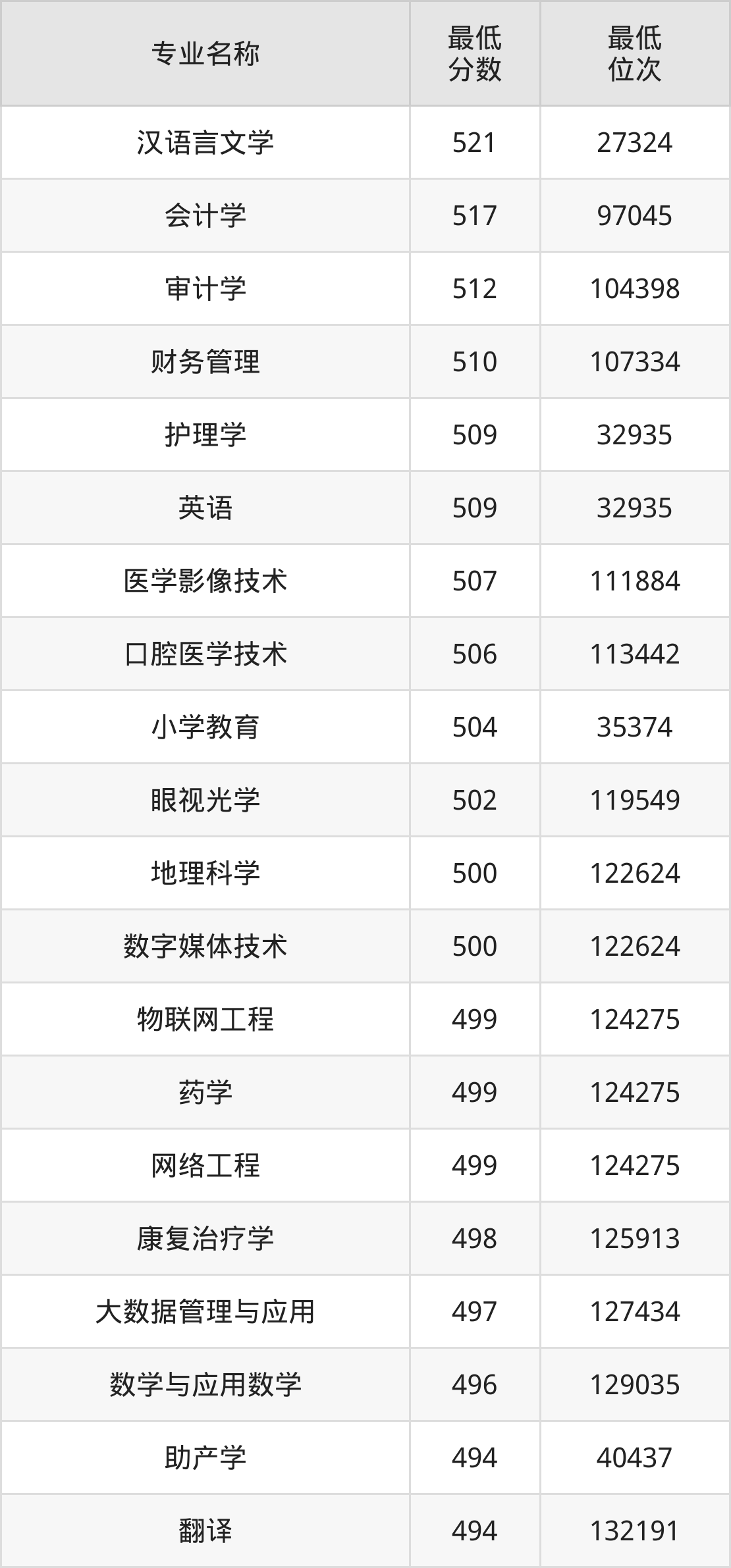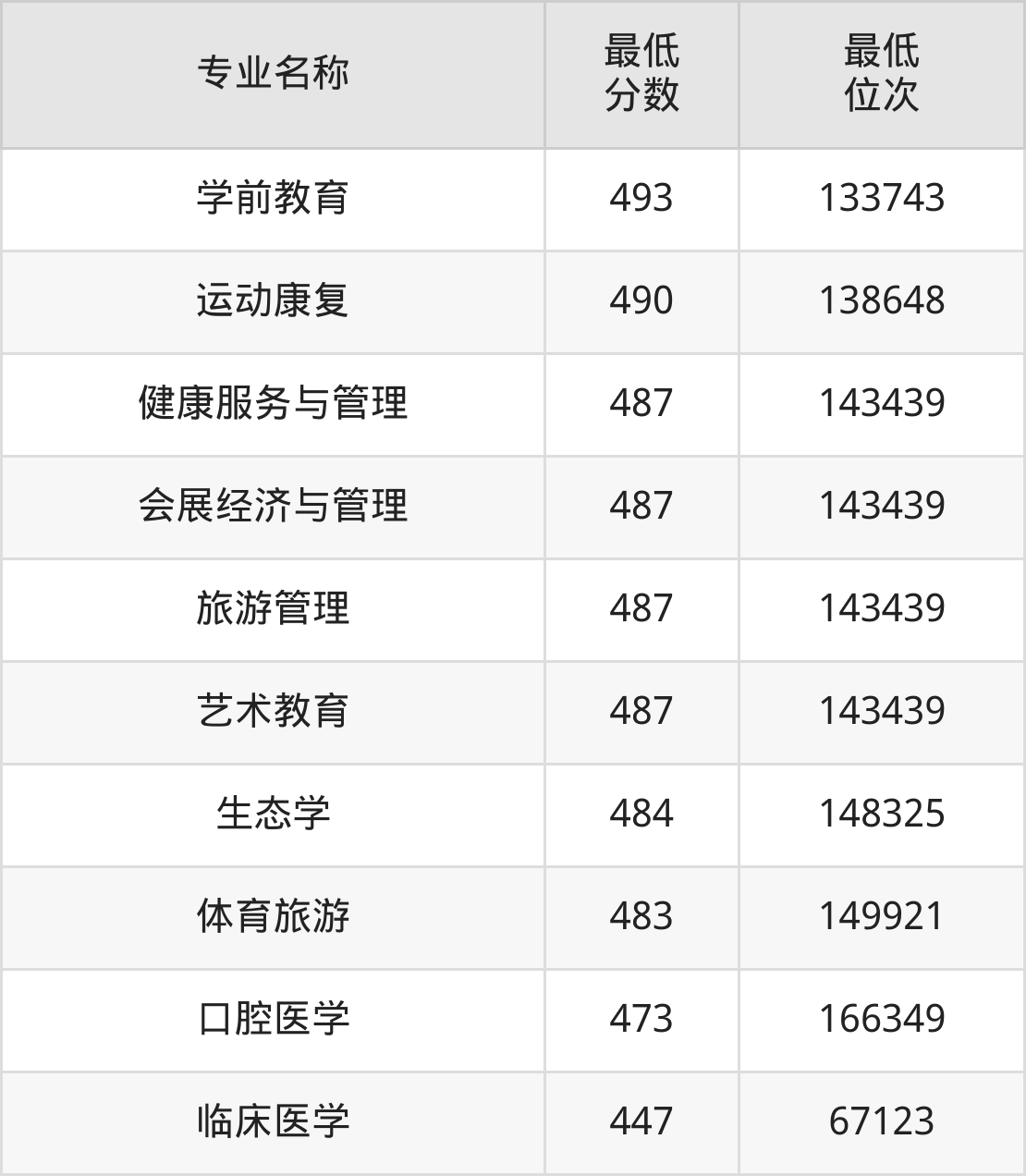 | 云南 | 理科二本 | —— | 461/445/469 |