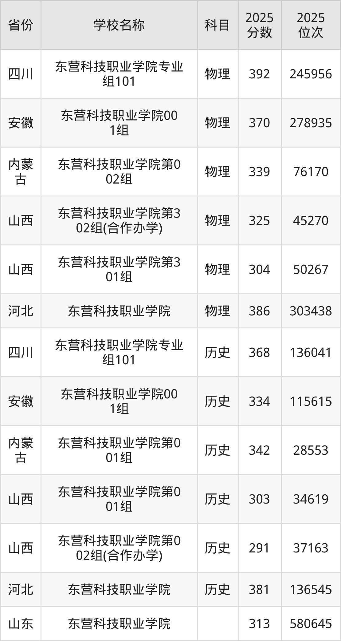 2025年东营科技职业学院在全国各省专科的最低录取分数线在291~392分之间。四川物理类高考生最低392分能上东营科技职业学院、河北物理类高考生最低386分能上东营科技职业学院……下文将展示东营科技职业学院在全国6个高考省份中的专科最低投档录取分汇总!