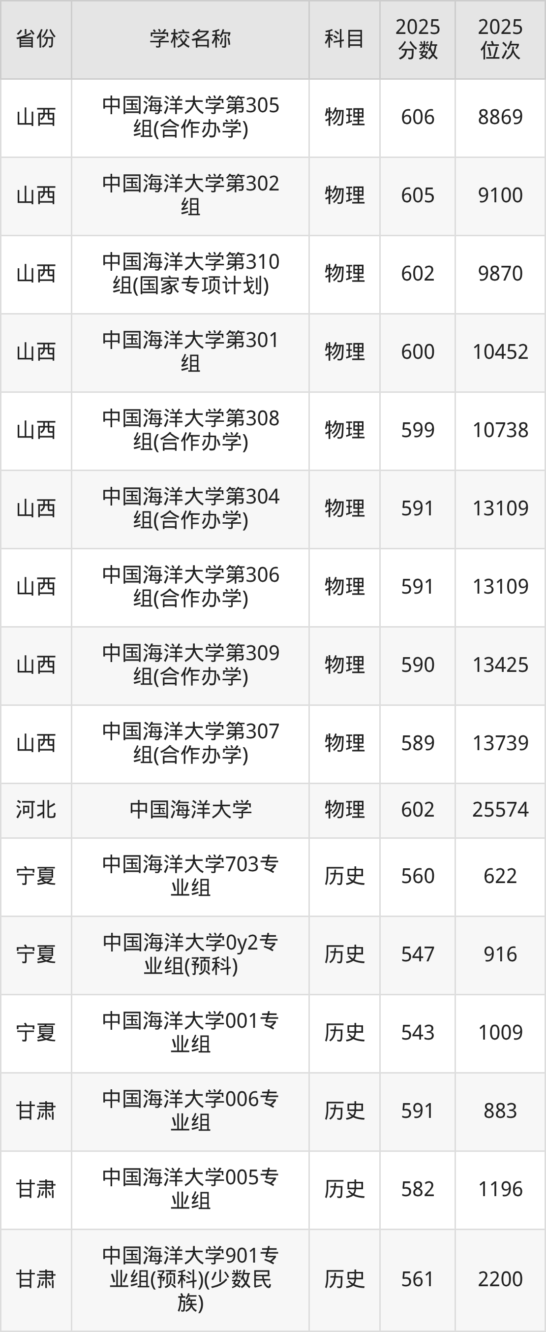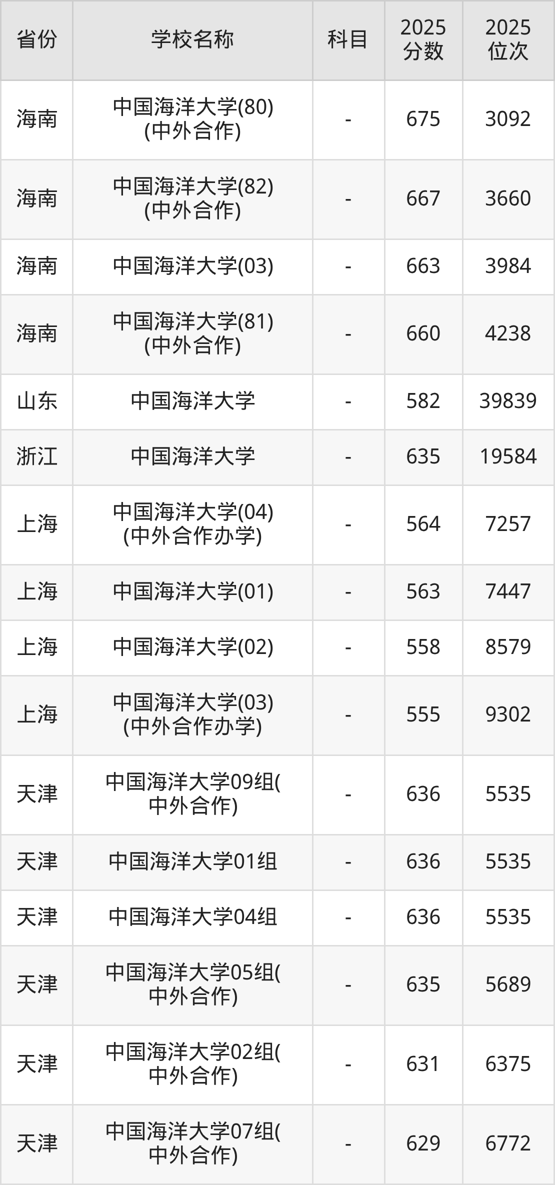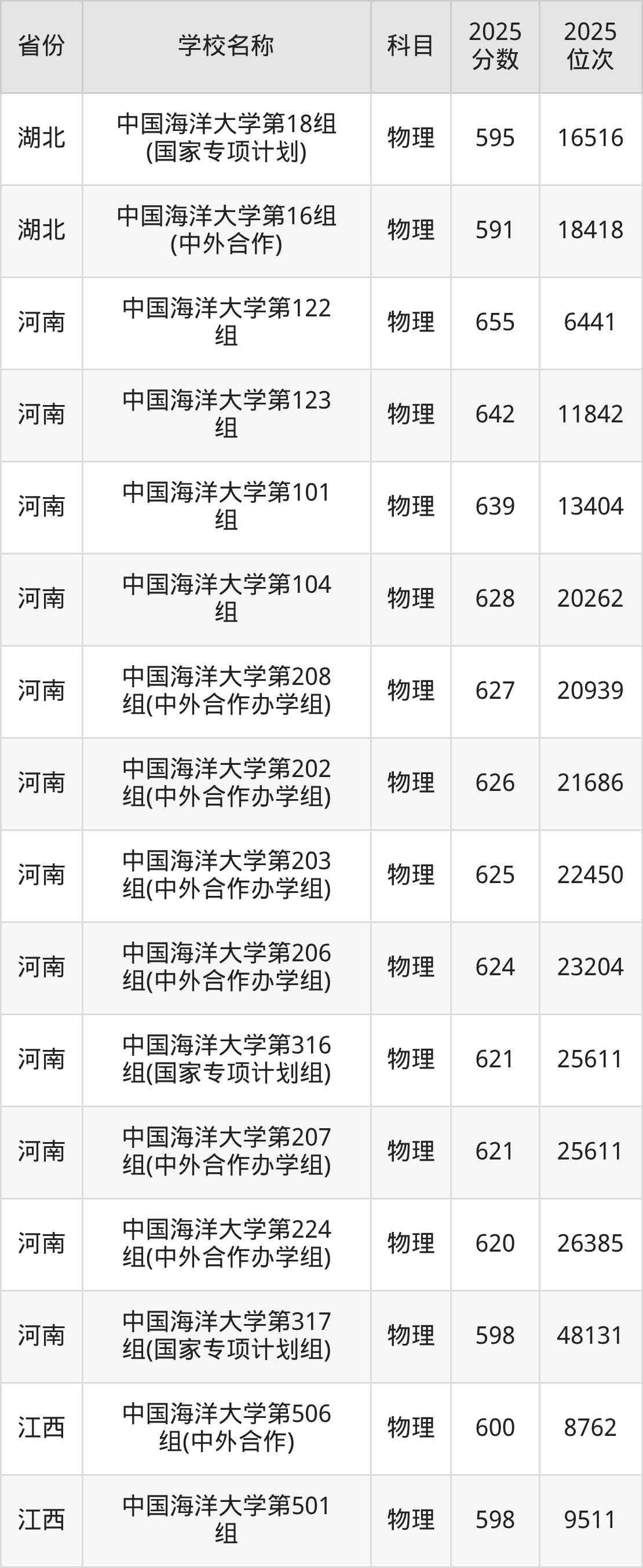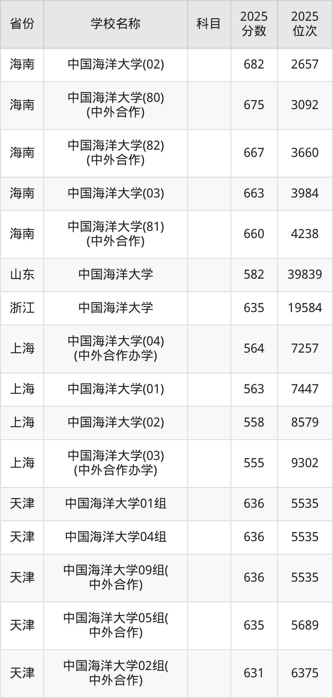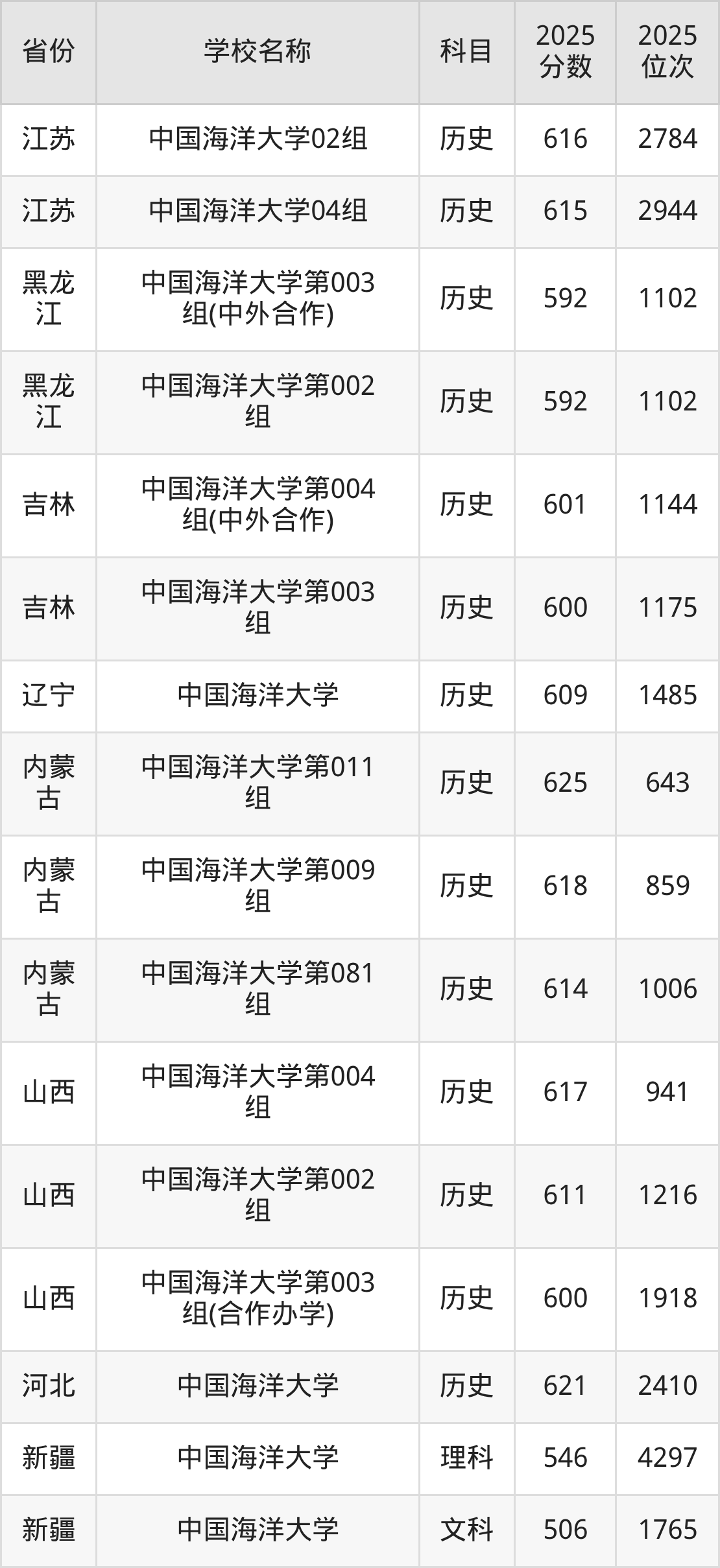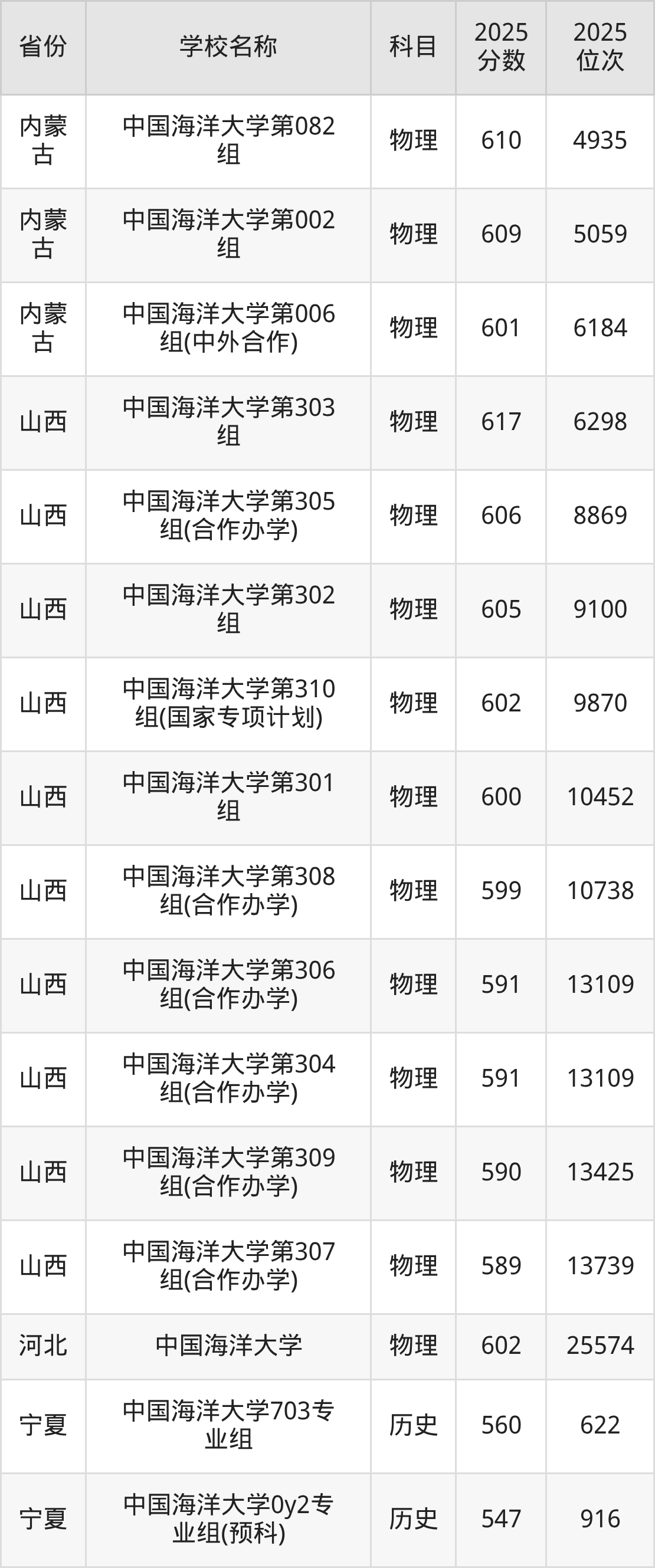 一、2025中国海洋大学录取分数线